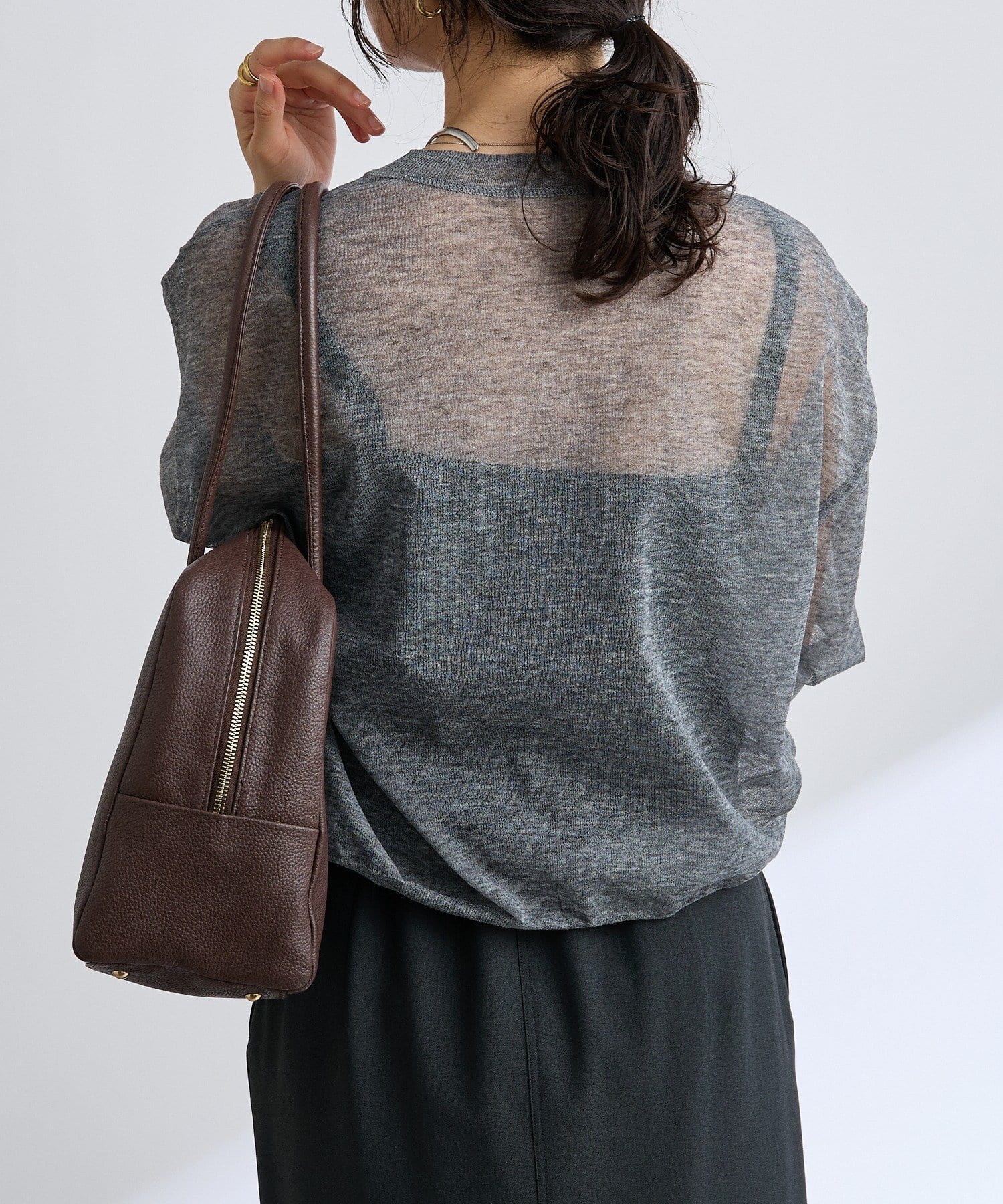 素材の質感を生かしたオーバーショルダーが、気負わずトレンドをプラス。