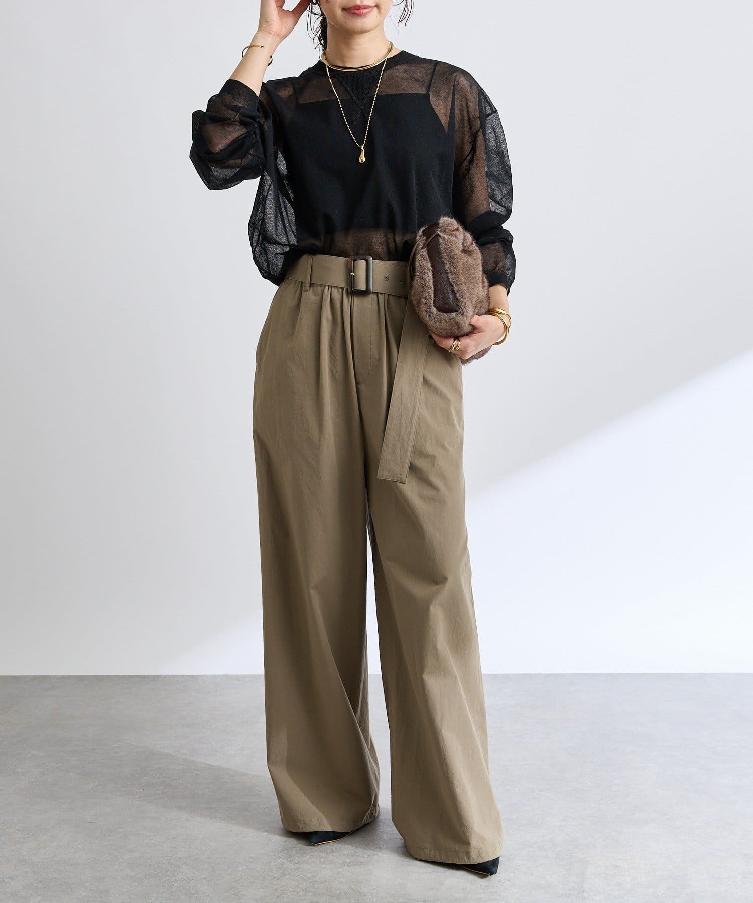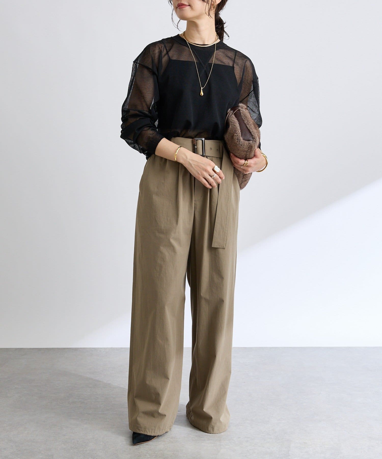 透け感がありながら秋を感じる色合いで、いつものスタイルに取り入れやすい1着です。