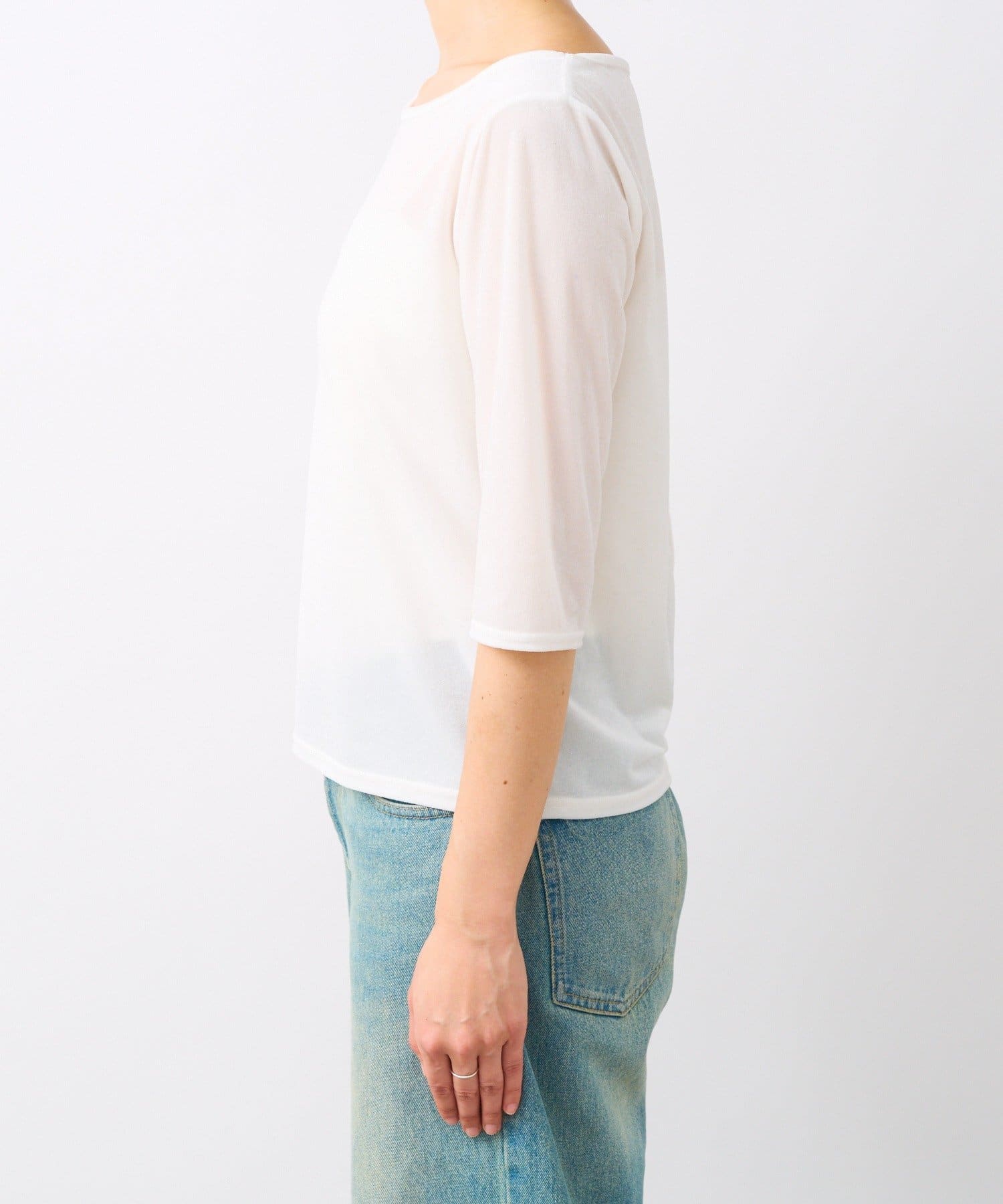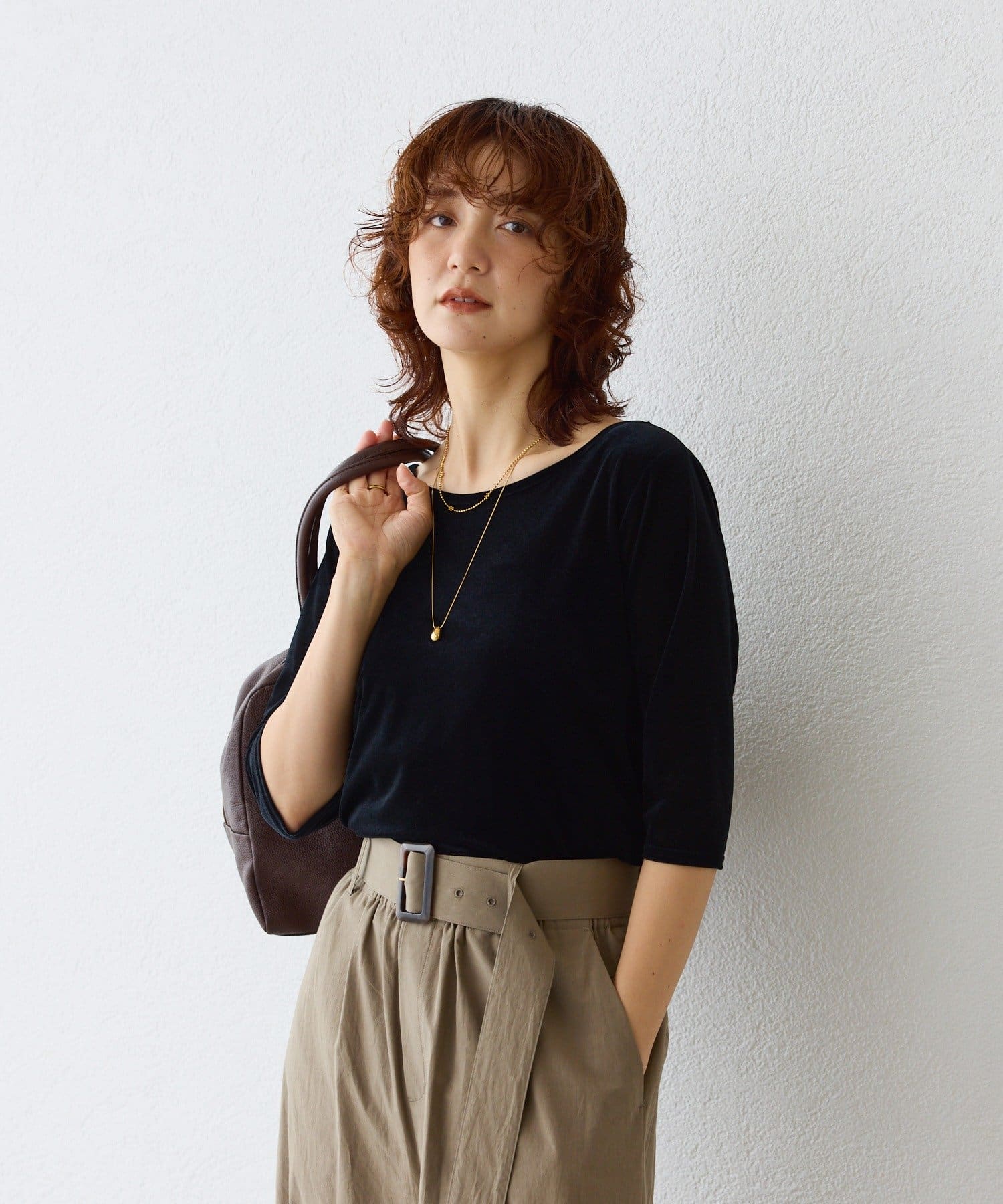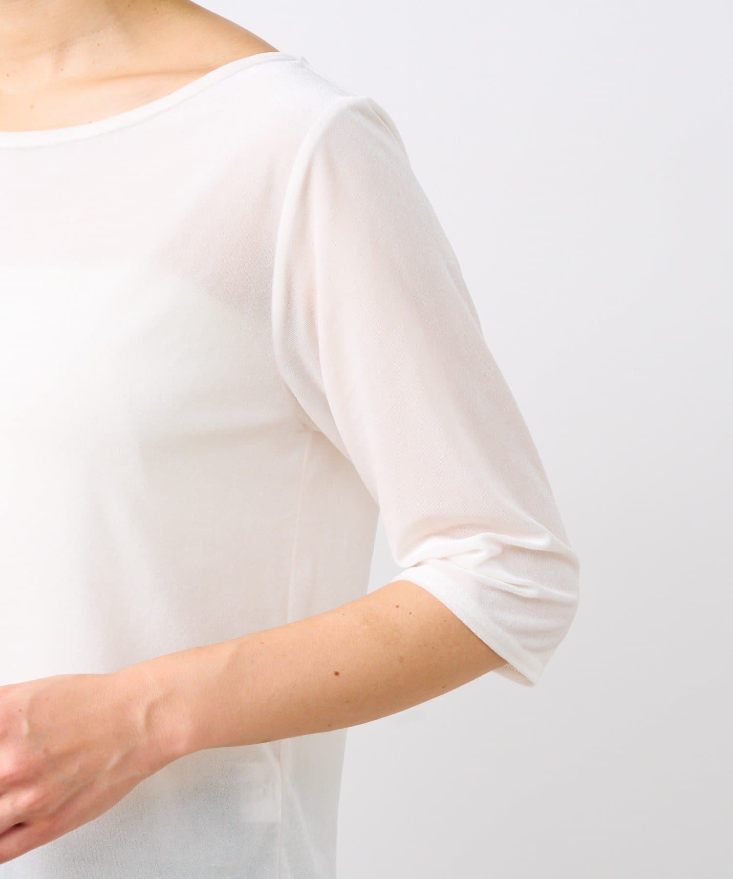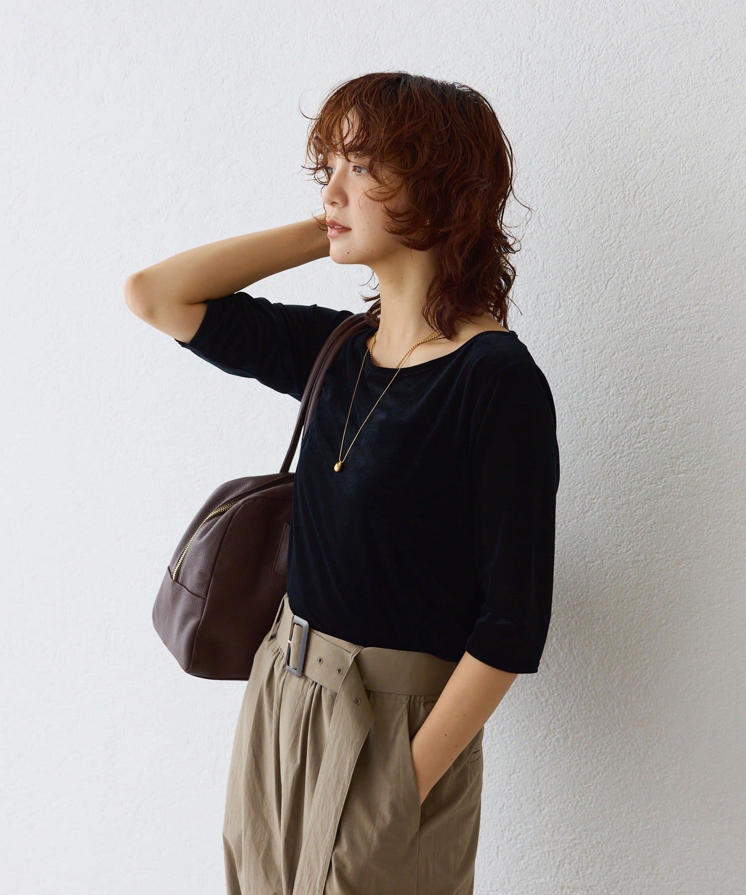 トレンドのシアーベロア素材を使用したシンプルな5分袖Tee。
