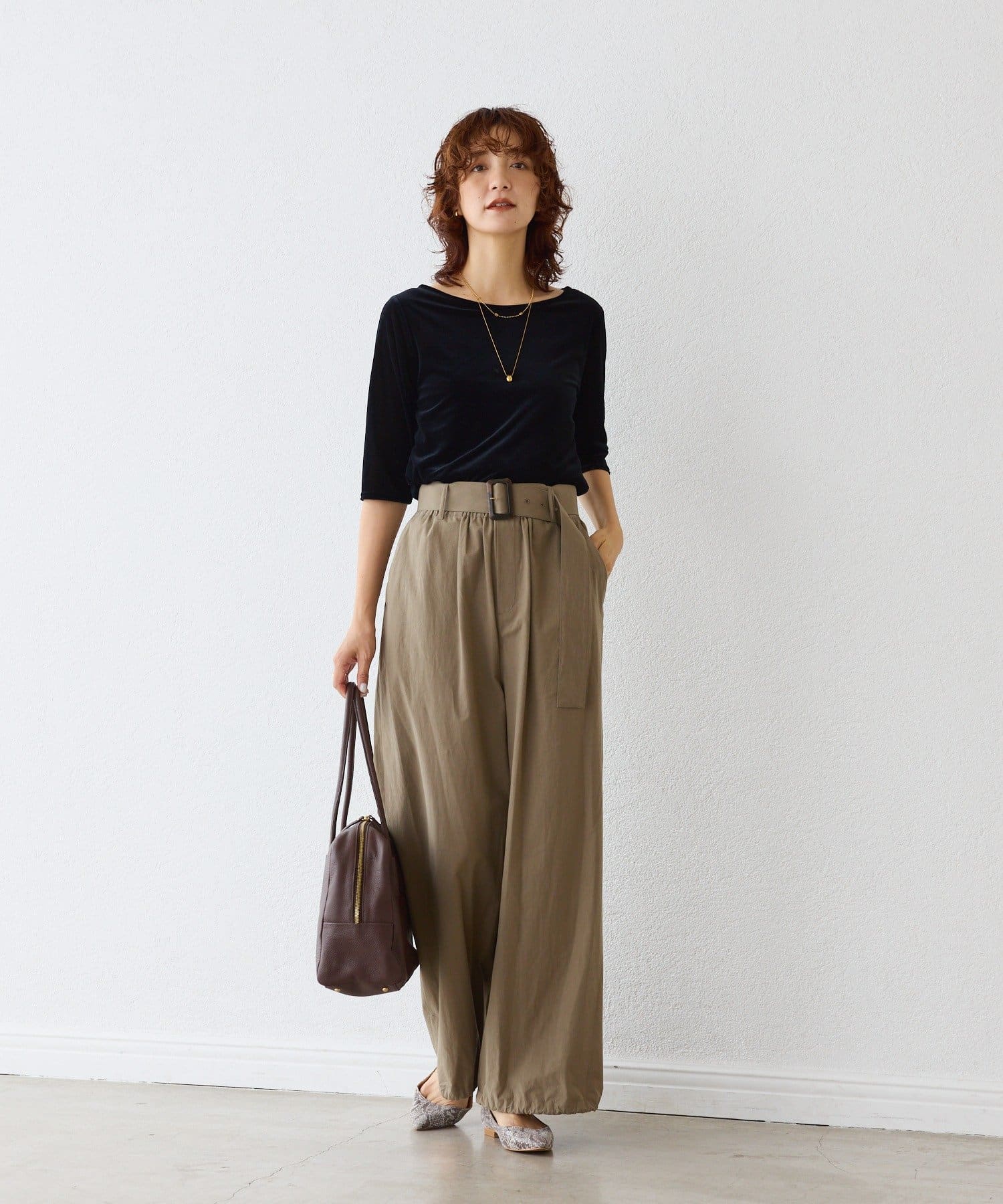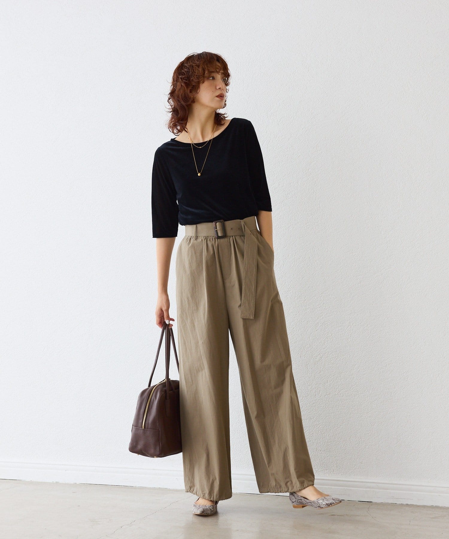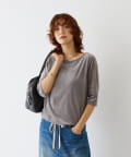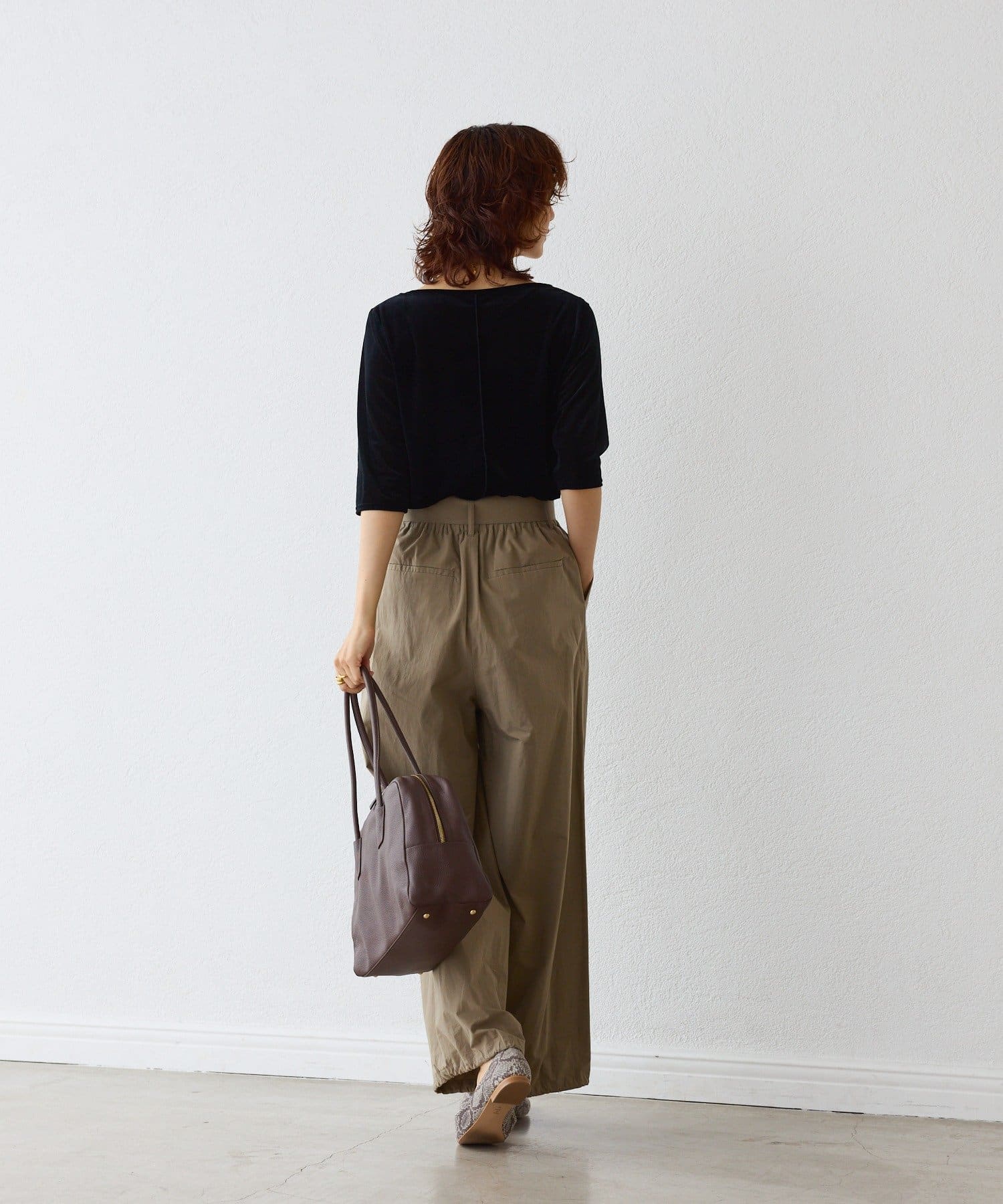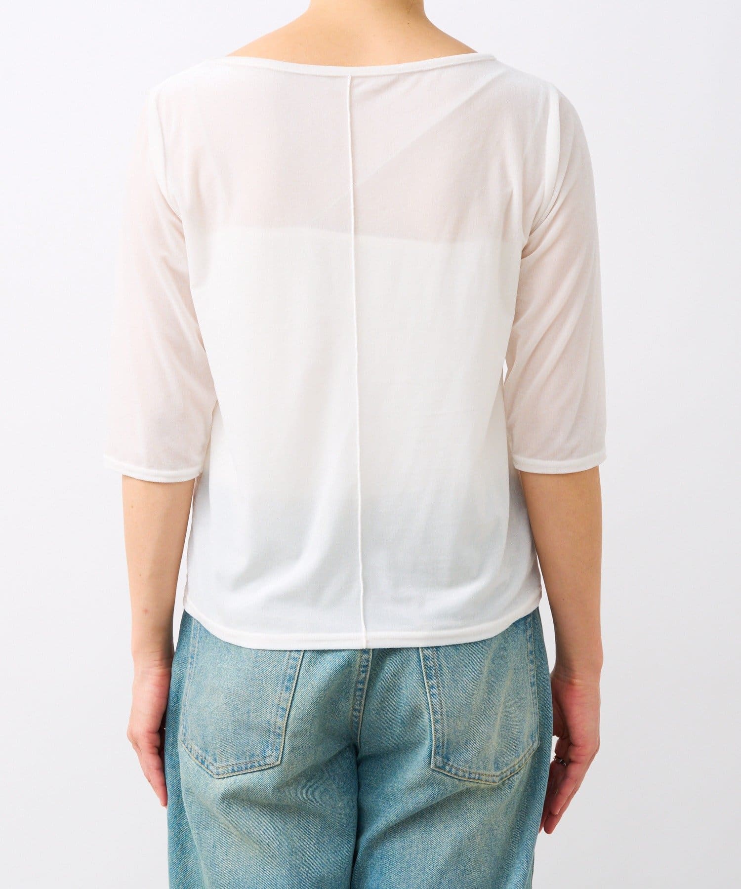 トレンドのシアーベロア素材を使用したシンプルな5分袖Tee。