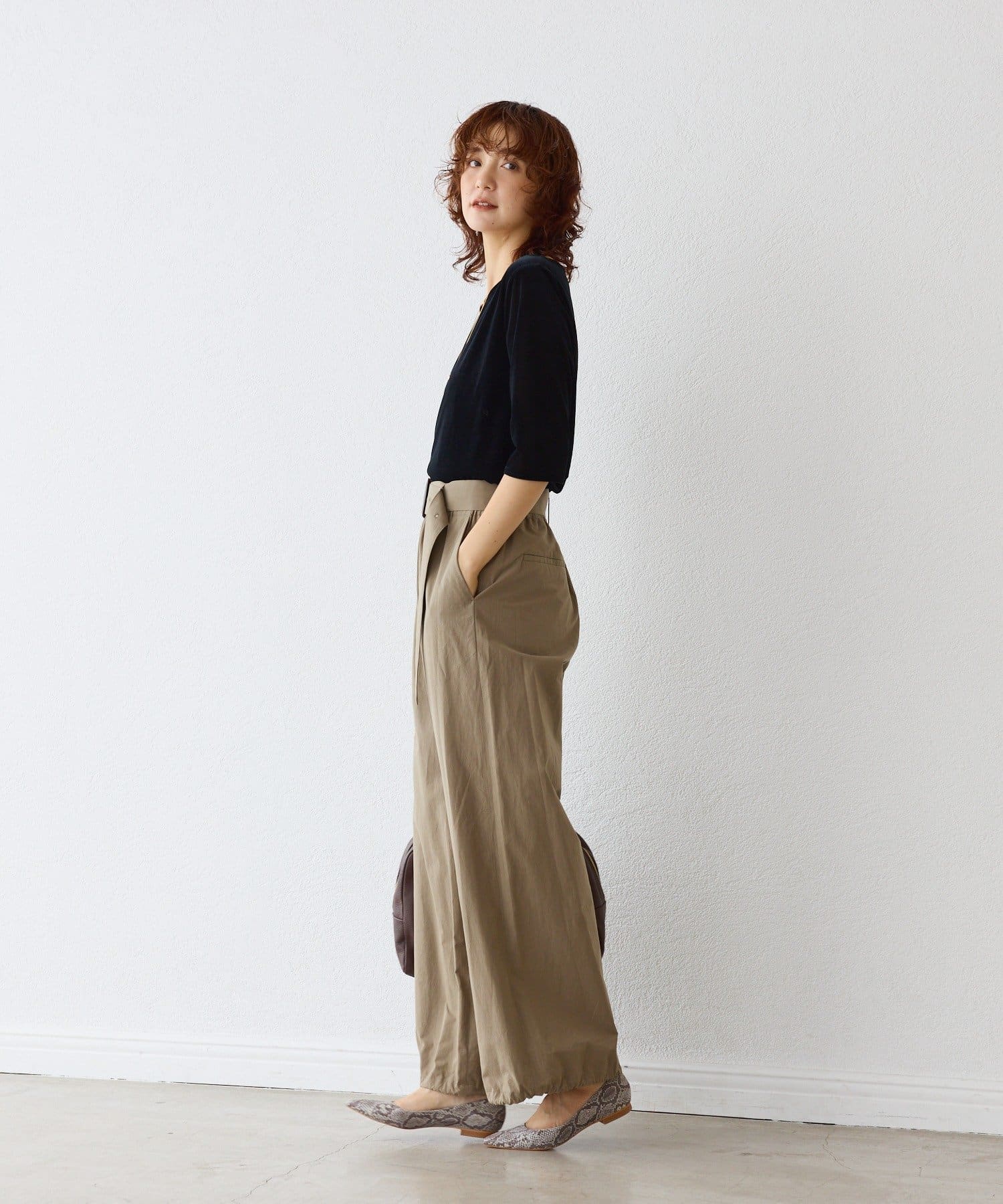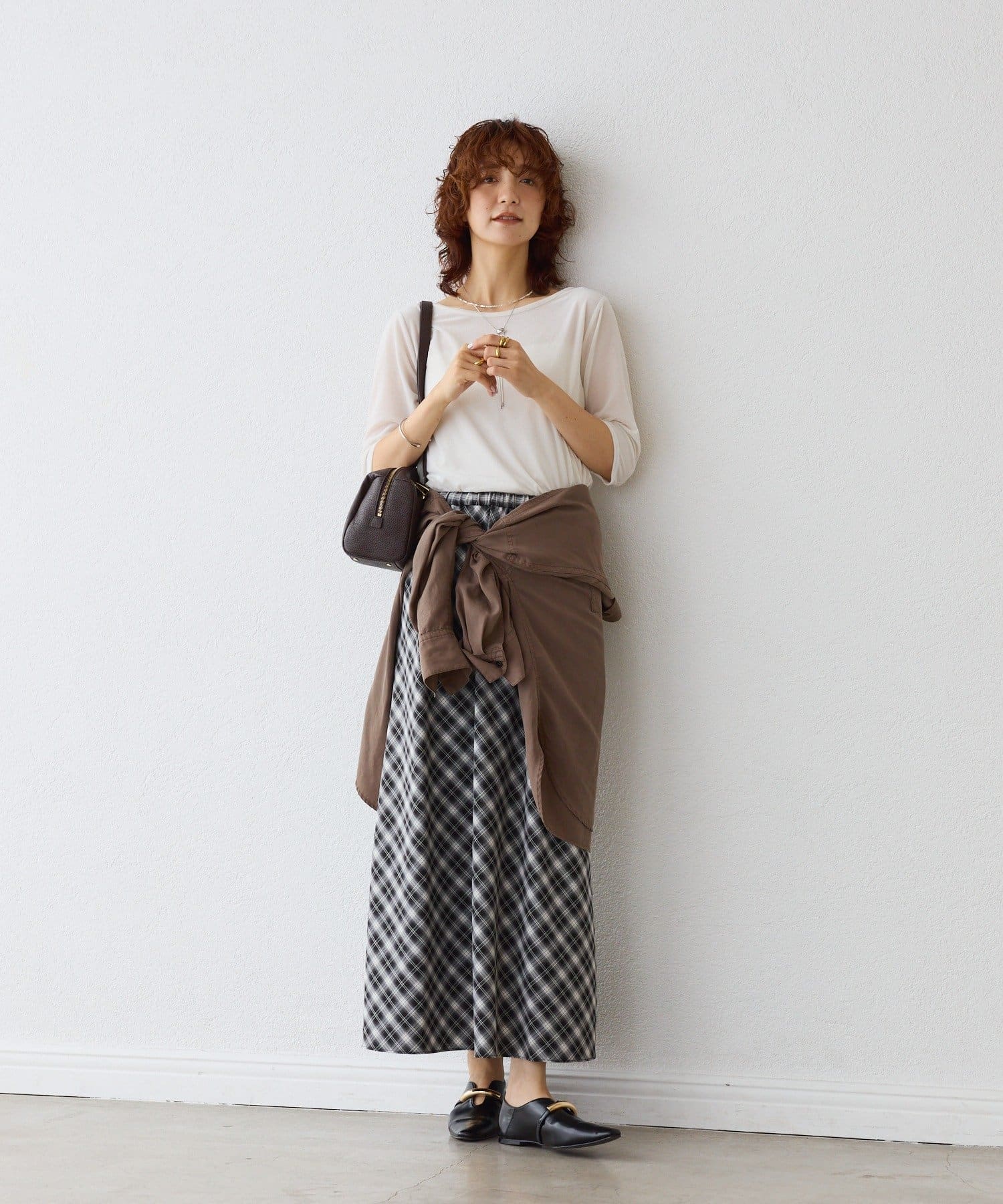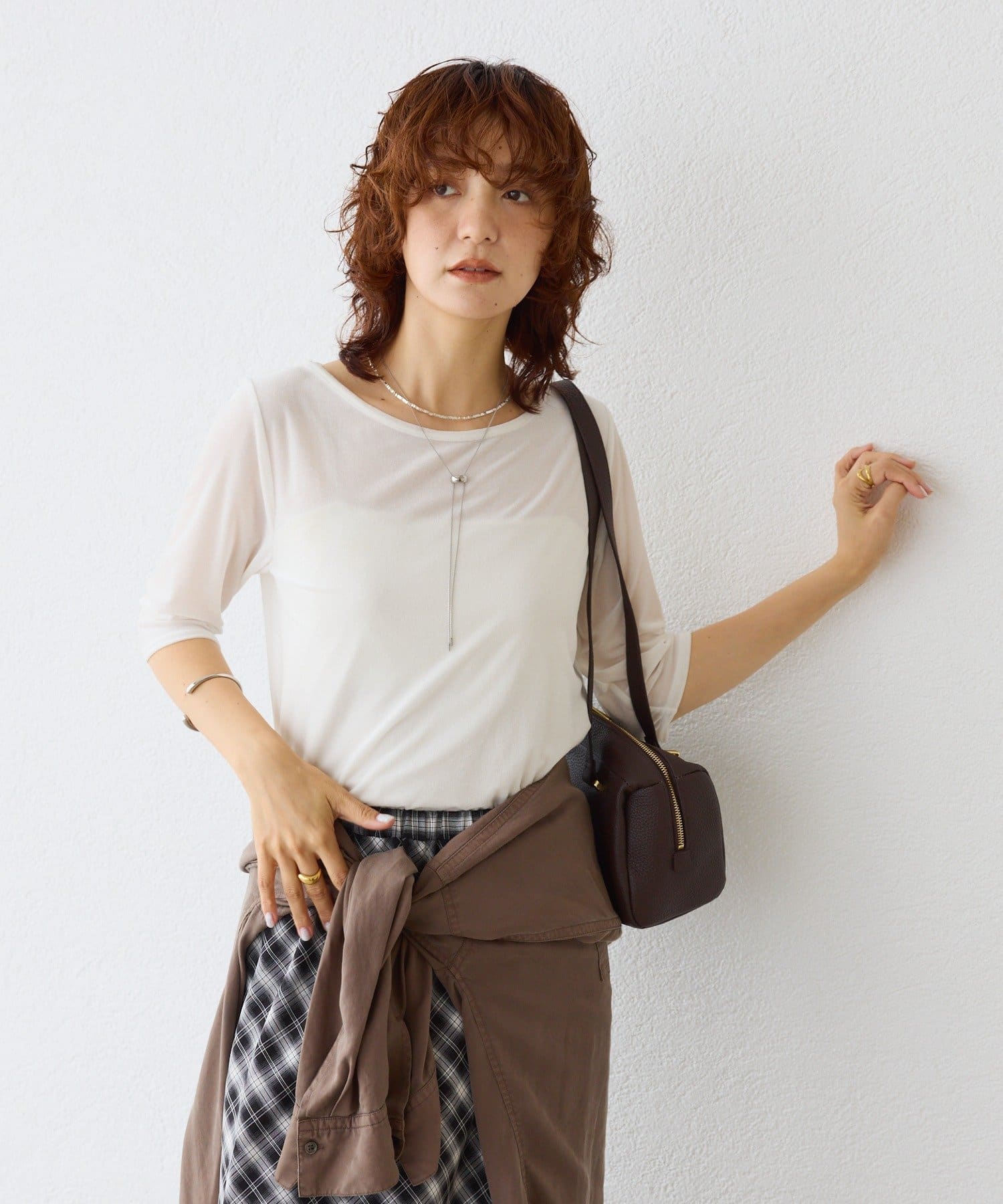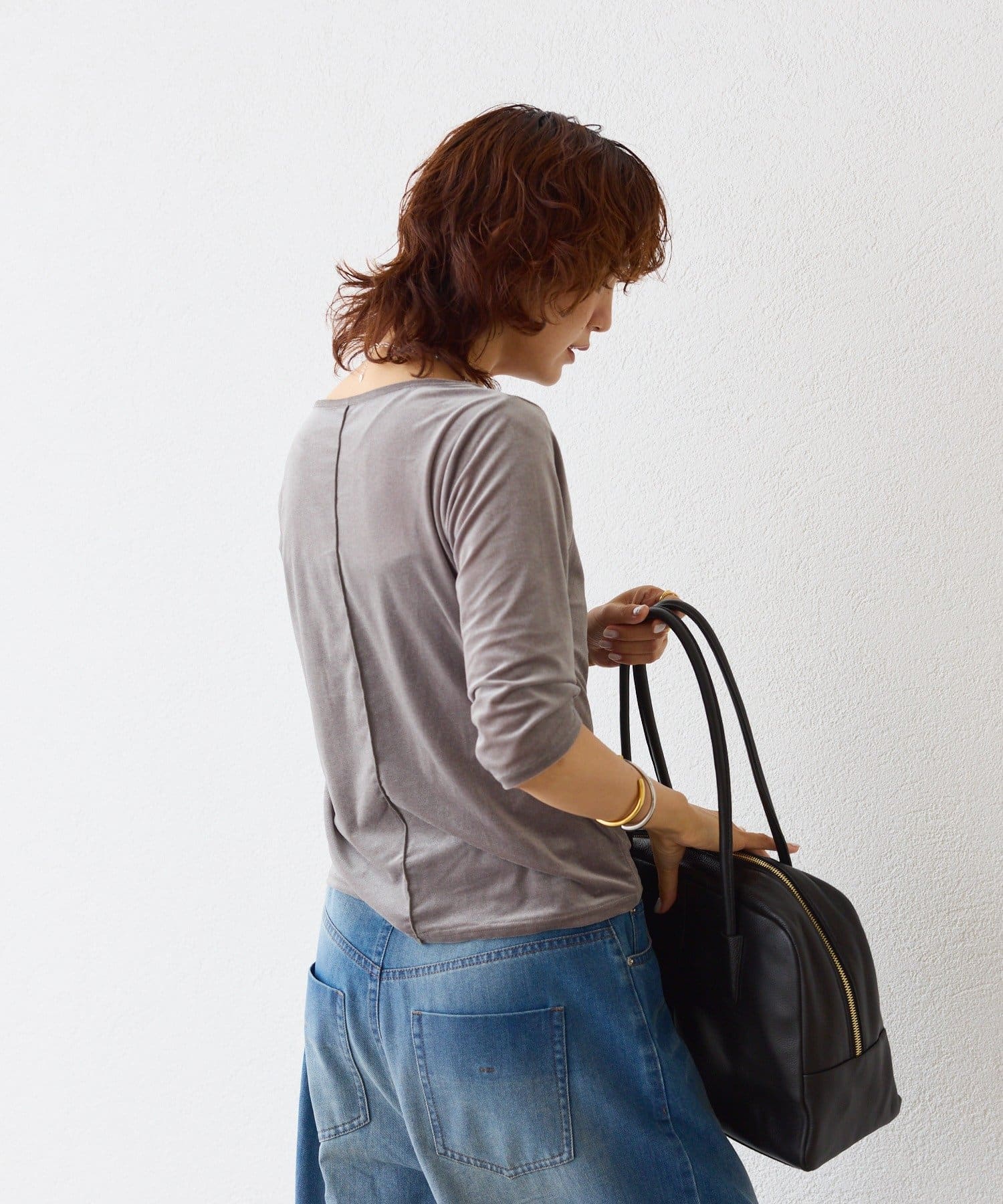 肘が隠れるくらいの袖丈で、暑い時期から秋にかけて汎用性の高い1枚です。