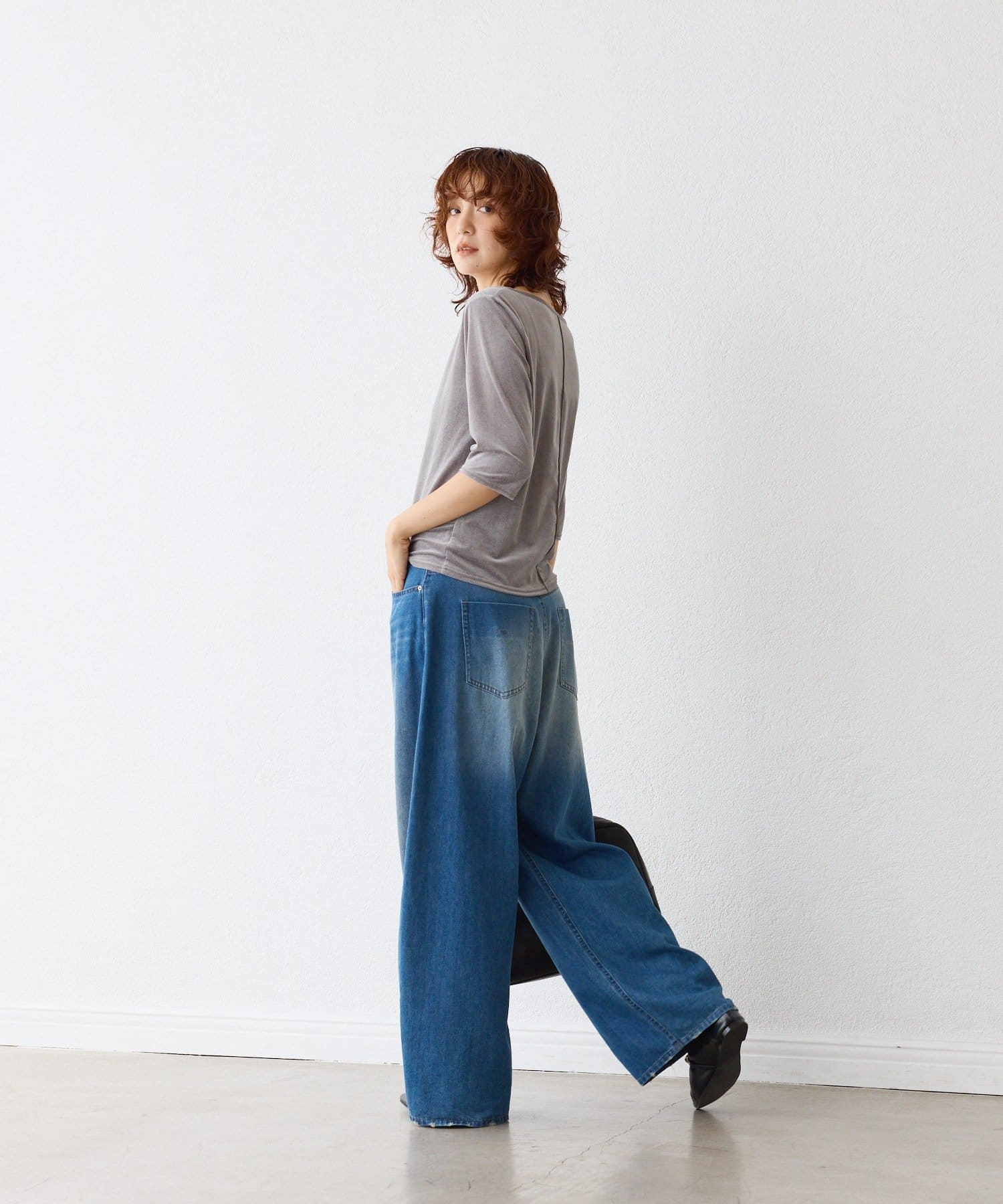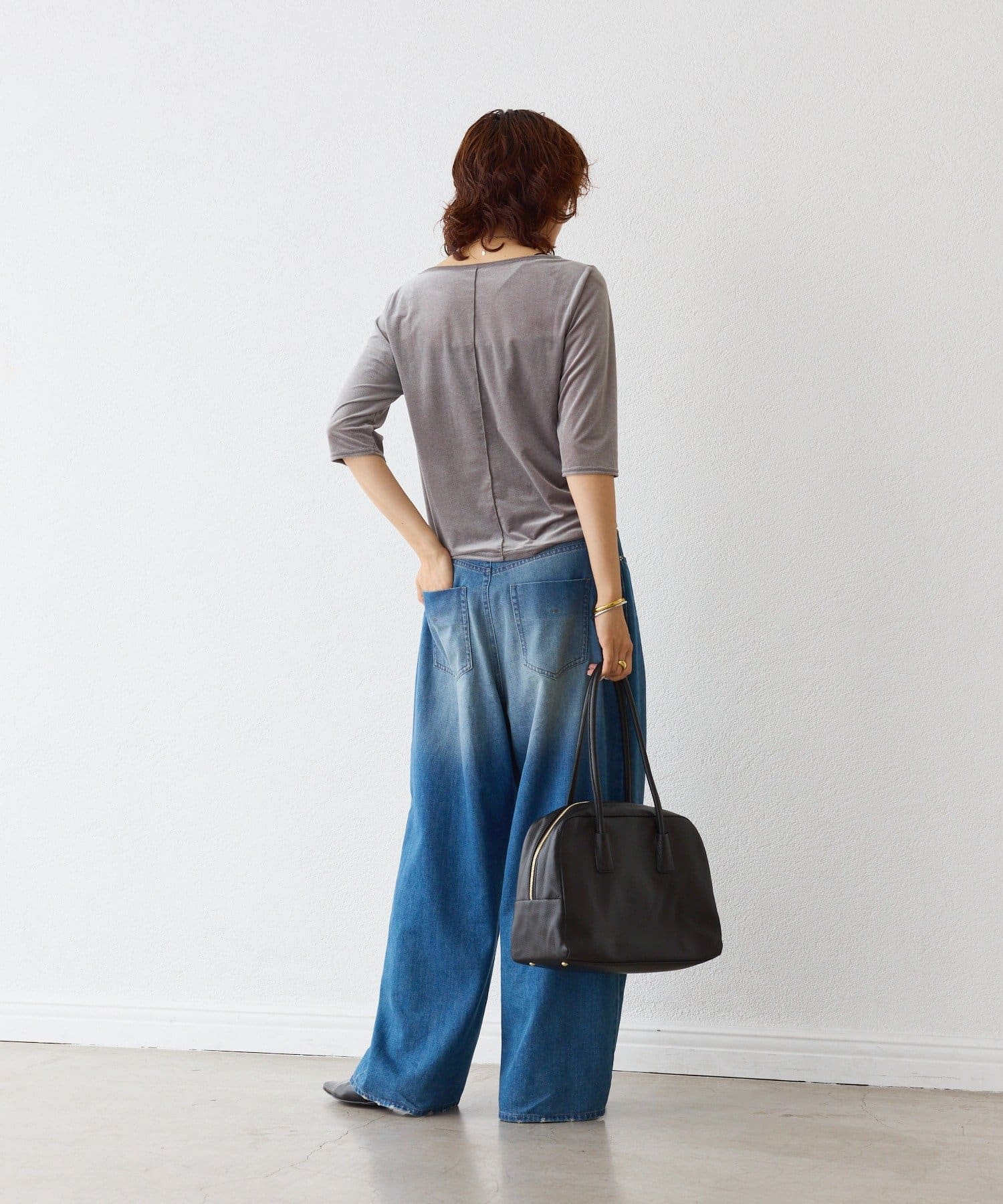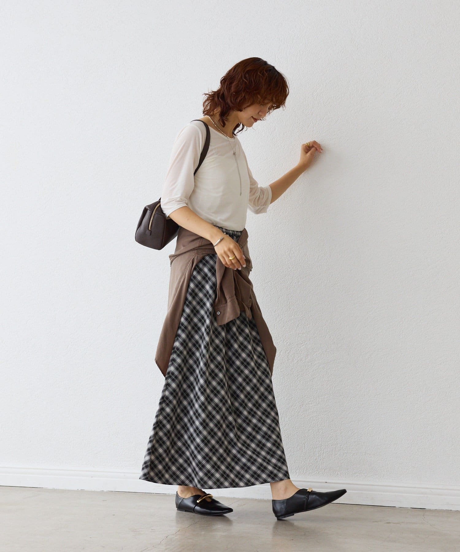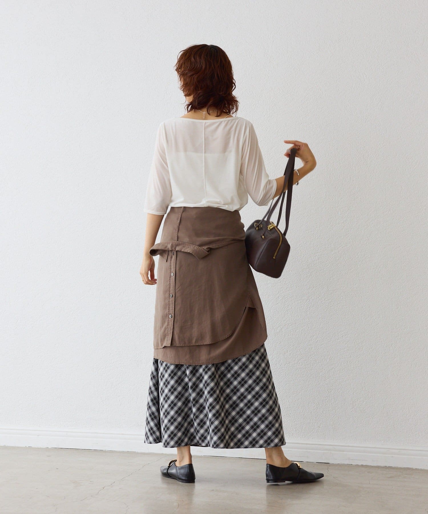 肘が隠れるくらいの袖丈で、暑い時期から秋にかけて汎用性の高い1枚です。