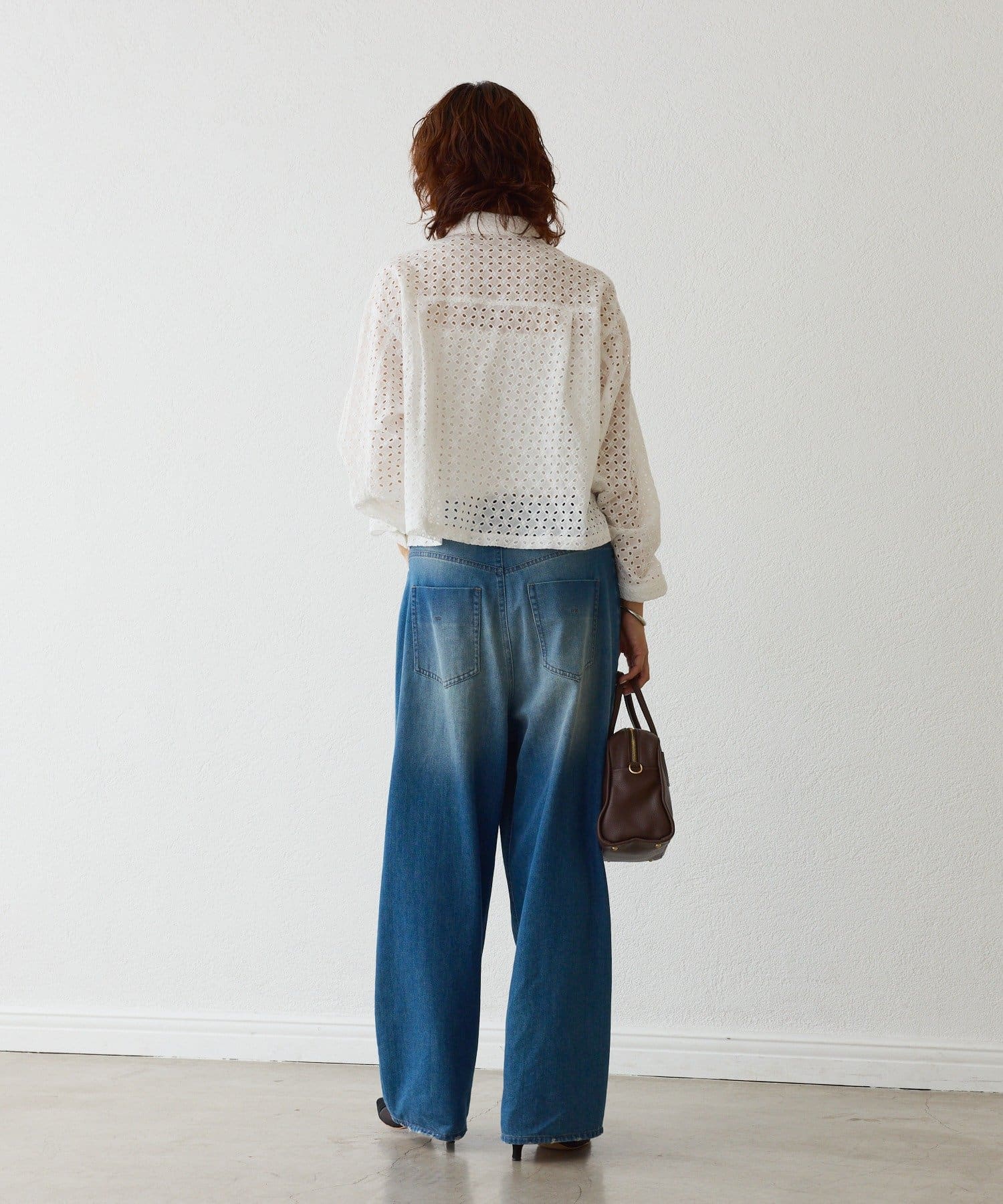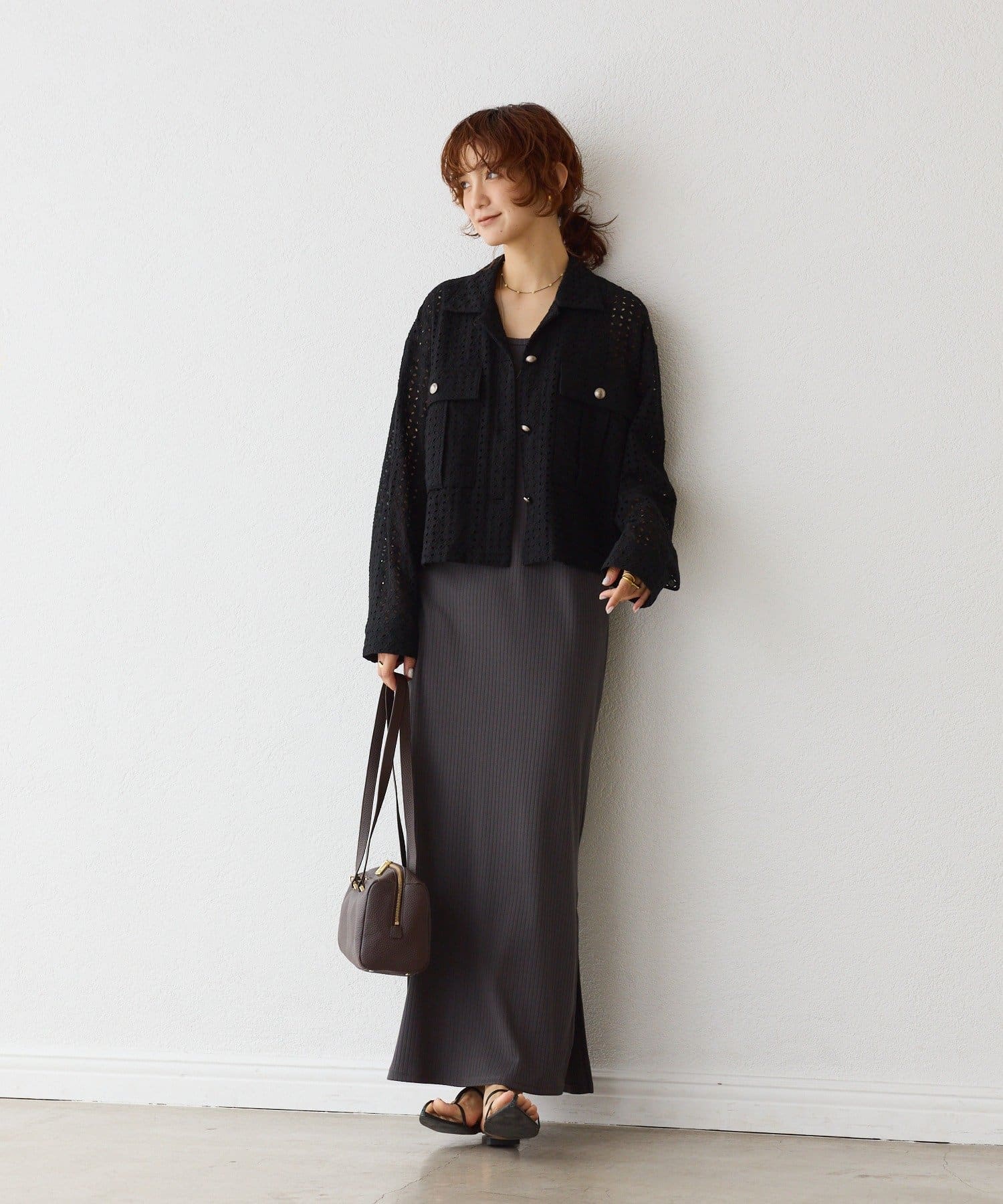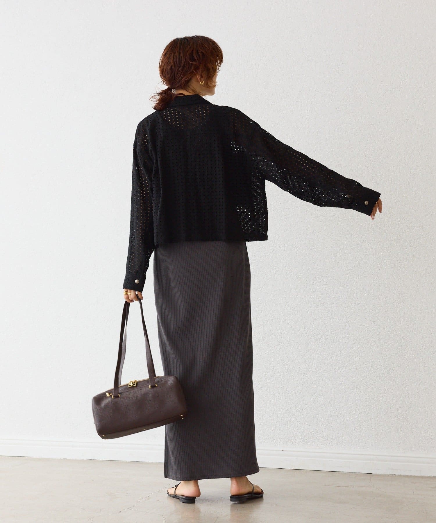 無地のようなさりげない刺繍柄で、トレンドのクラフト感を演出してくれます。