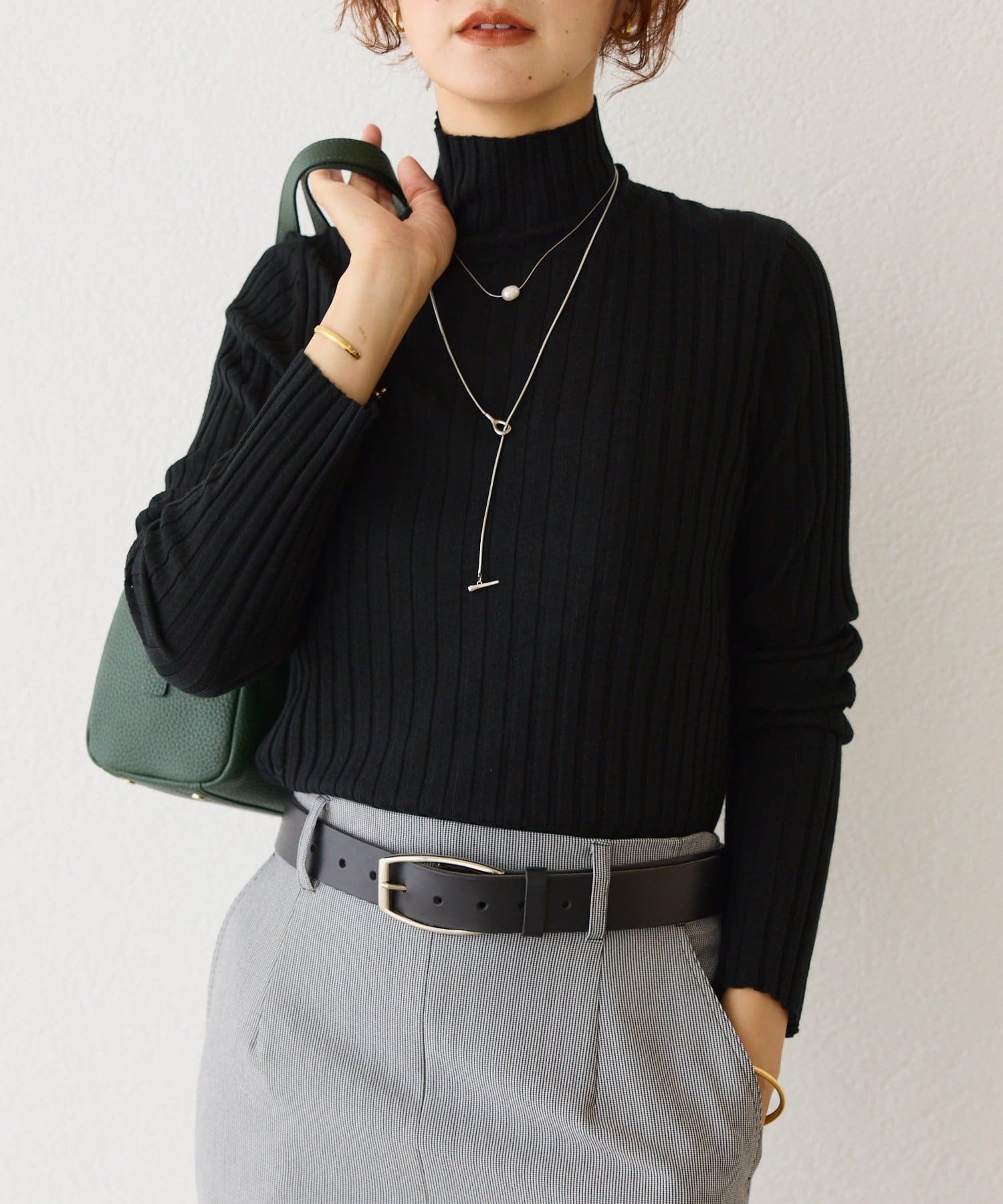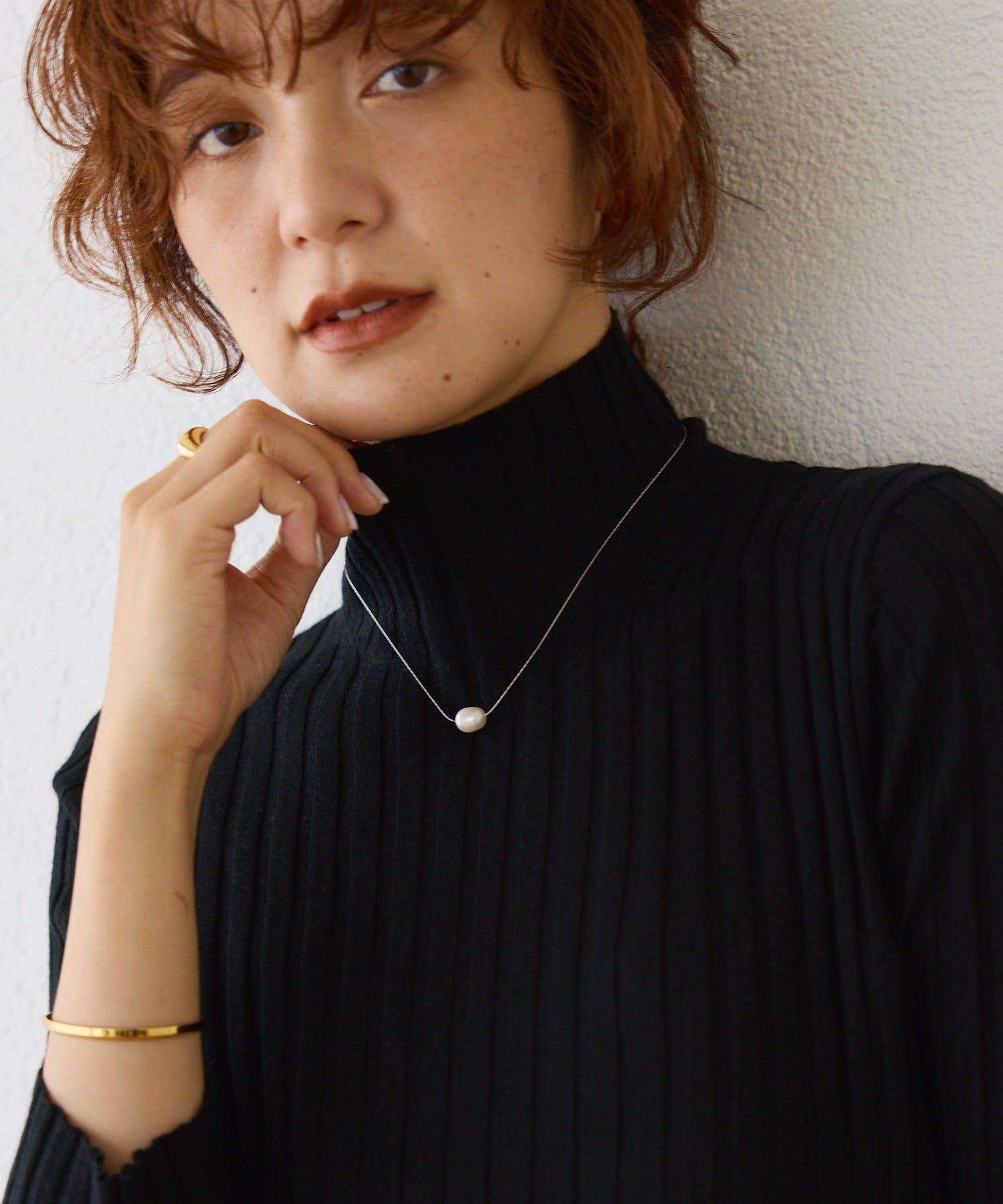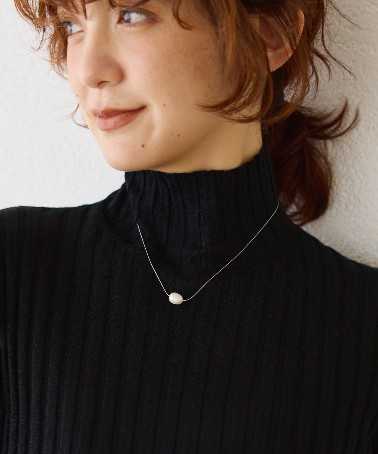 高級感ある1粒淡水のパールがポイントのショートネックレス。