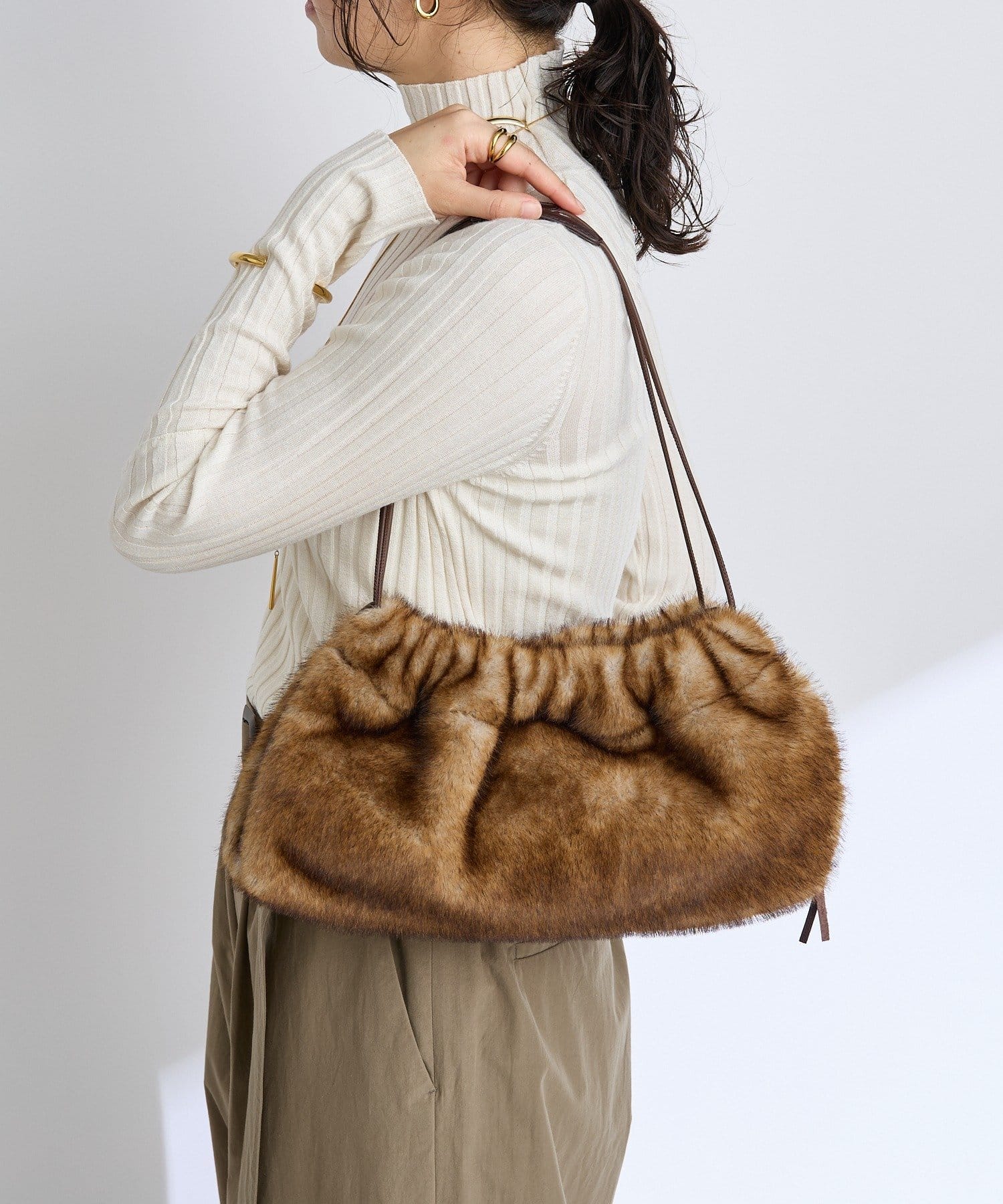 【シーズンムードを高める】フェイクファードローストリングバッグ