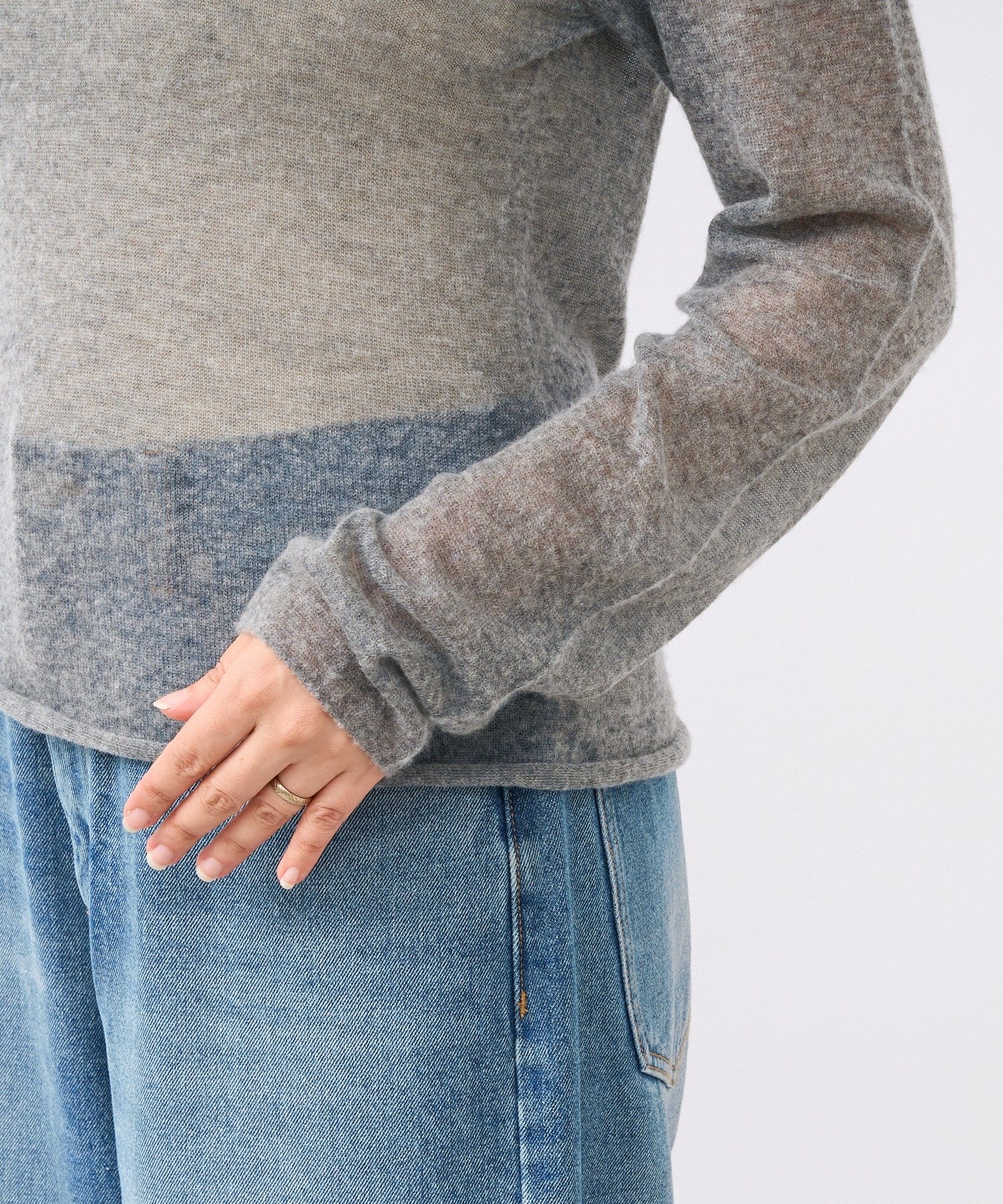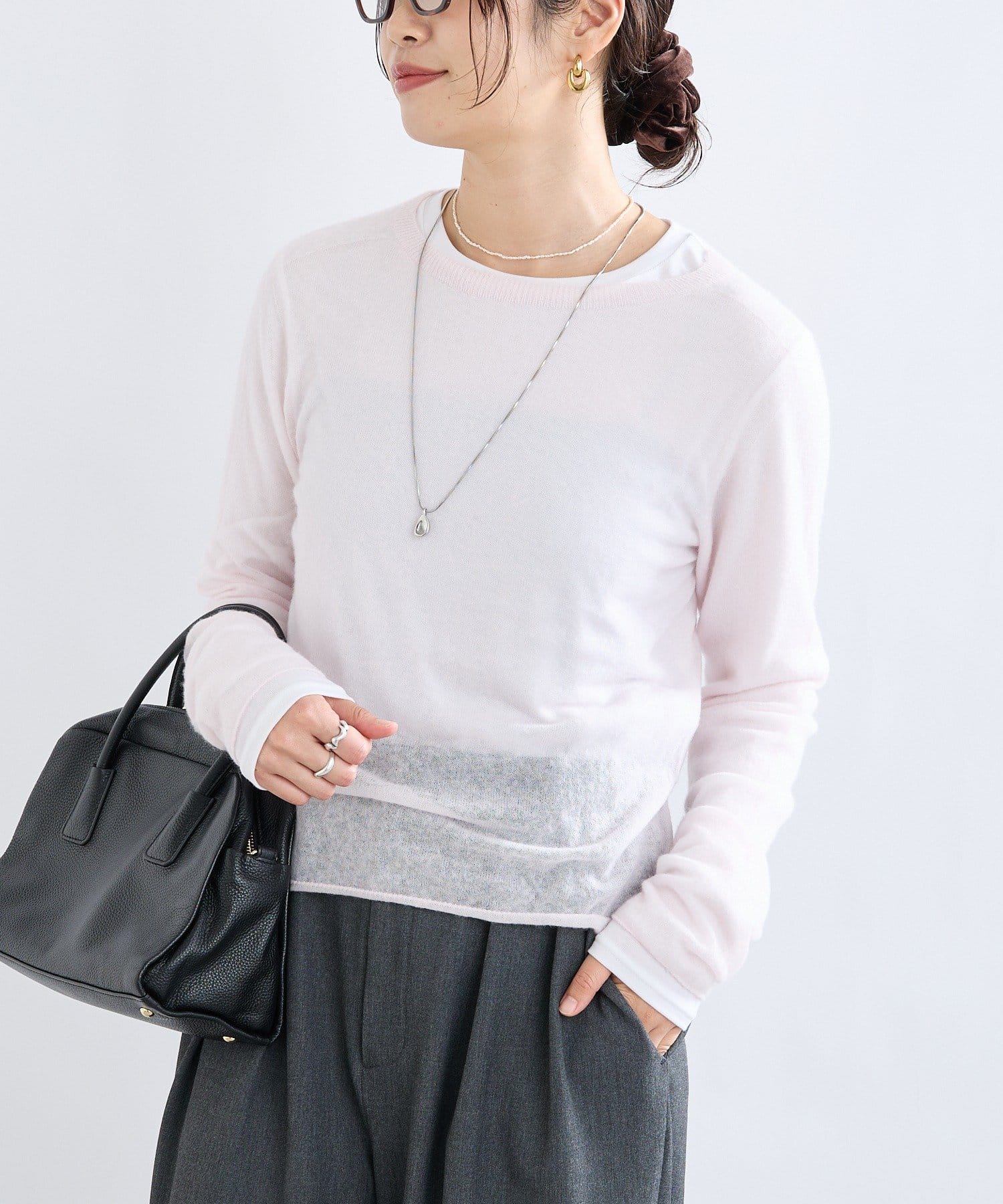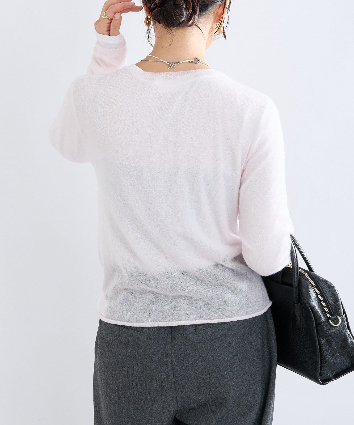 【ニュアンスをプラス】カシミヤ混ウールシアークルーニット