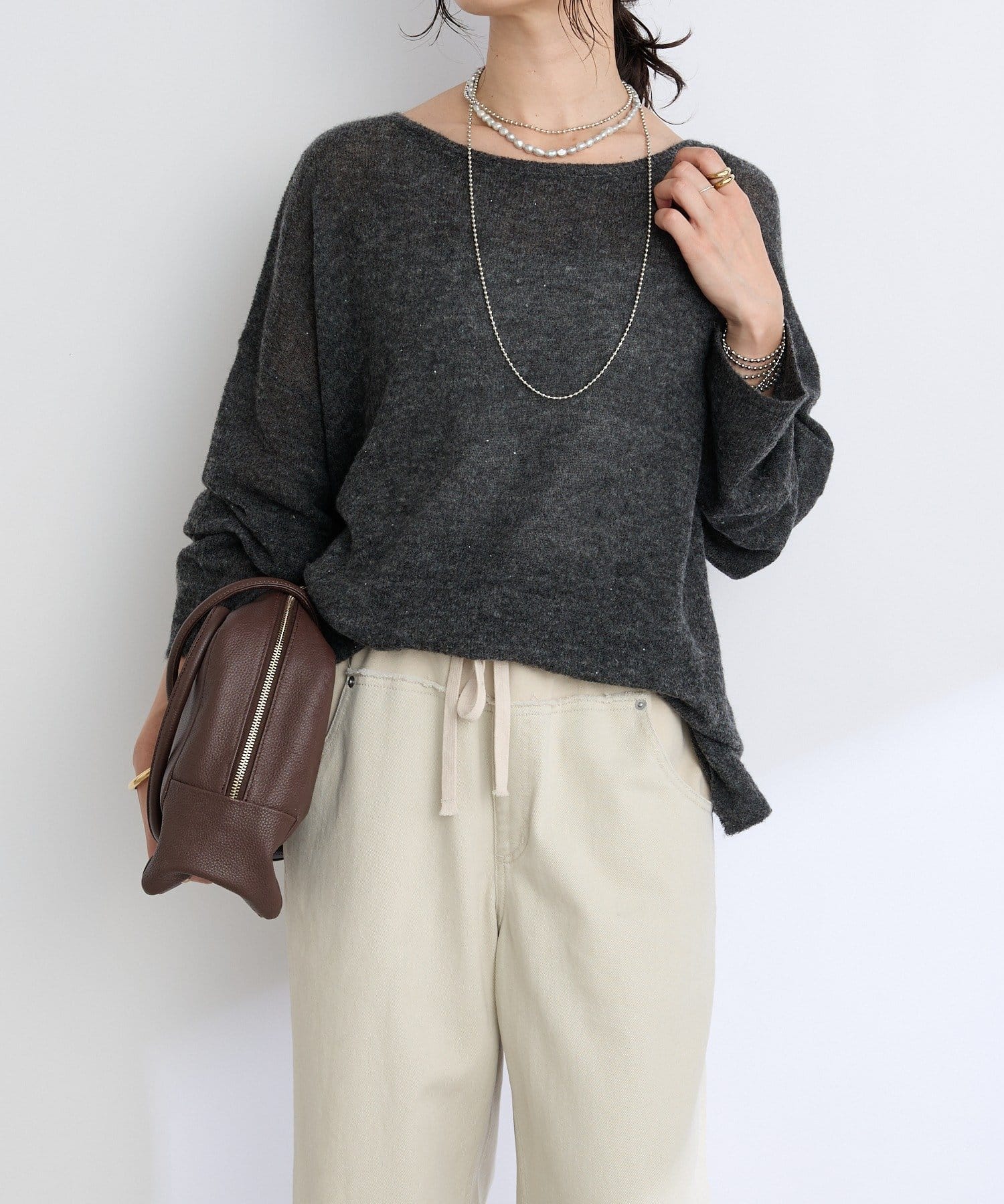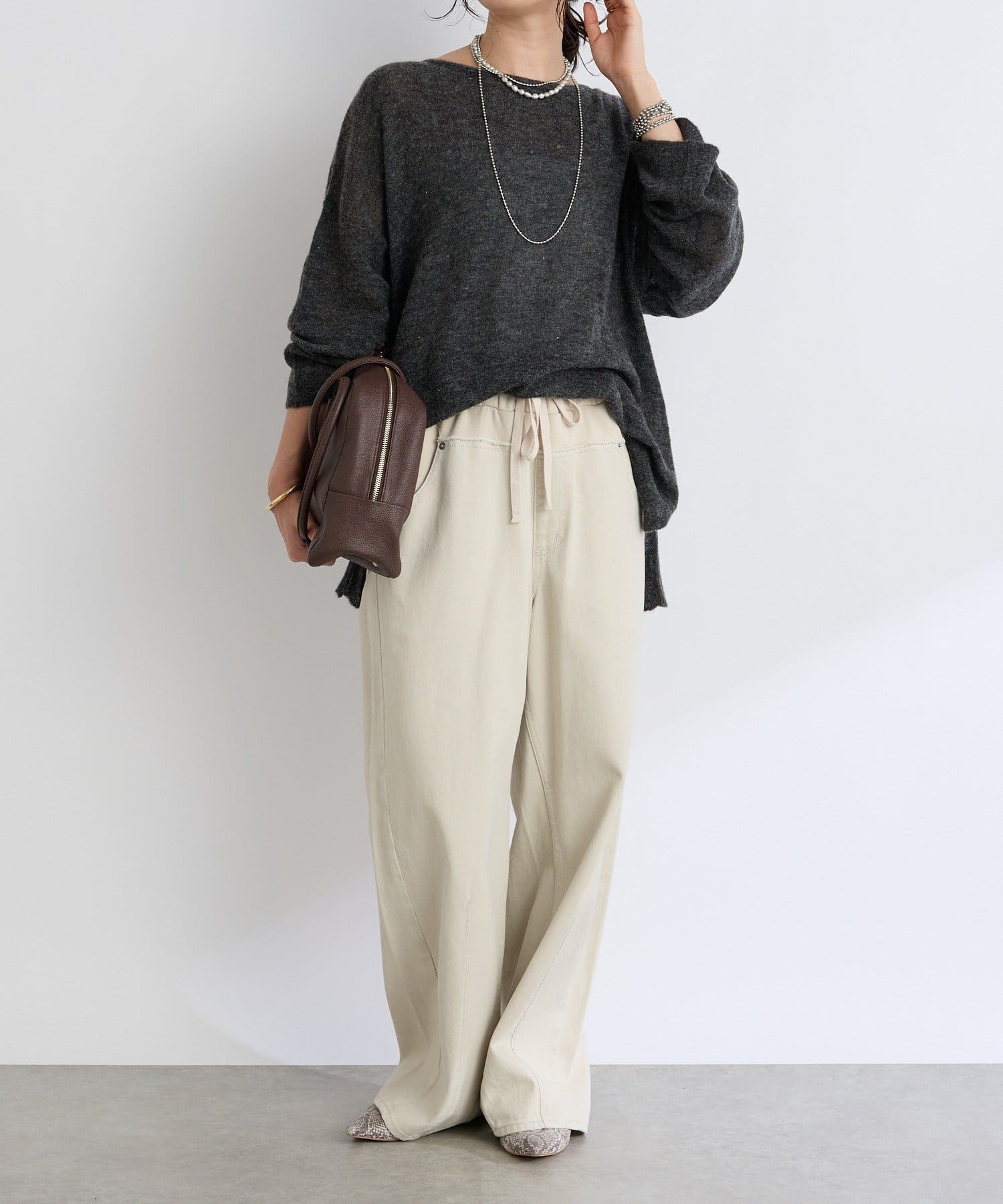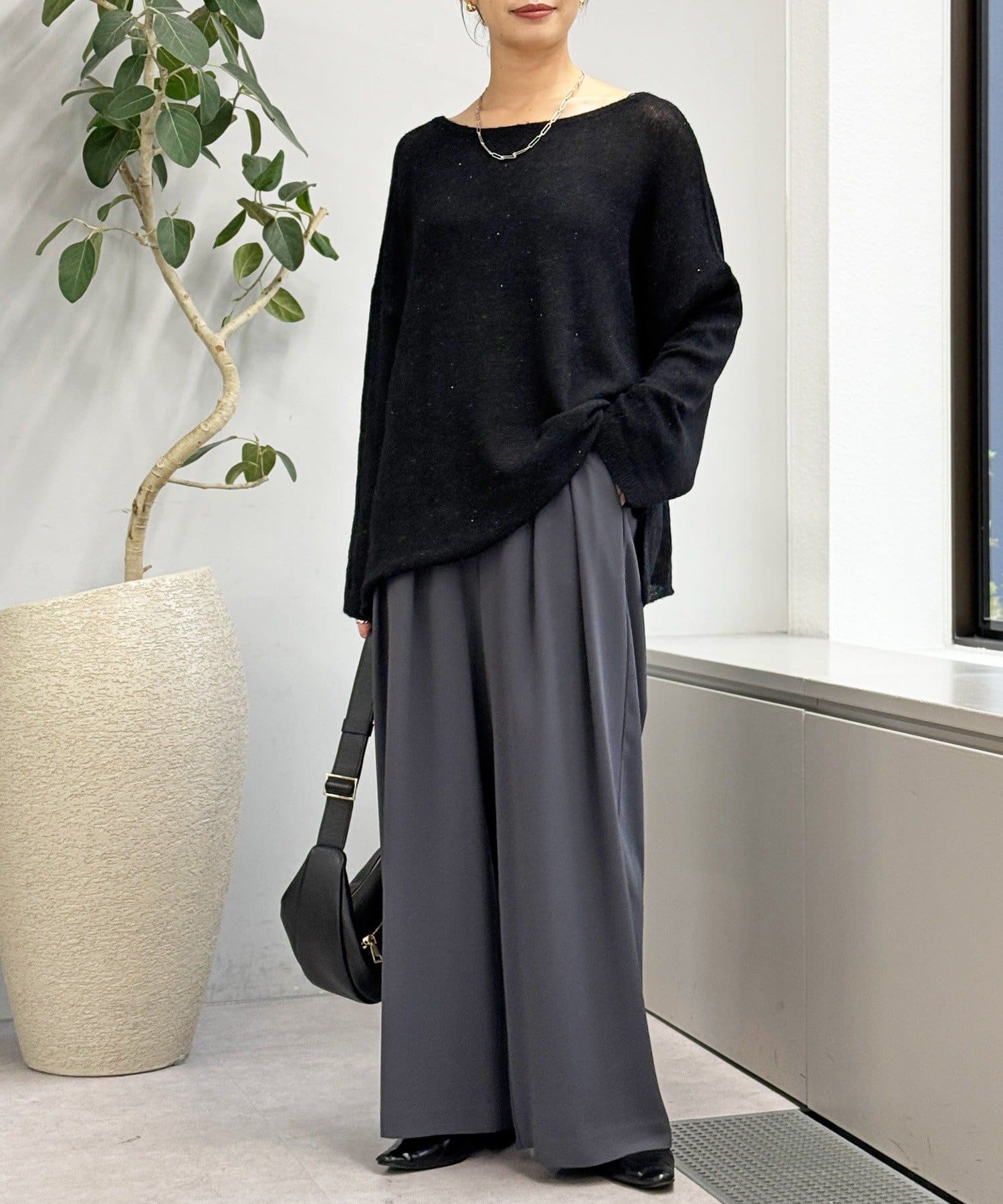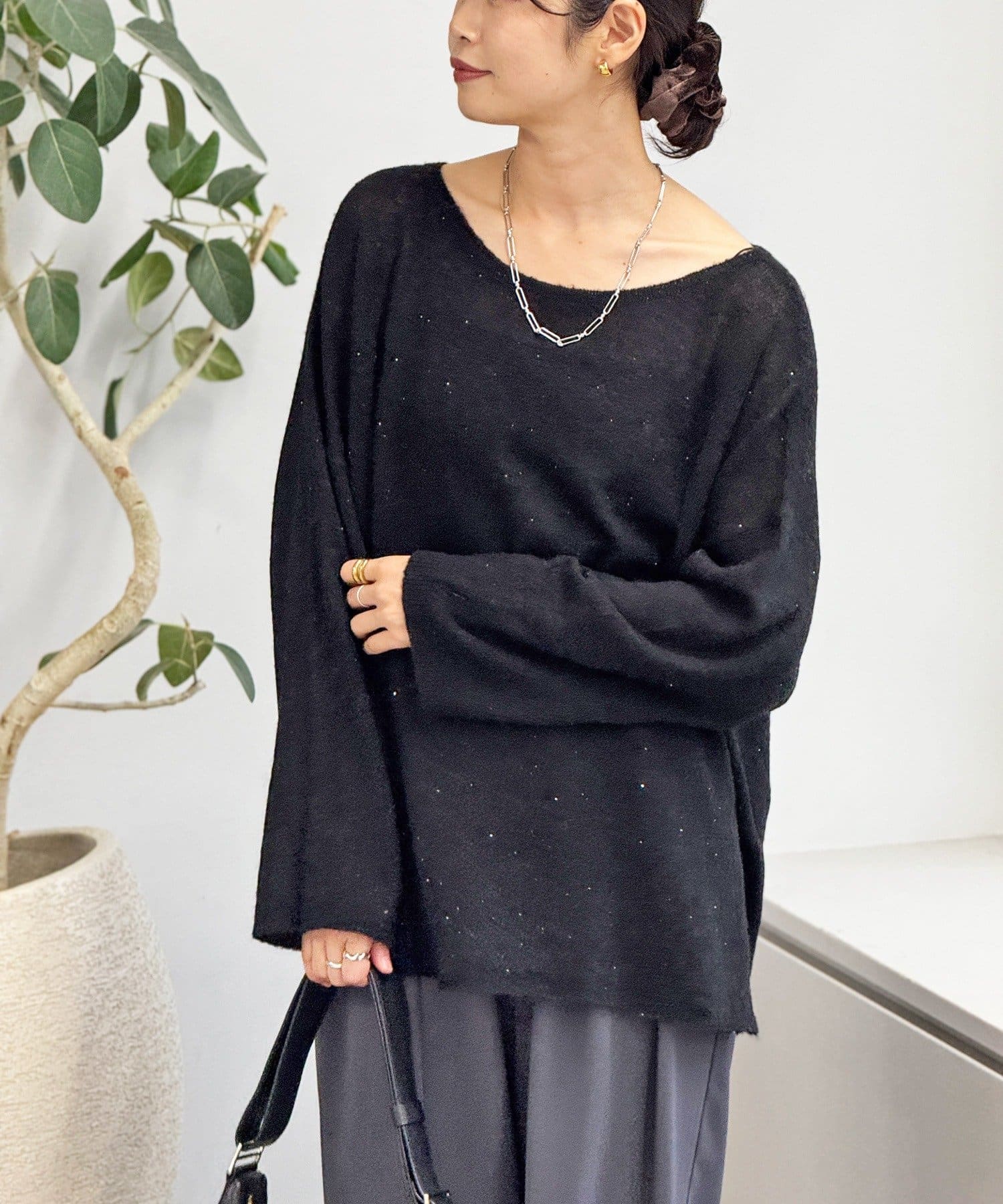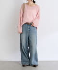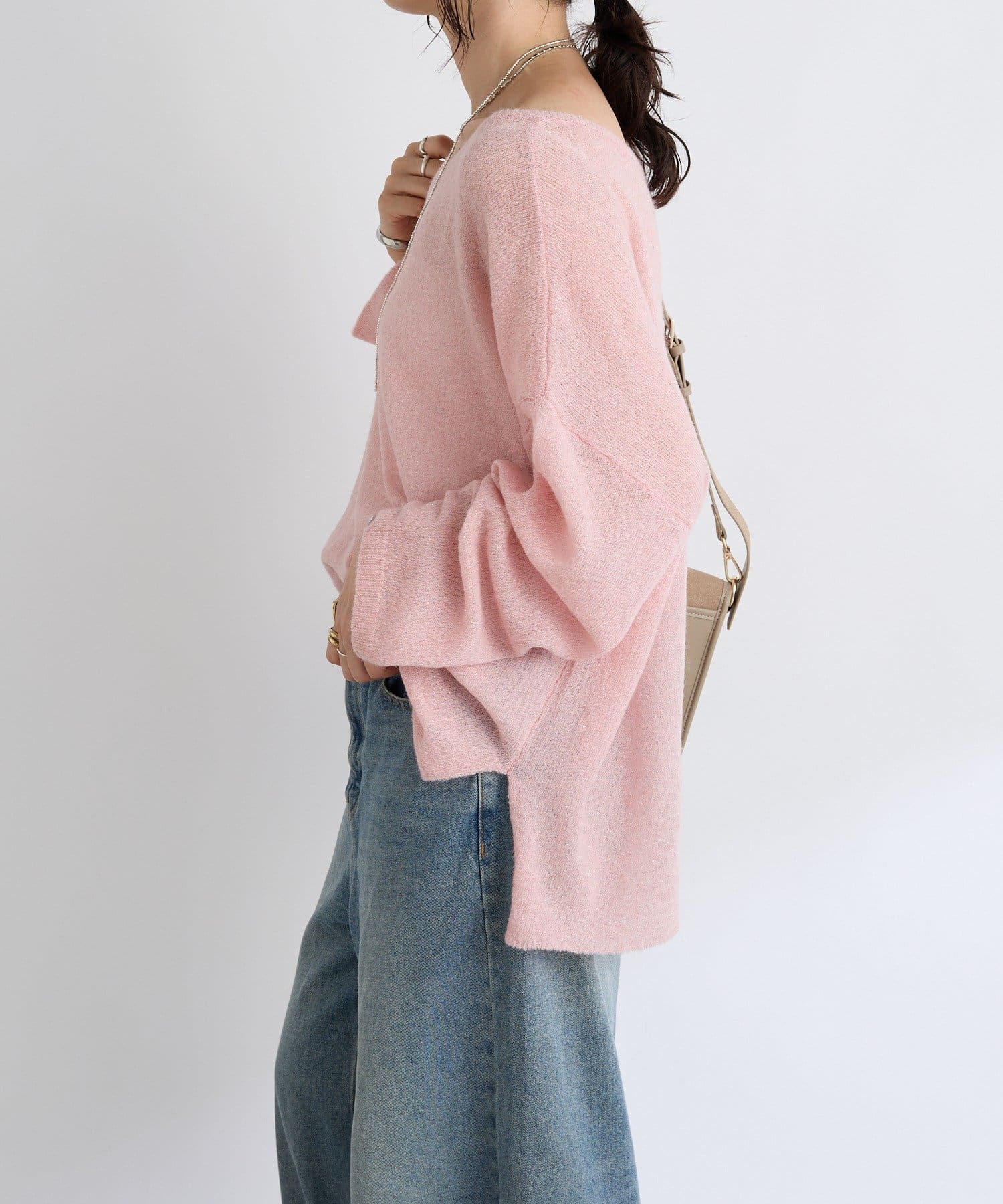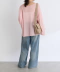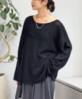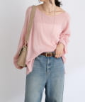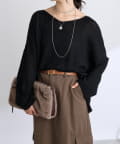 ・ヌケのある衿元やワイドなシルエットな ど、女性らしい見え感にこだわったニュアンシーなニット