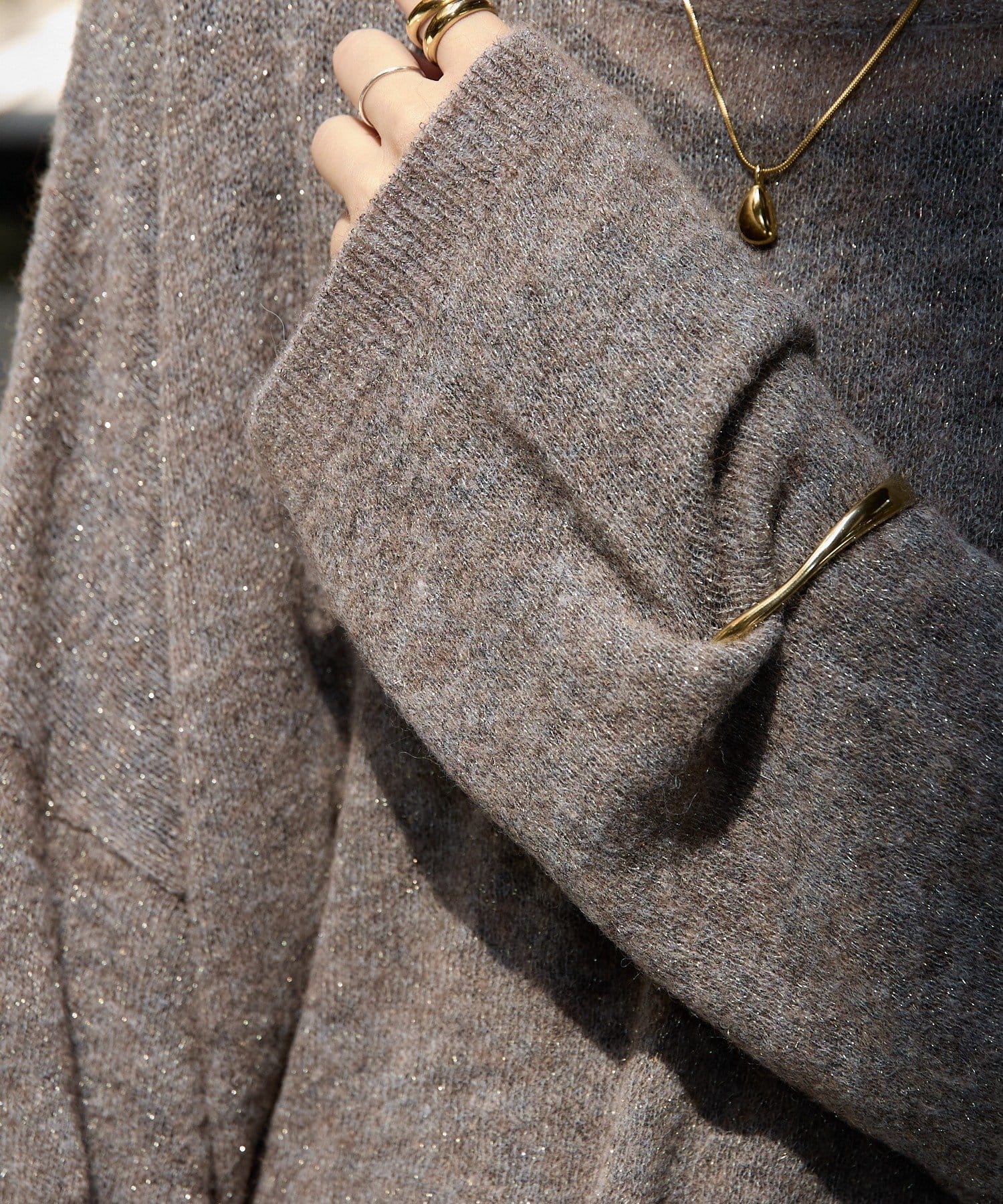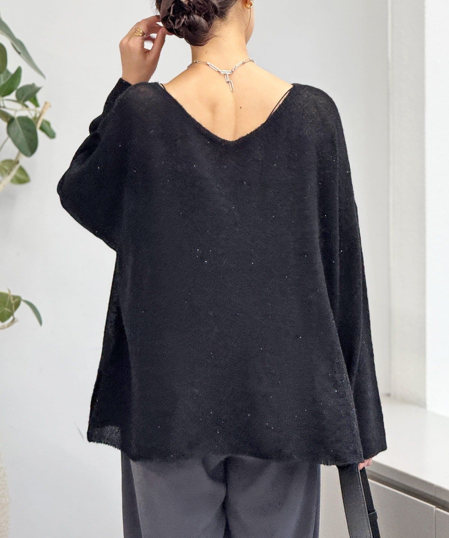 ラメとスパンコールが上品にきらめくシアーニット