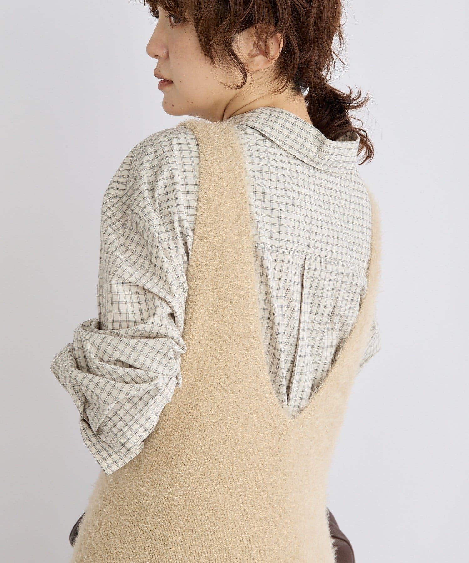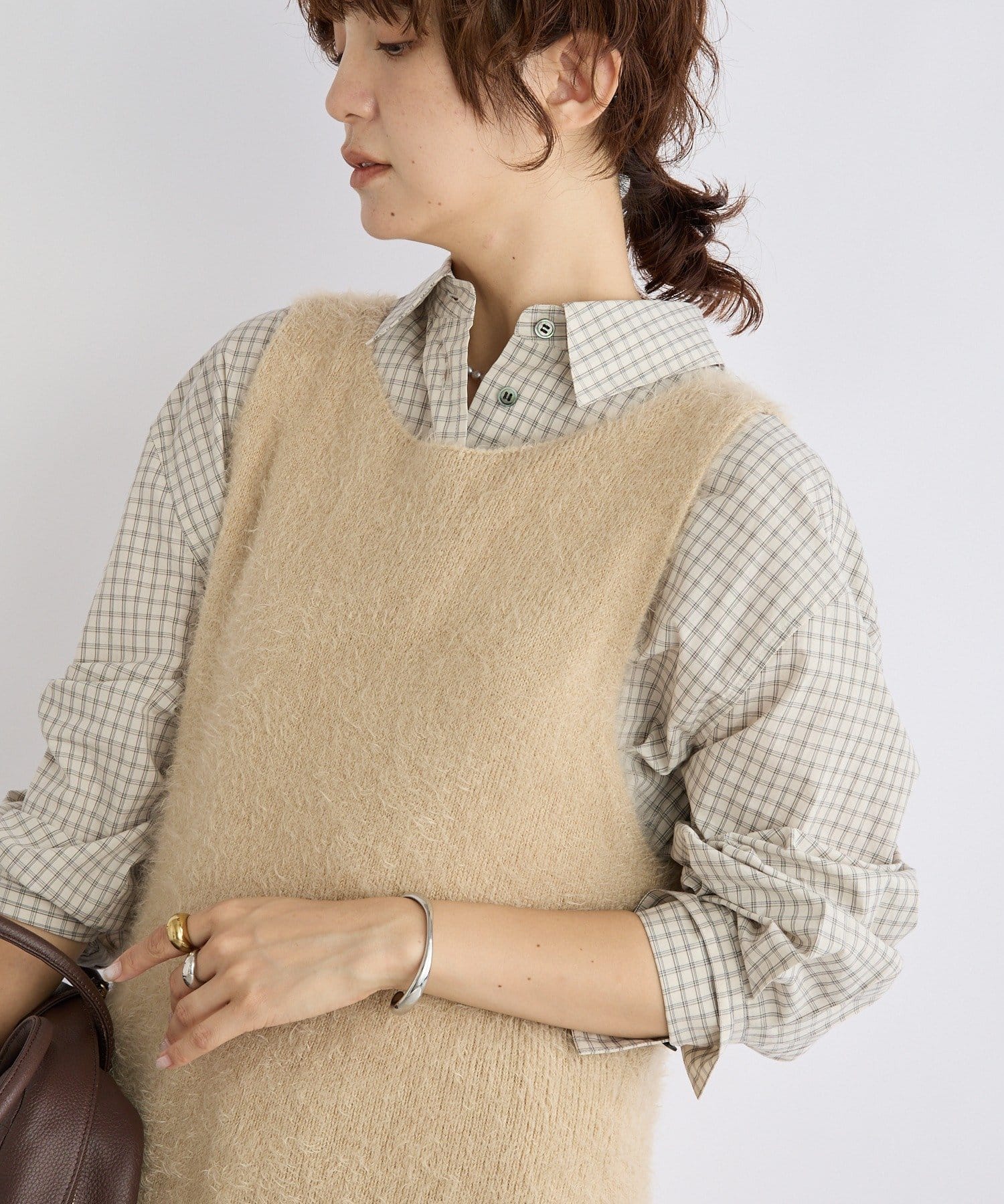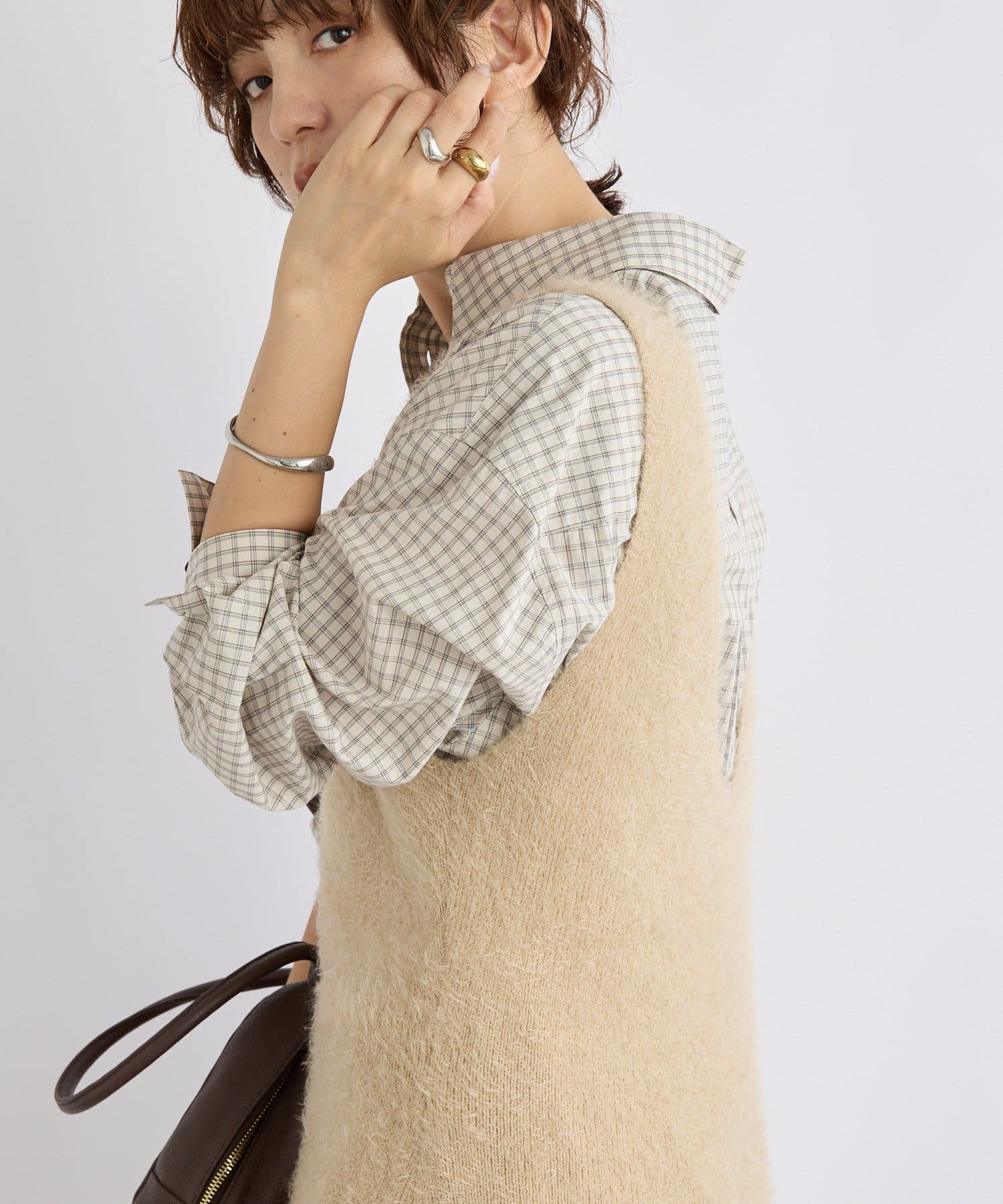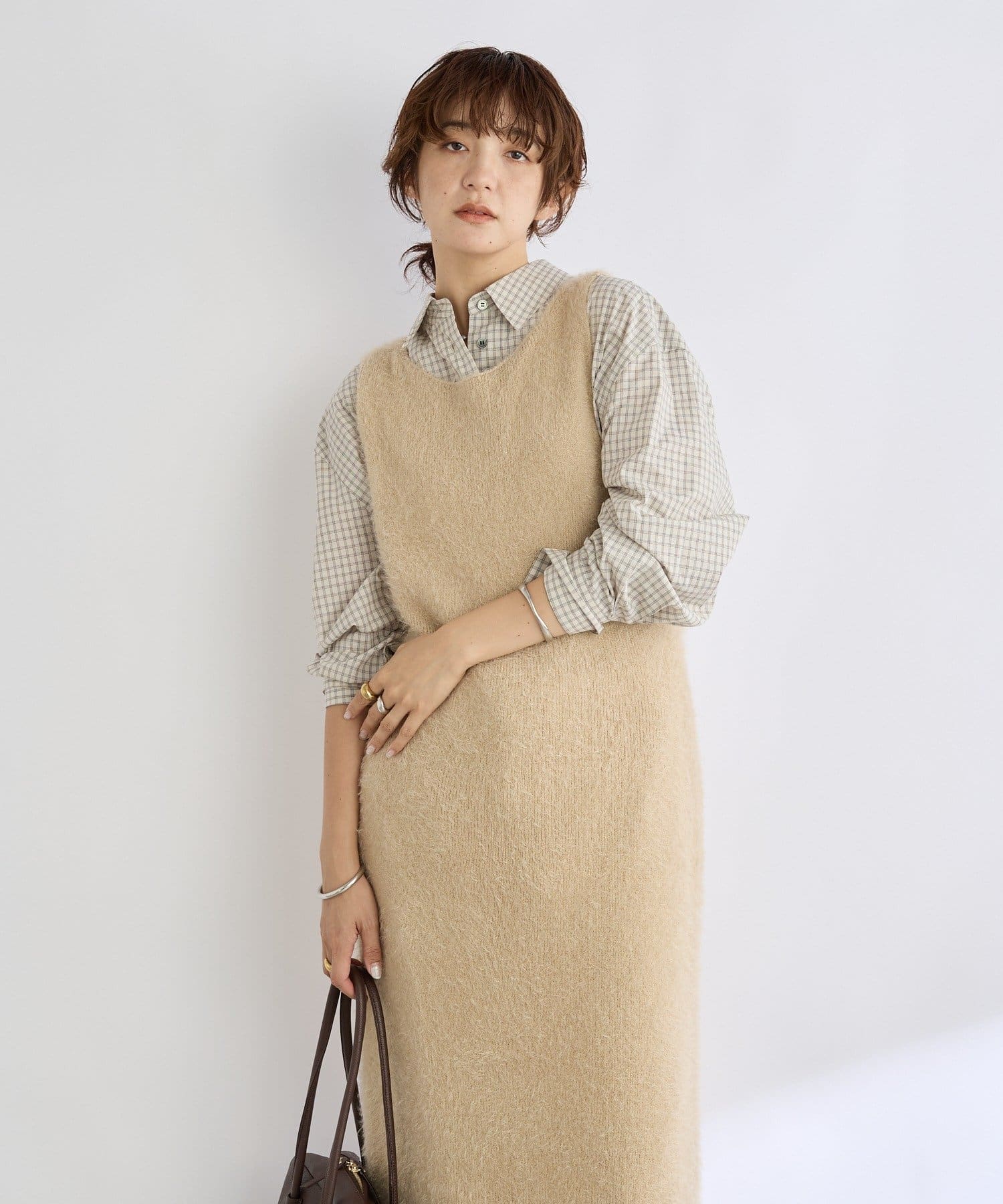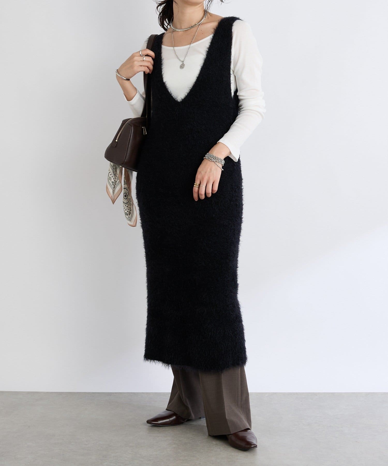 ・タイツやロングブーツと合わせてワンピースとしてはもちろん、ロングジレ感覚でデニムやスラックスとのレイヤードもおすすめ