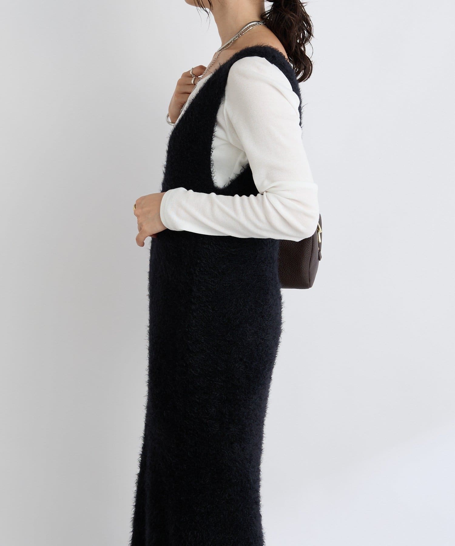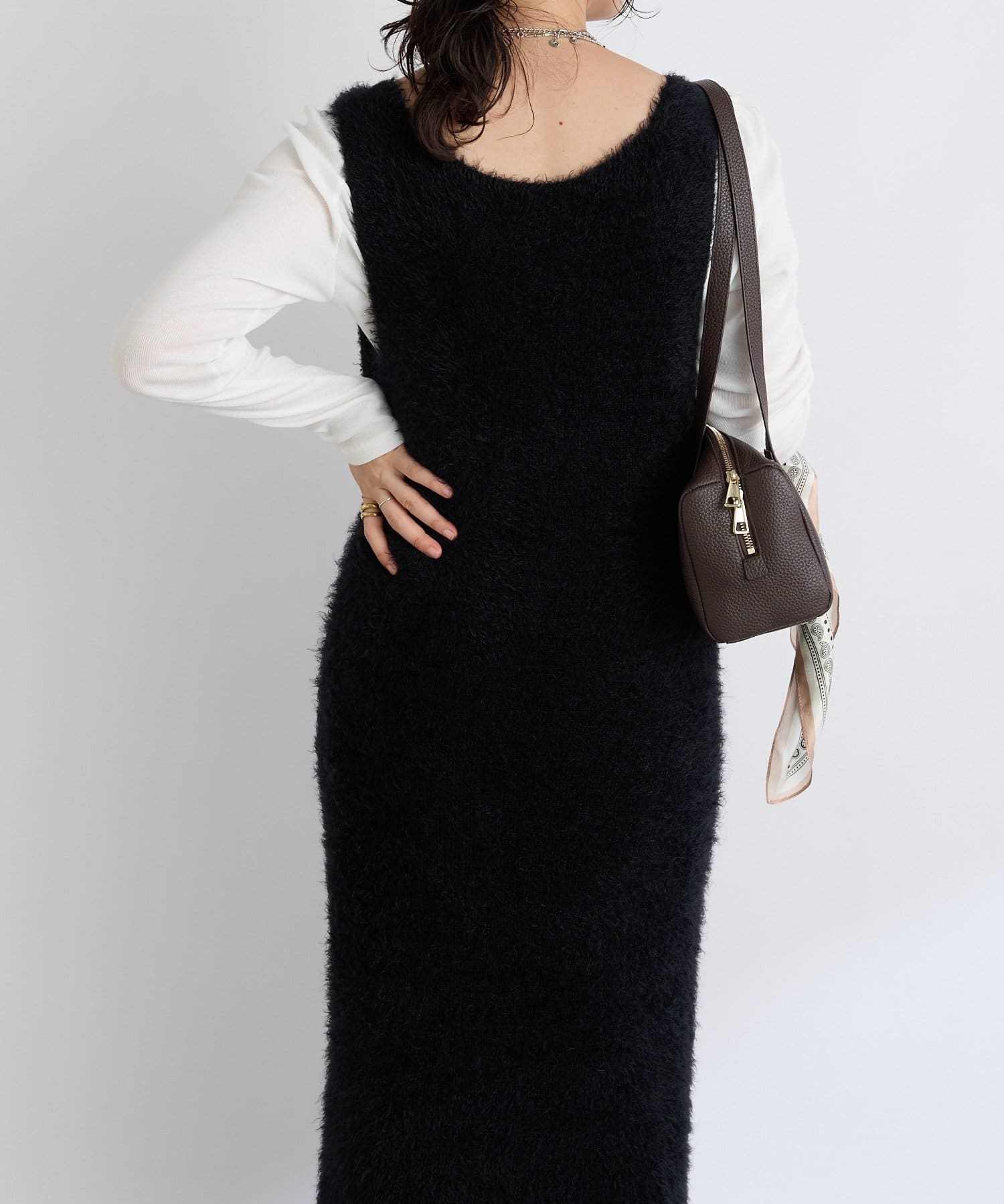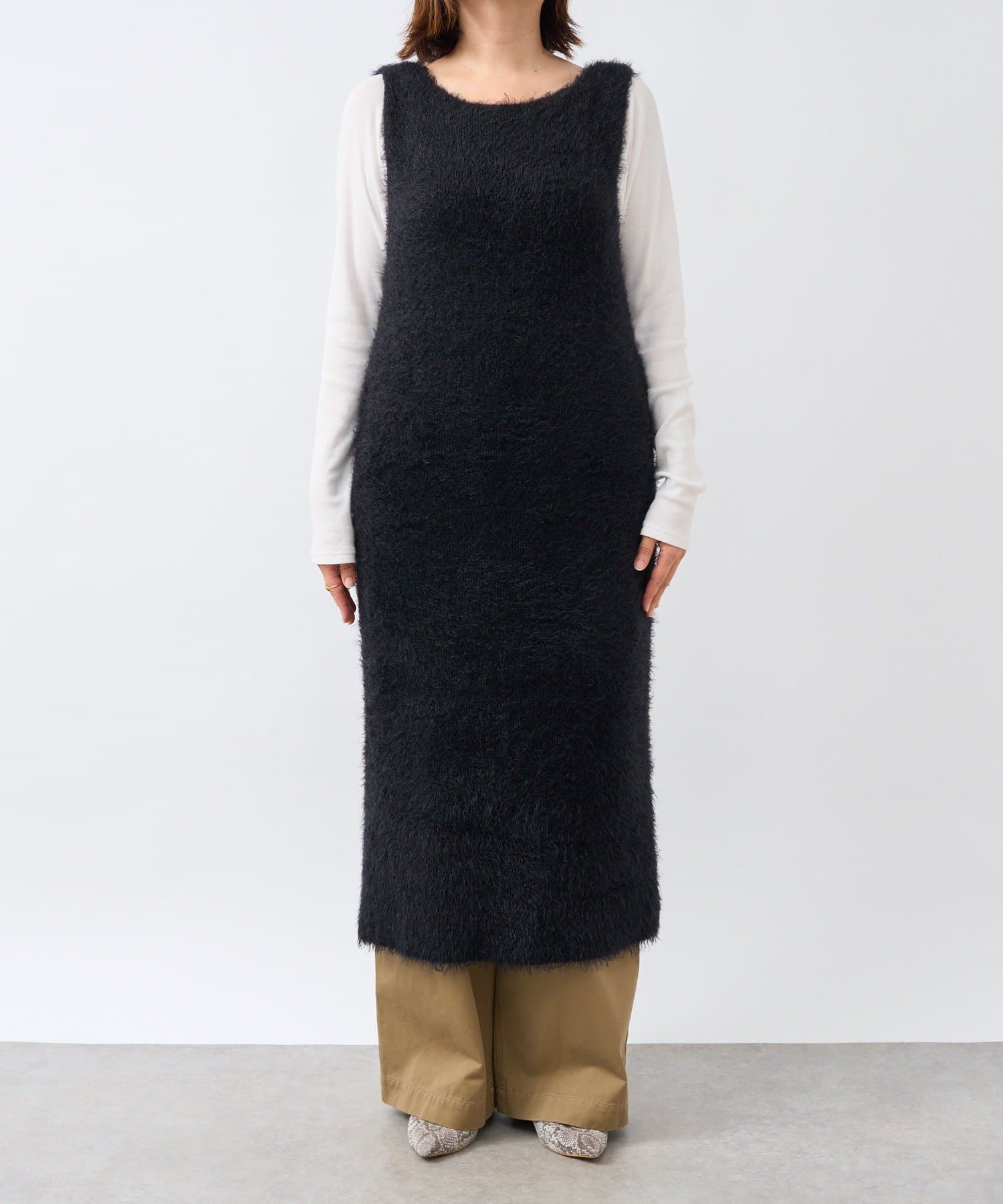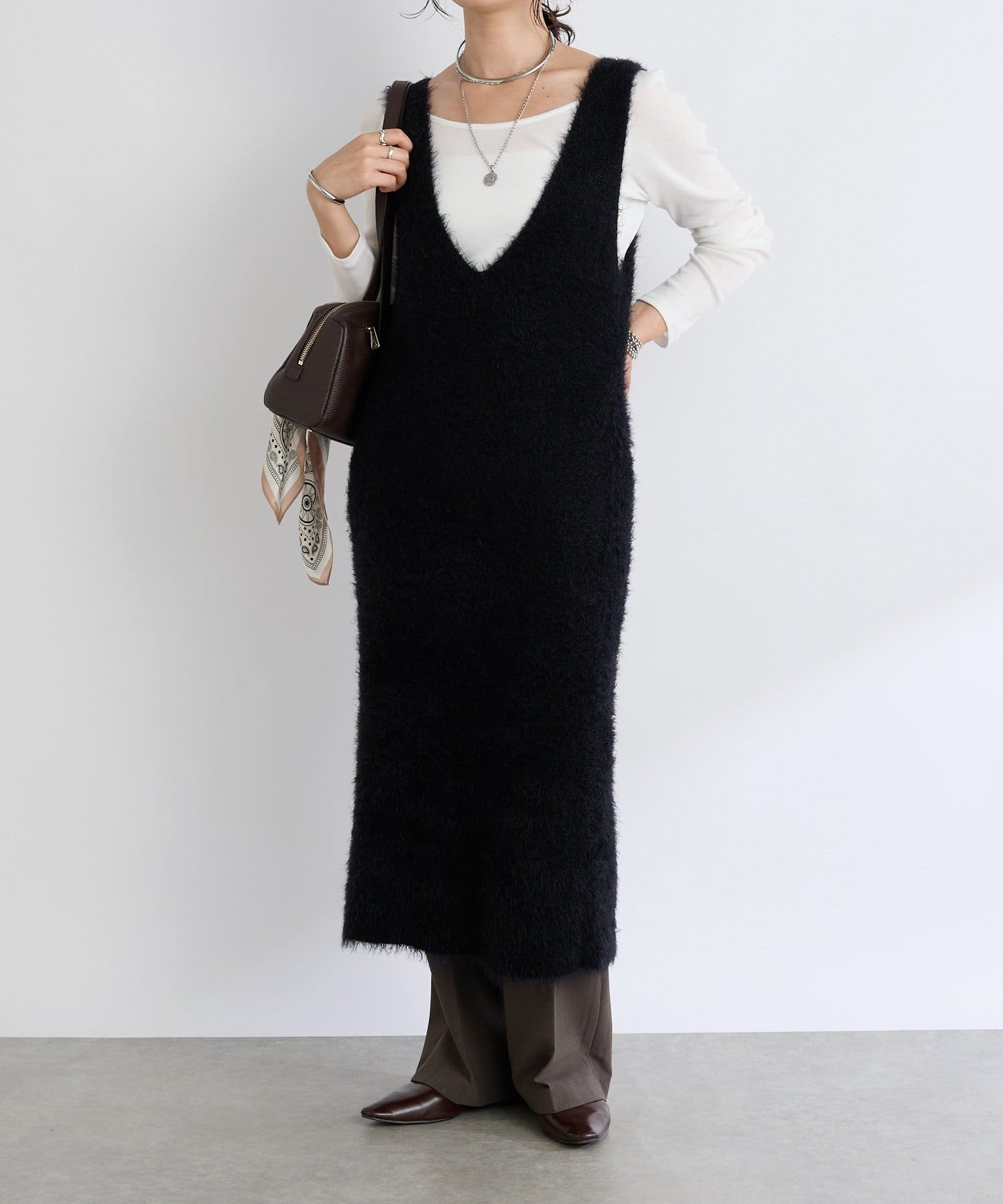 ・キャッチーなフェザーヤーンでコーディネートのポイントになるニットワンピース