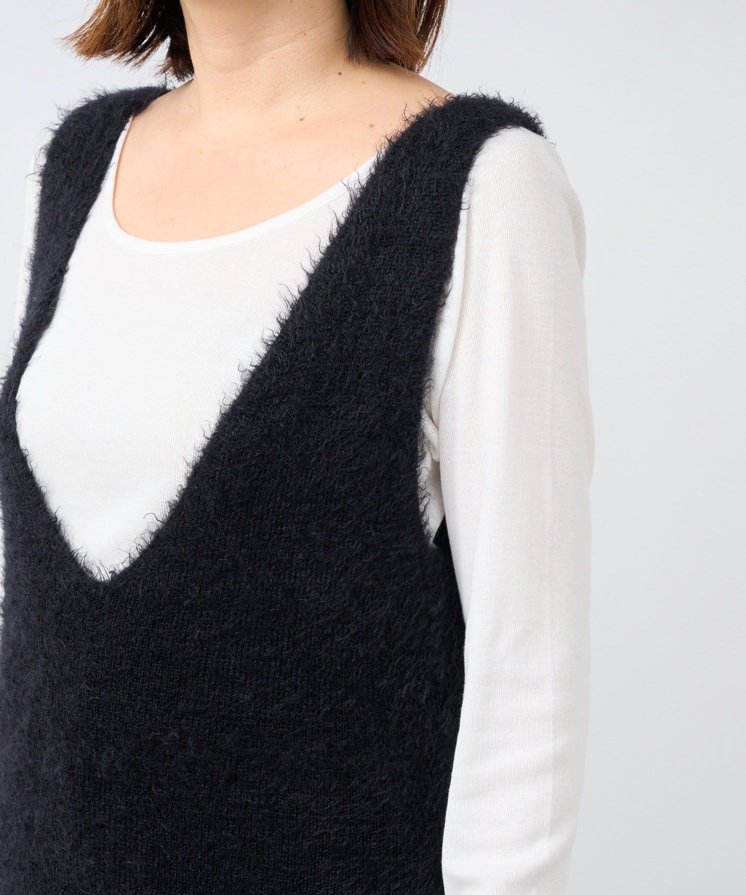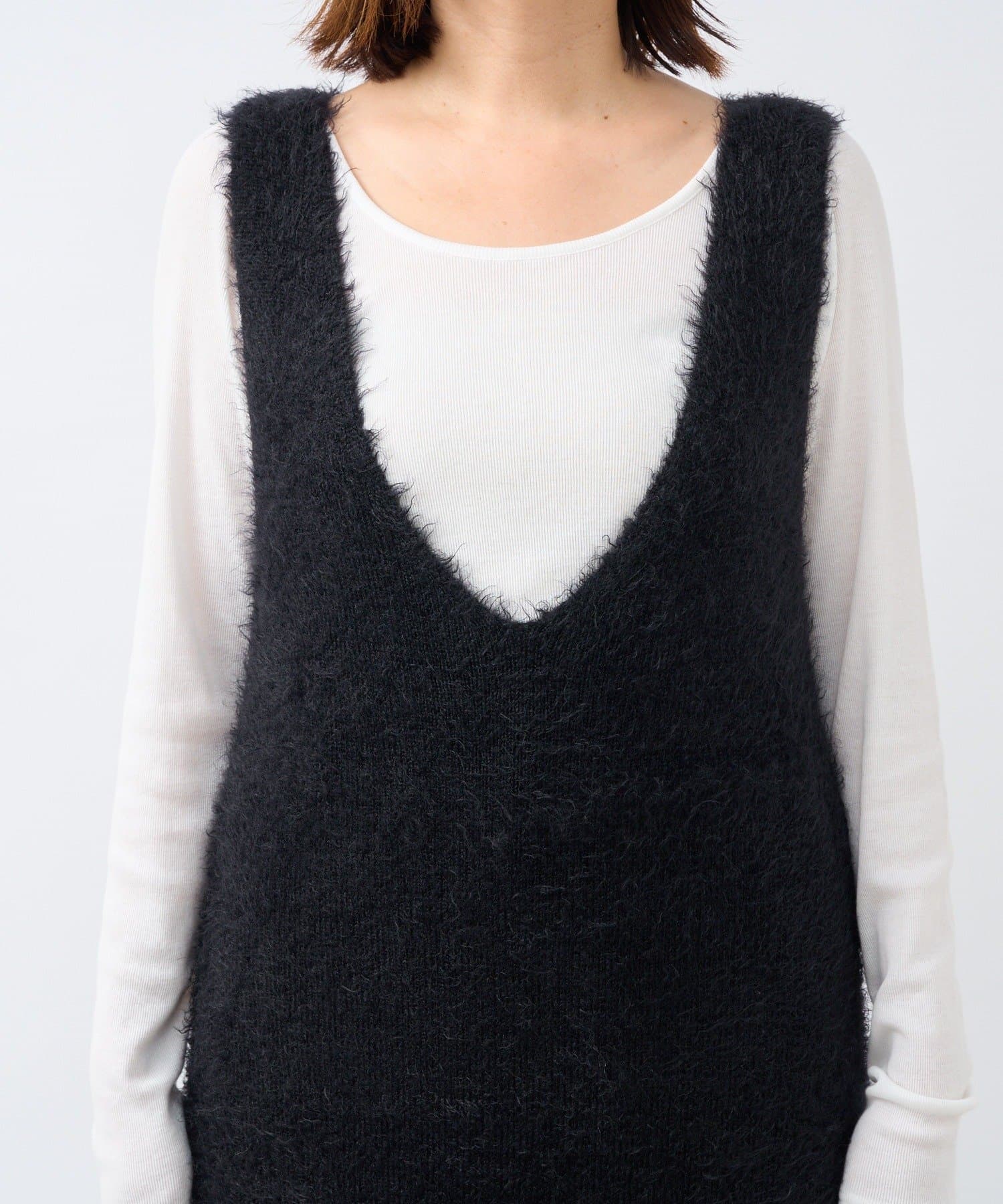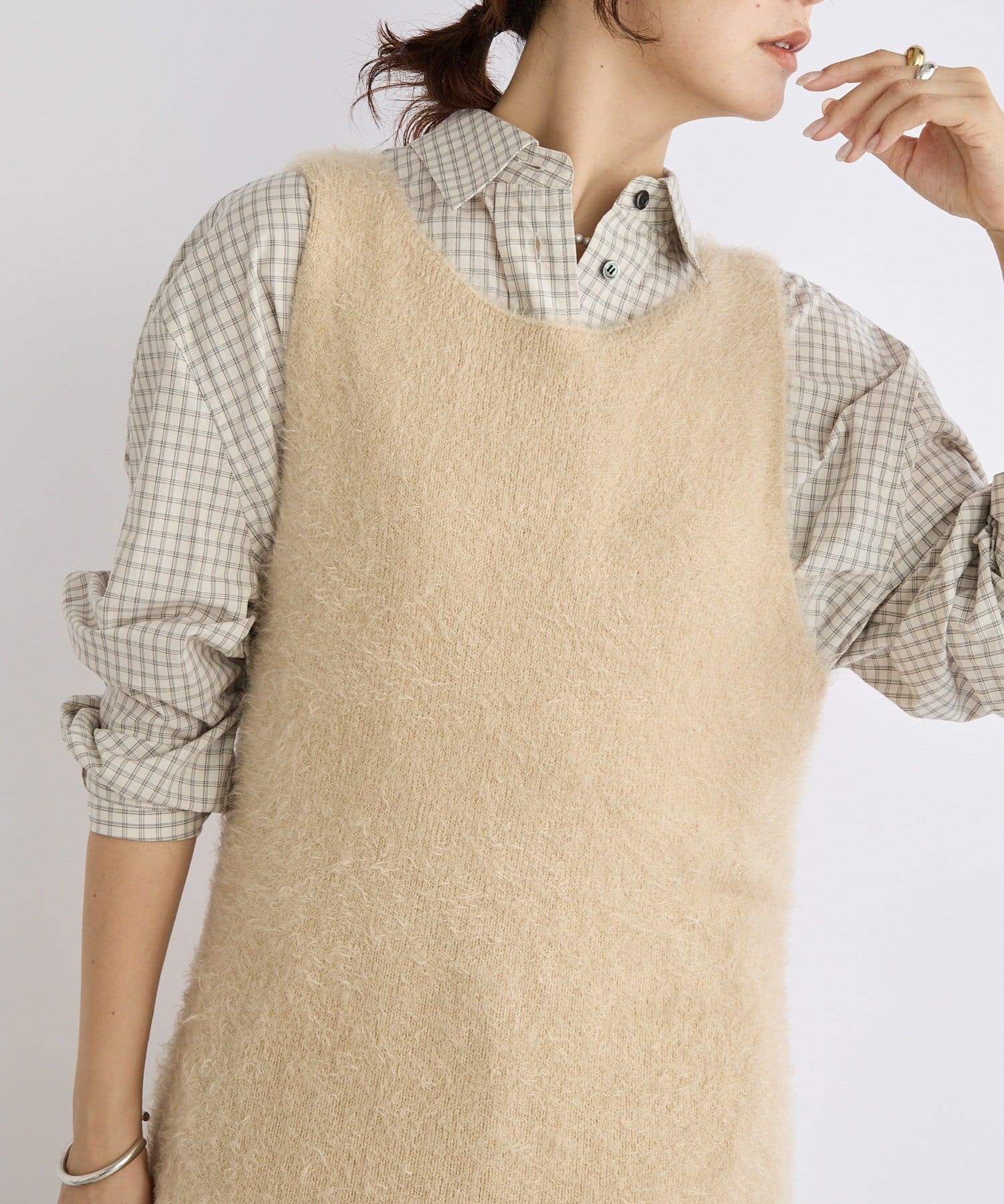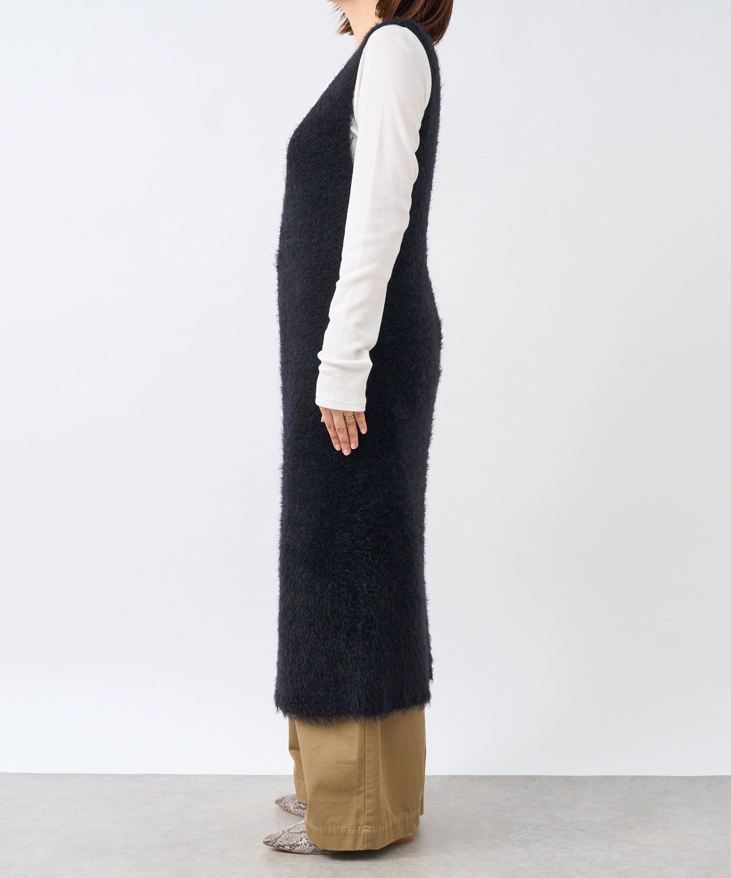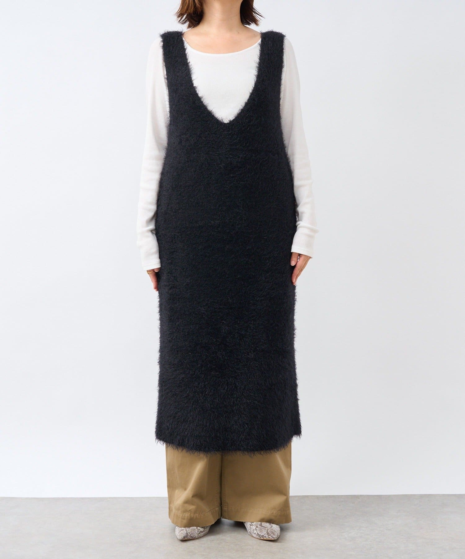 ・キャッチーなフェザーヤーンでコーディネートのポイントになるニットワンピース