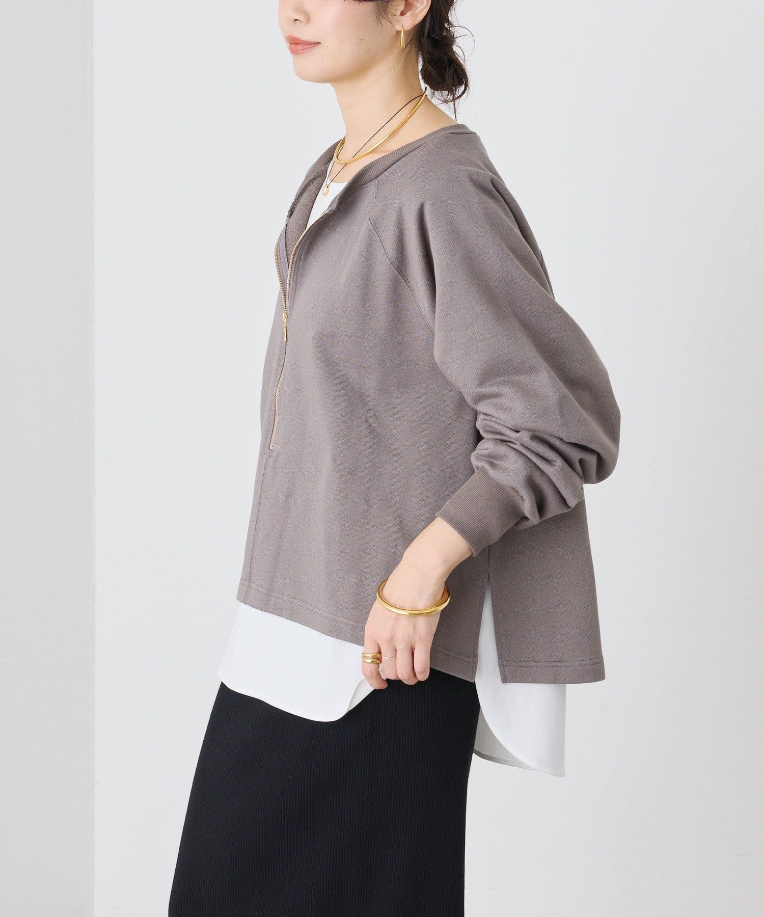 ・お好みの位置までジップを下げて、抜けを作って着ていただくのがおすすめ