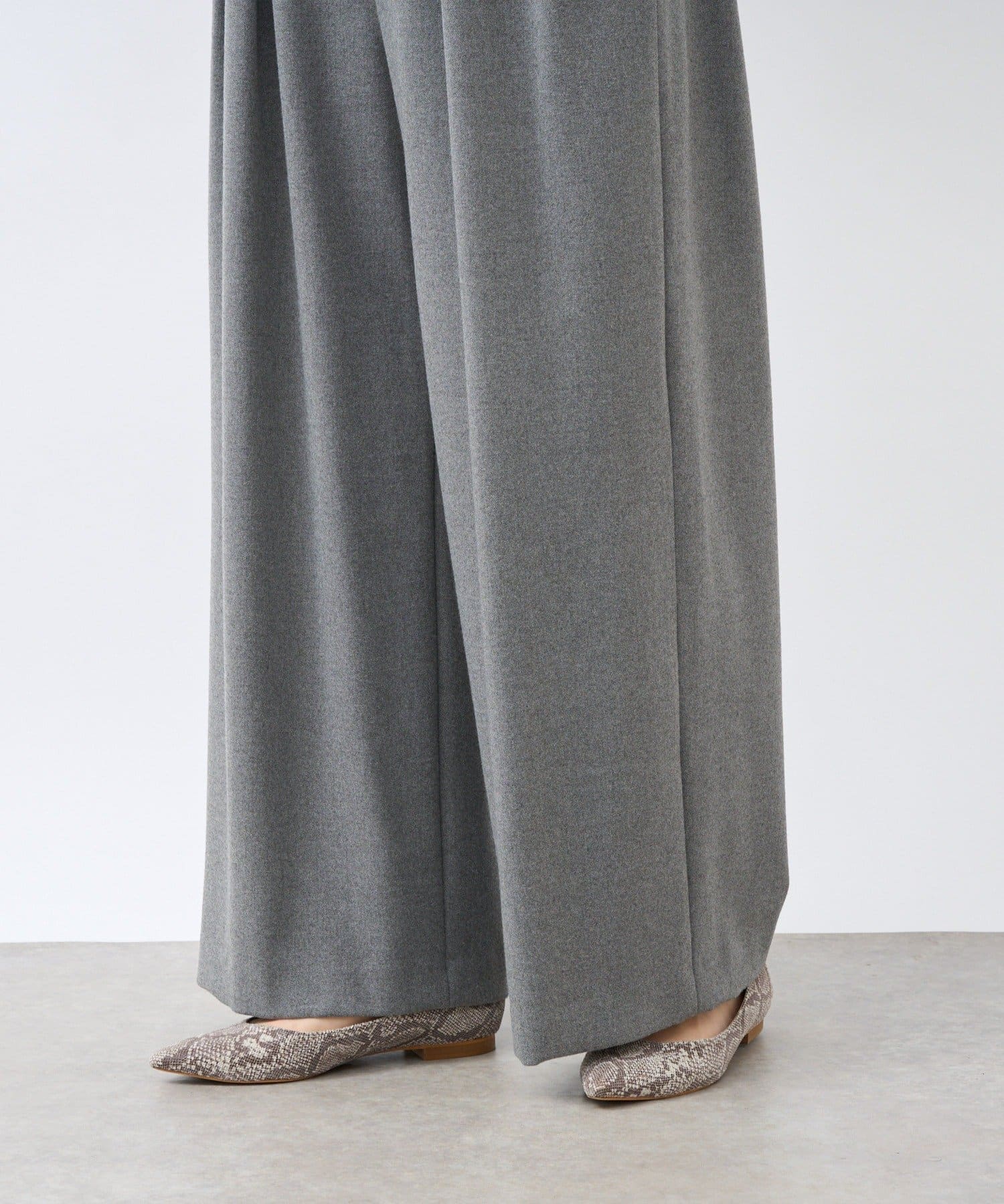 ・タックワイドスラックスのディテールとシルエットを生かして秋冬素材に落とし込んだアイテム