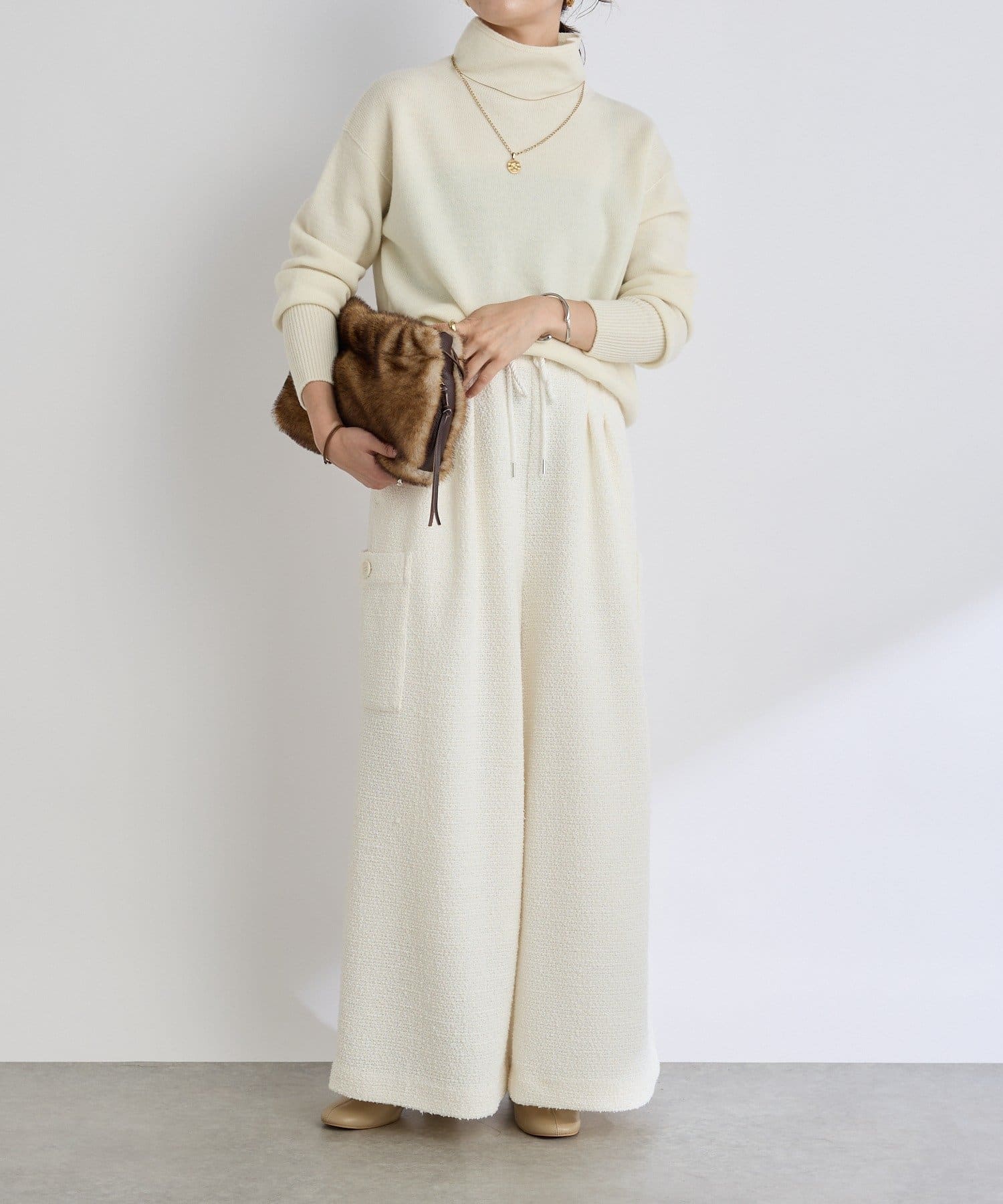 浅めのボトルネックで着る人を選ばず、すっきりとした印象でお召いただけるため、長めのタートルネックは苦手という方にもオススメの一着。