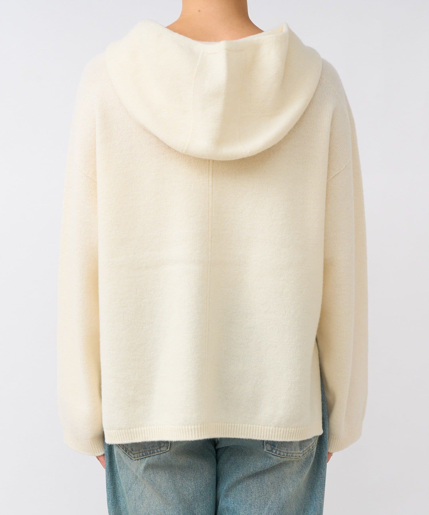 ・ホールガーメント編みで編み上げた立体的なフード付きプルオーバー。
