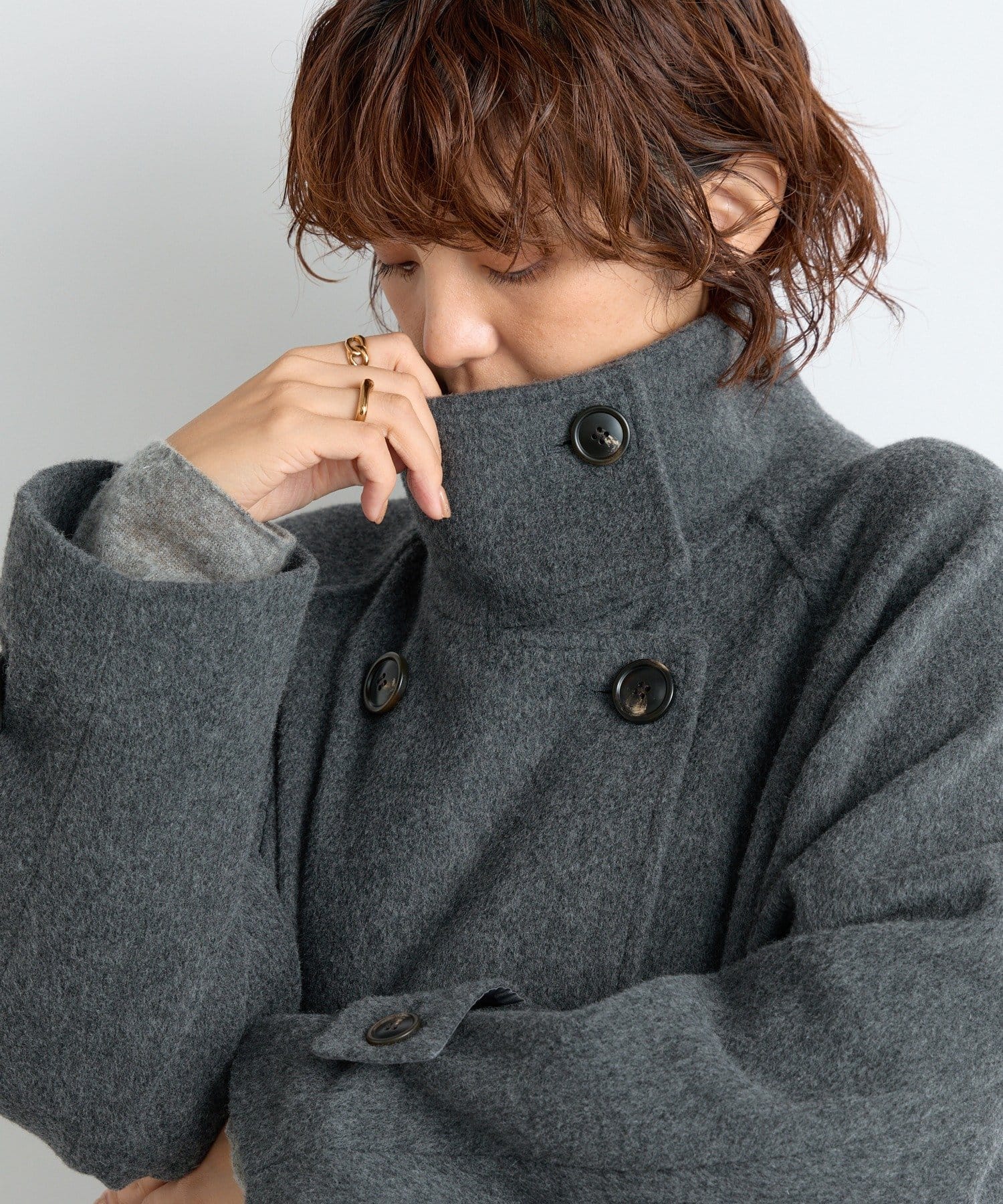 ・スタンドでも、寝かせても決まりのいい衿のデザインがポイントの着映えコート