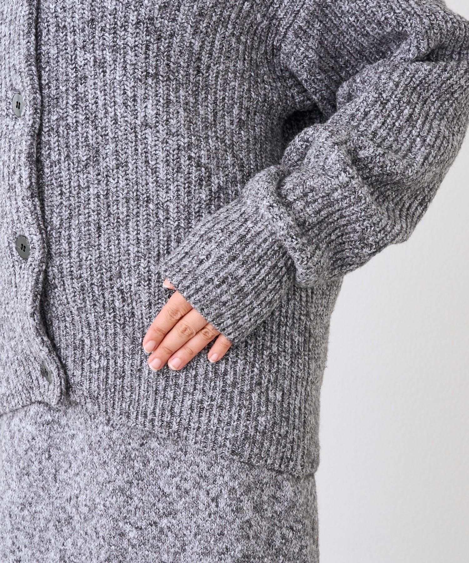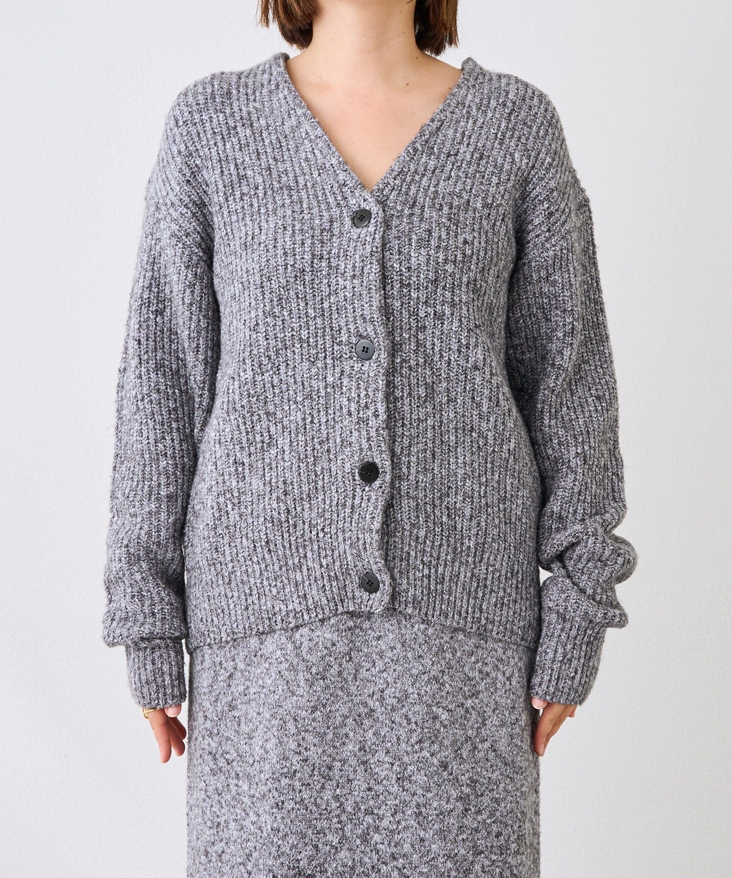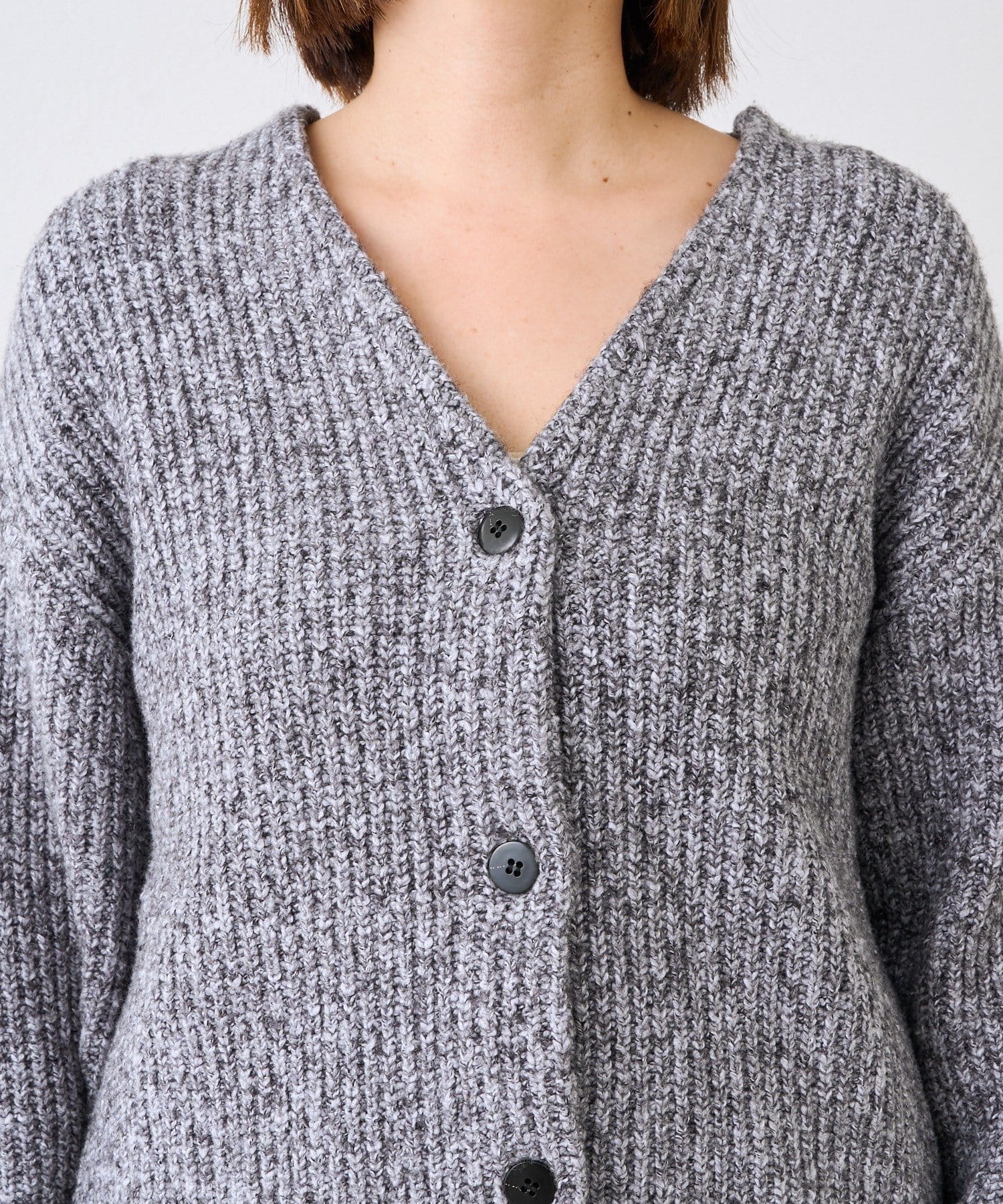 ・片畦の立体感のある編地がキャッチーなカーディガン