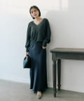 ・落ち感を活かしたバックコクーンシルエットと、デコルテを美しく見せるVネックがポイント。