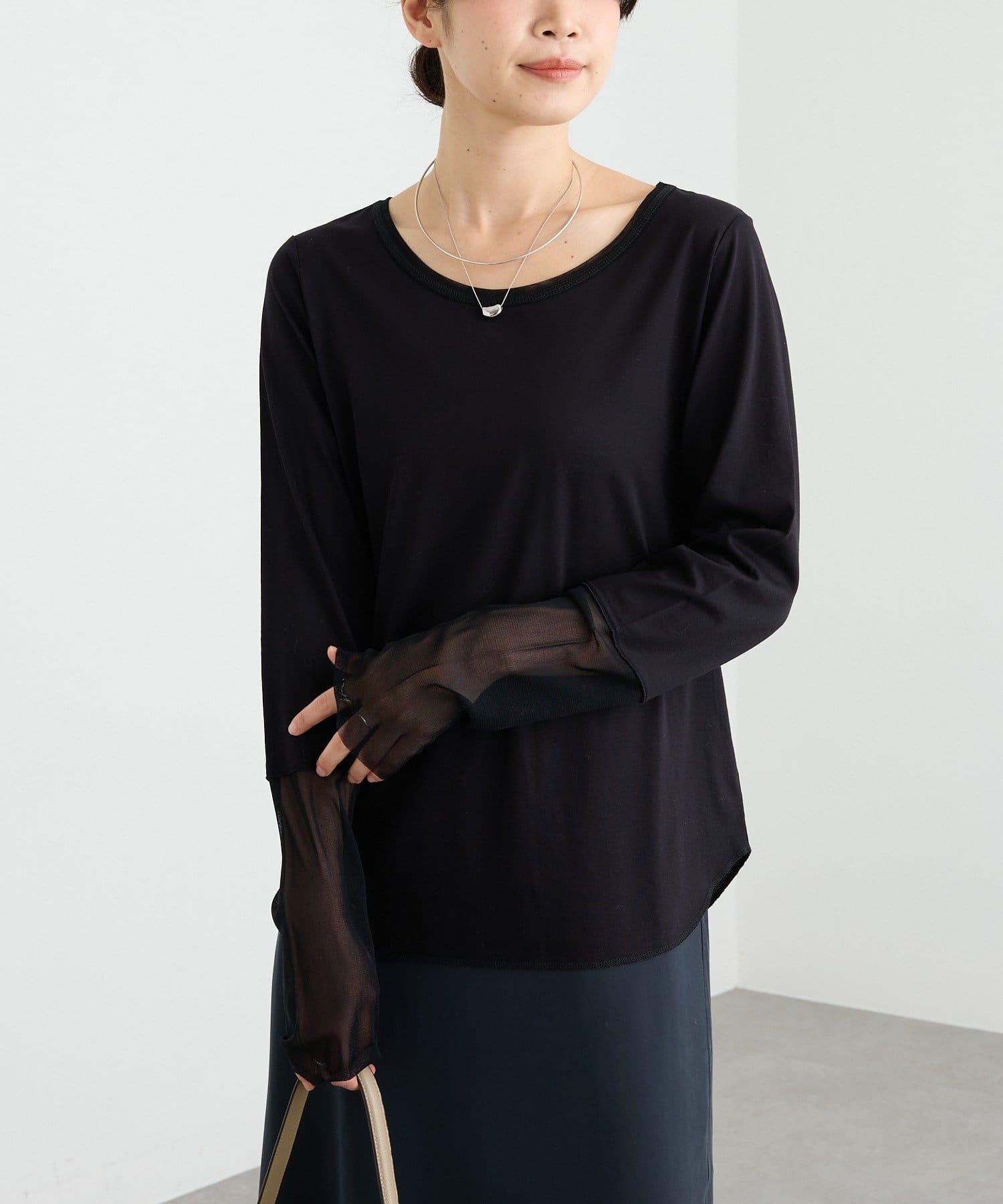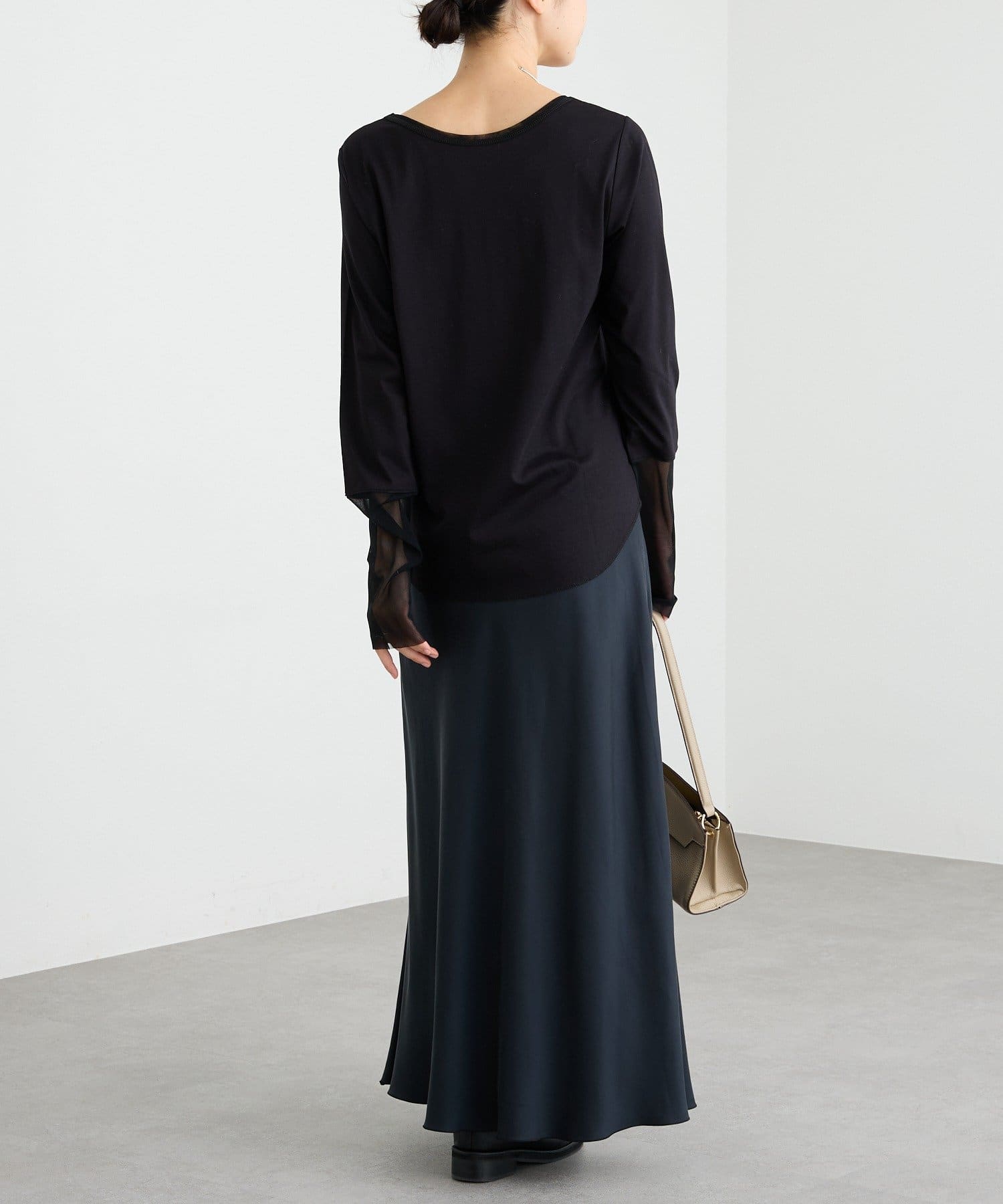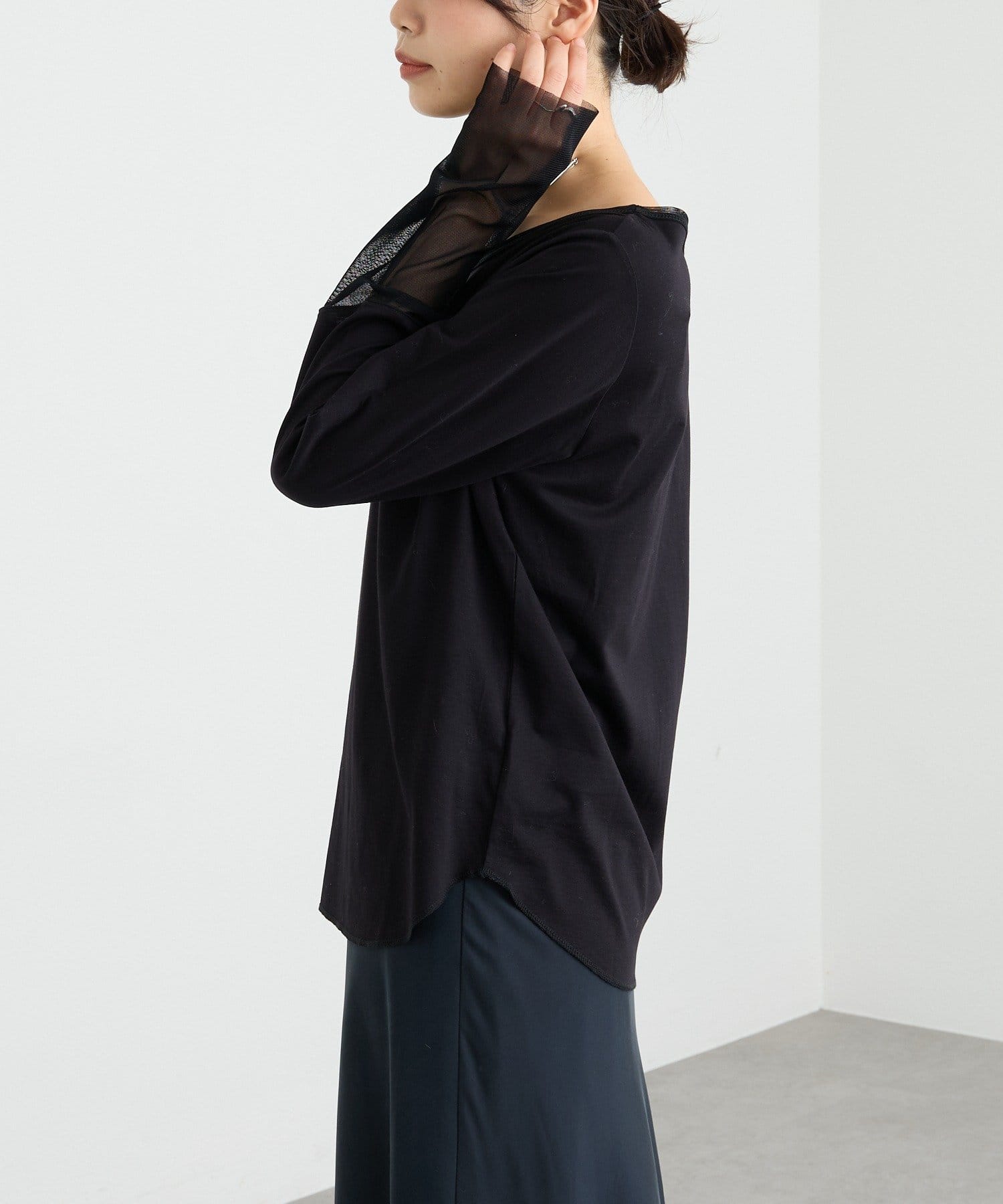 ・繊細なチュールトリムと袖口のチュール切替で様々なアイテムとのレイヤードに重宝するカットソー。