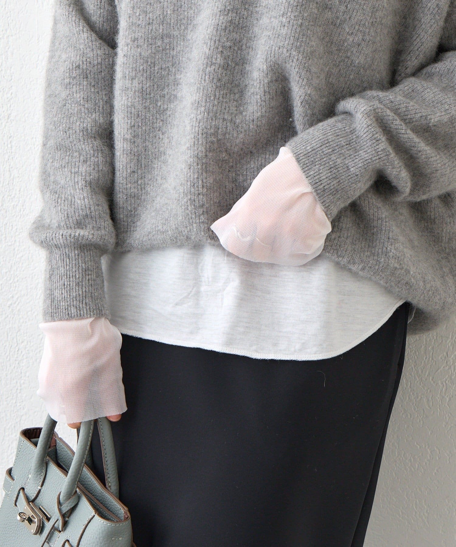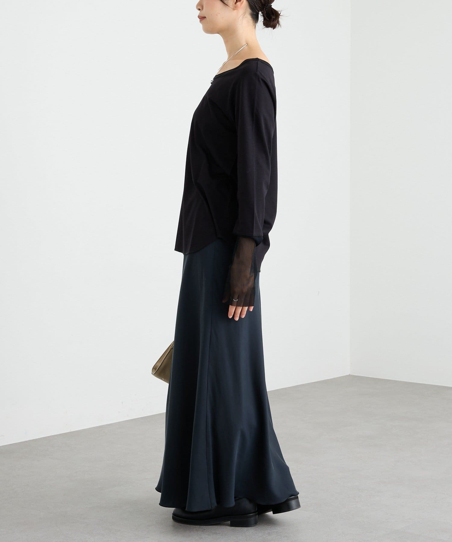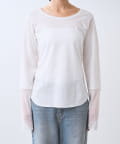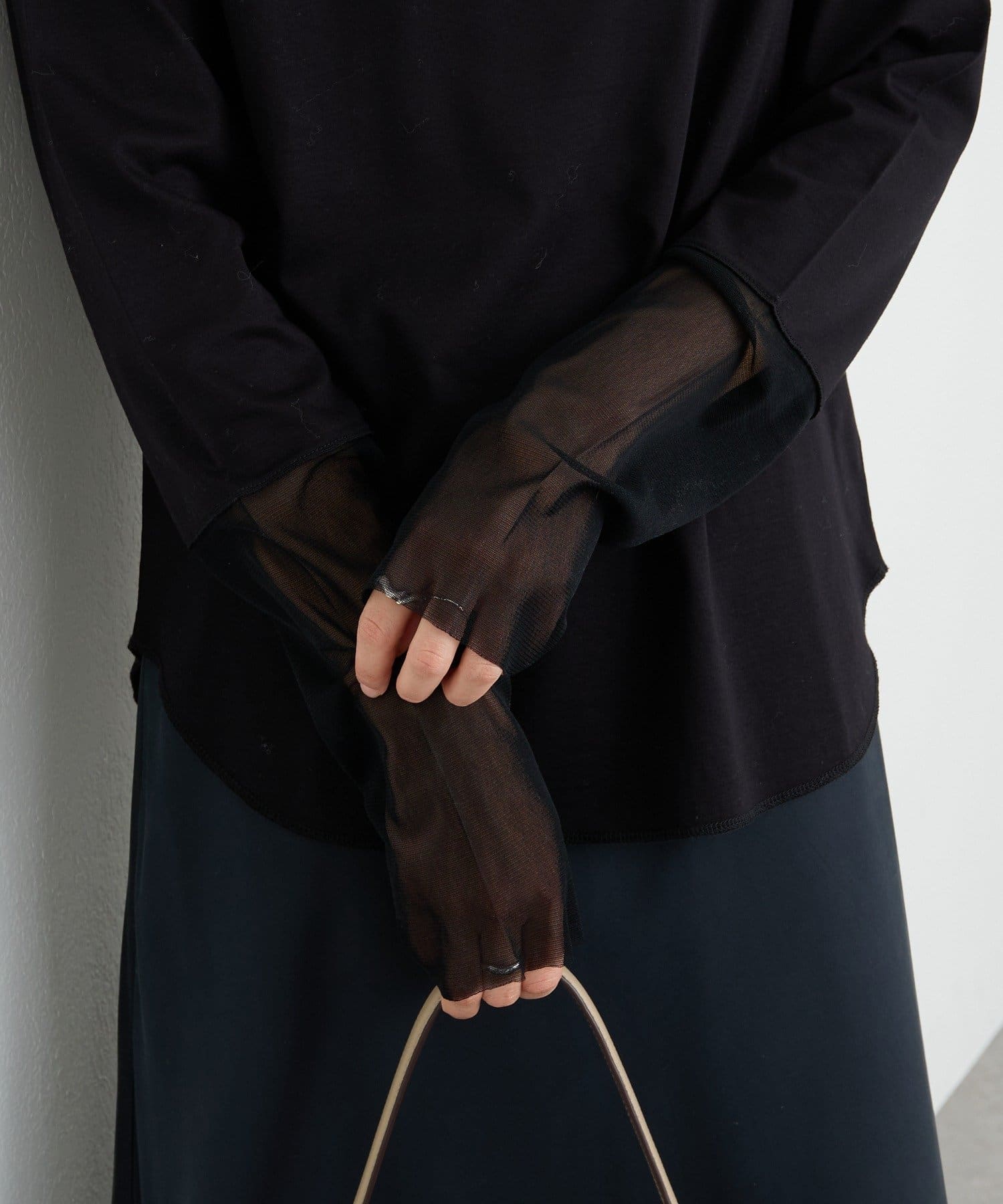 ・繊細なチュールトリムと袖口のチュール切替で様々なアイテムとのレイヤードに重宝するカットソー。