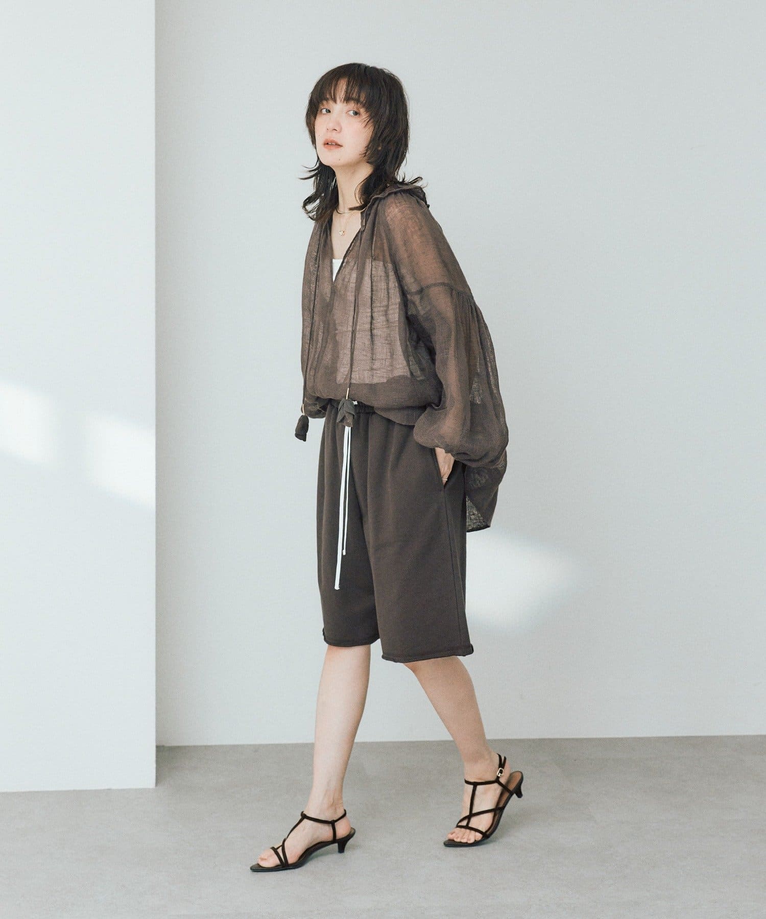 ・裾のロック始末、ウエストのドロストもコーデのポイントに。