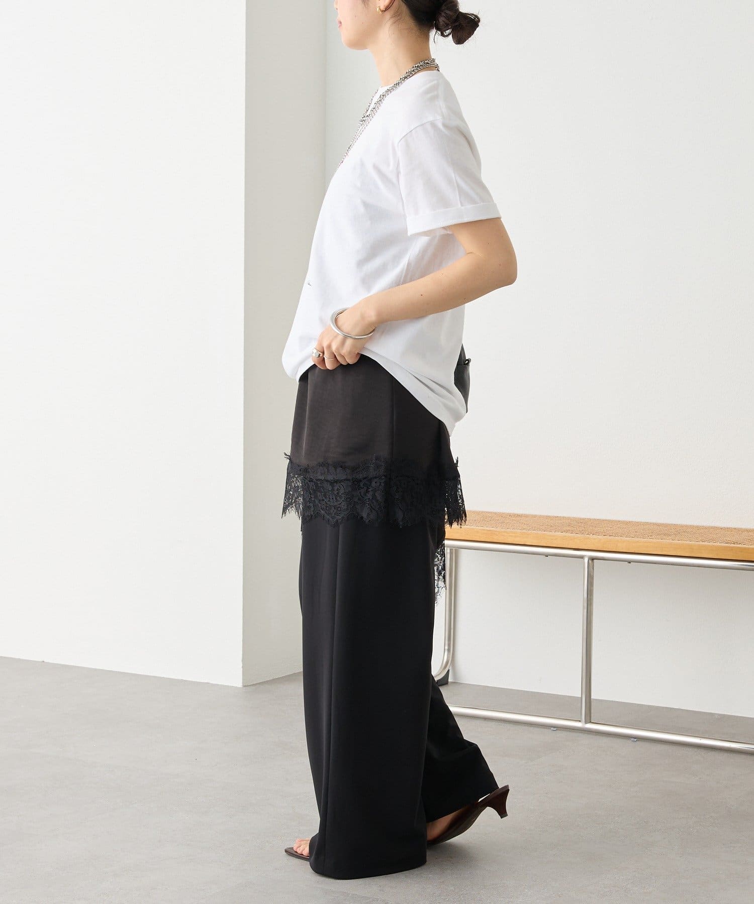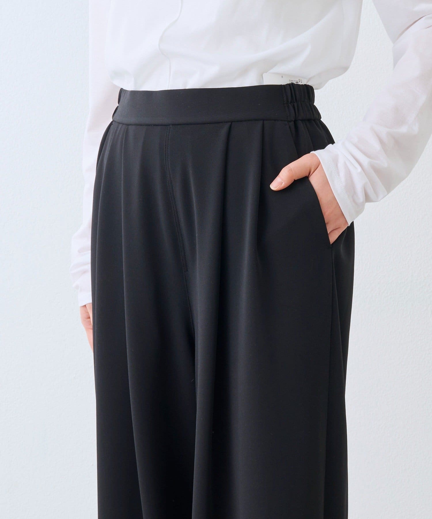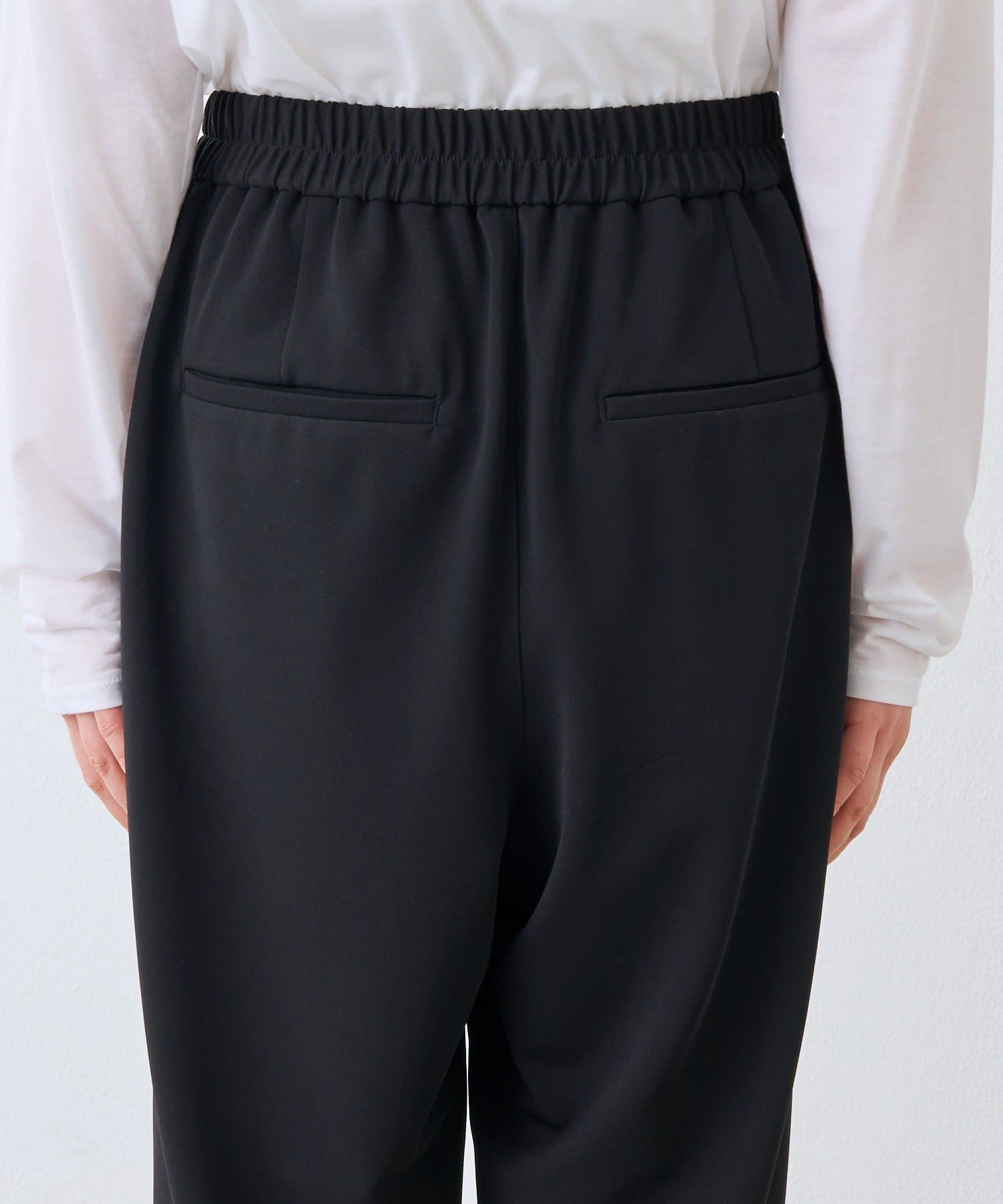 ⇒一番のポイントはウエストのギャザー分量をタックワイドスラックスより少なくしています。