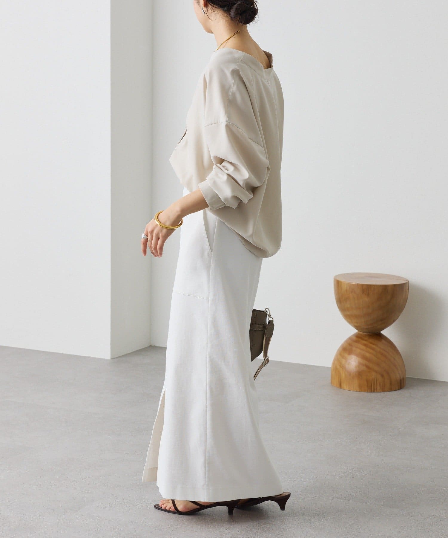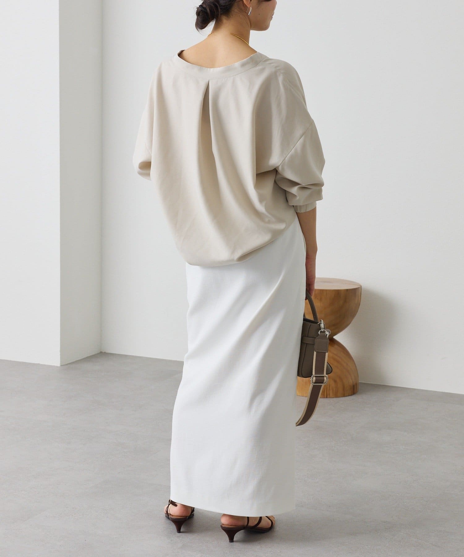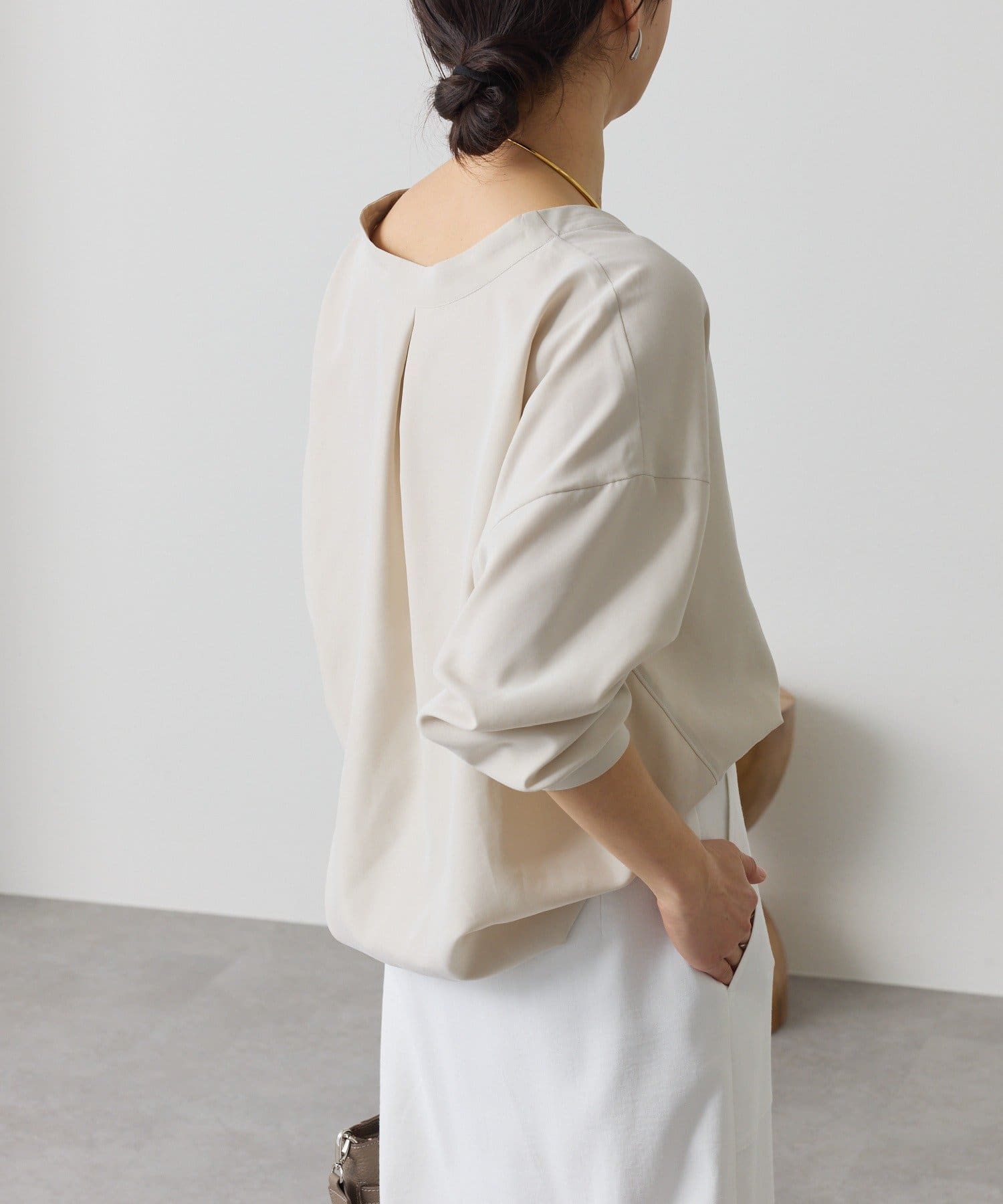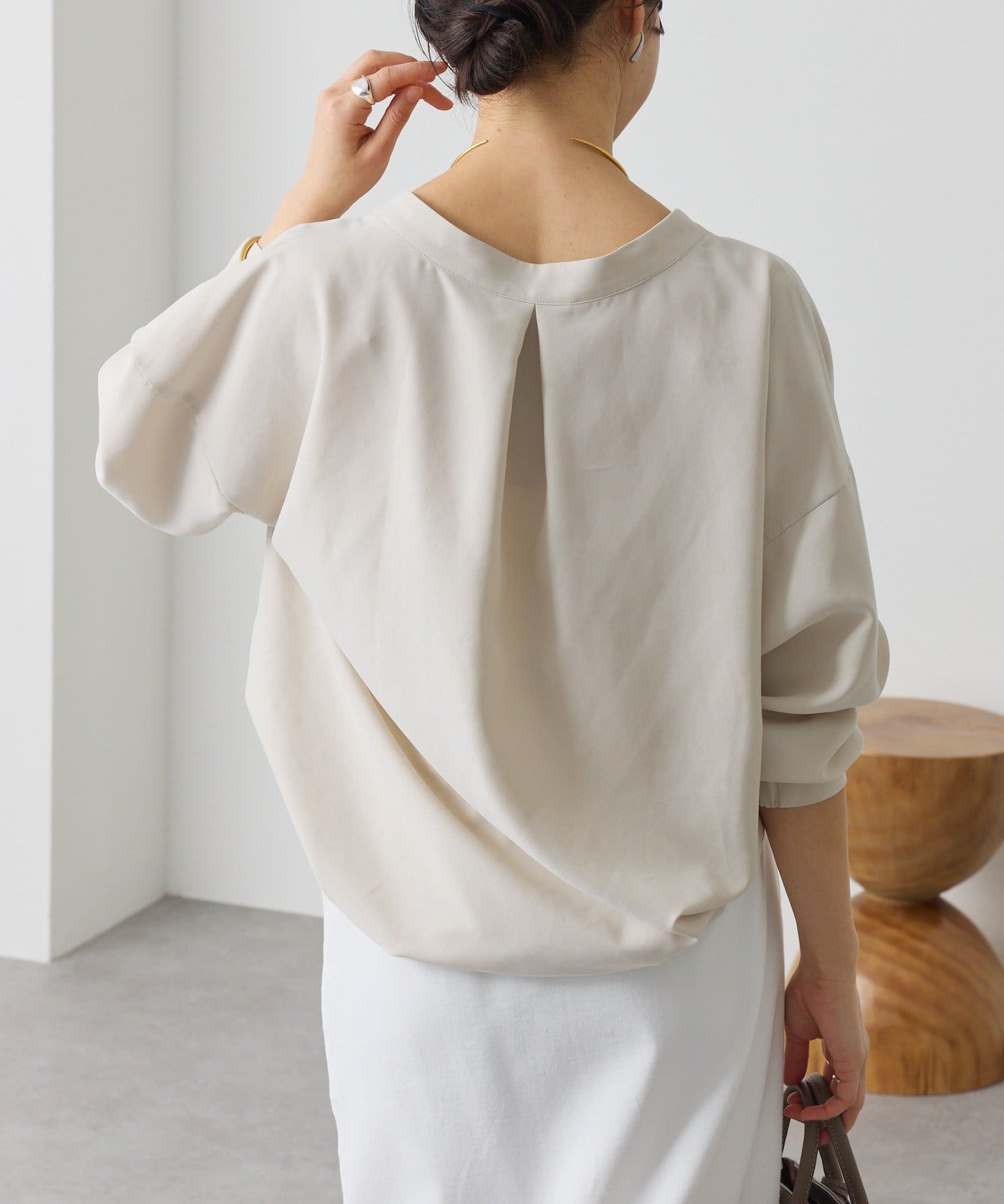 ・立体的なバックフォルムと素材のドレープ感が女性らしく、柔らかな印象でお召しいただけます。