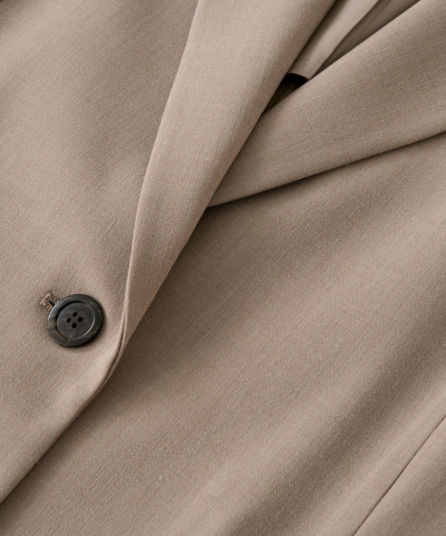 ・ラペルにもエッジを効かせたトレンドのデザインながら、気軽に羽織れる軽量な素材感とのバランスが魅力的。