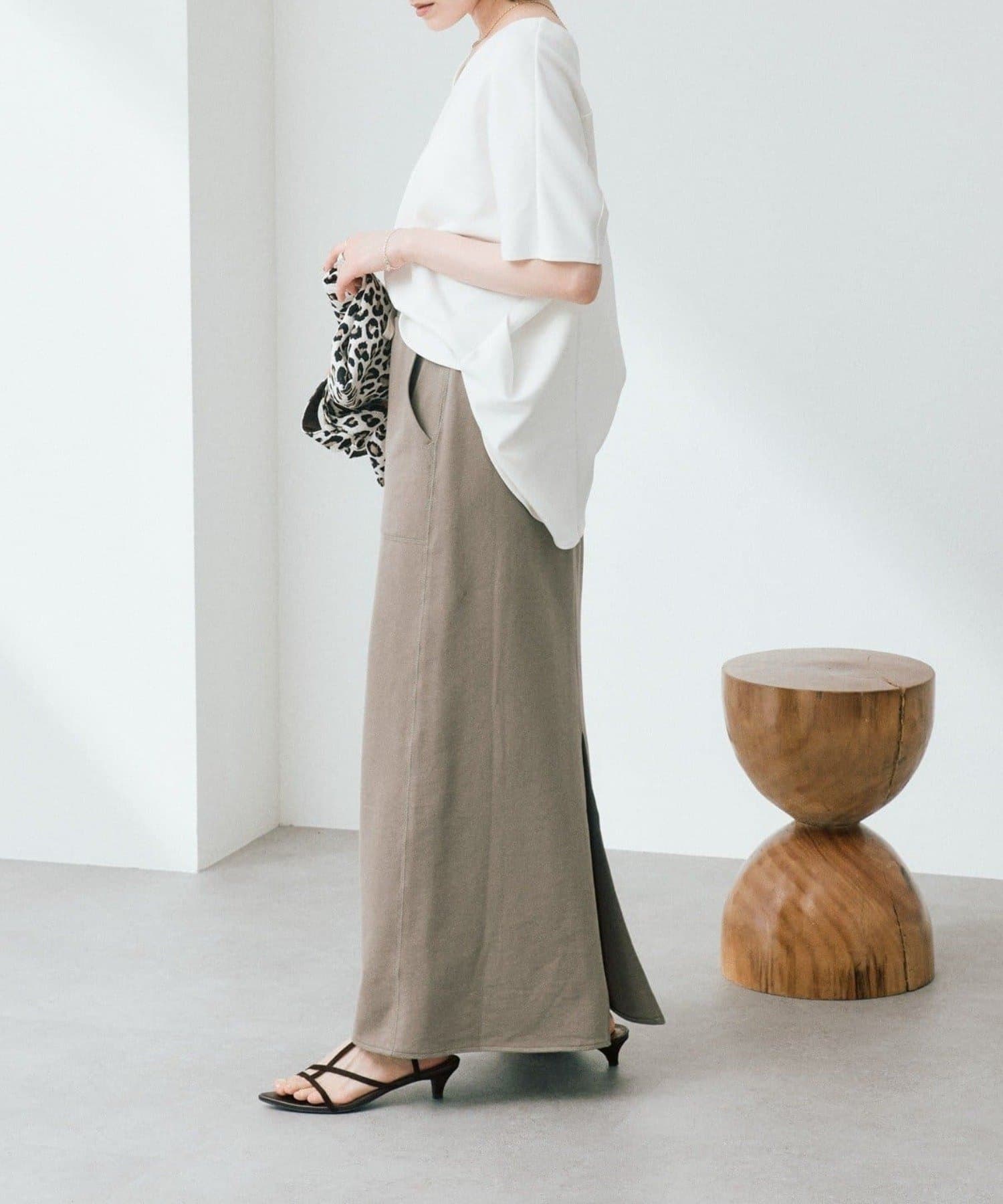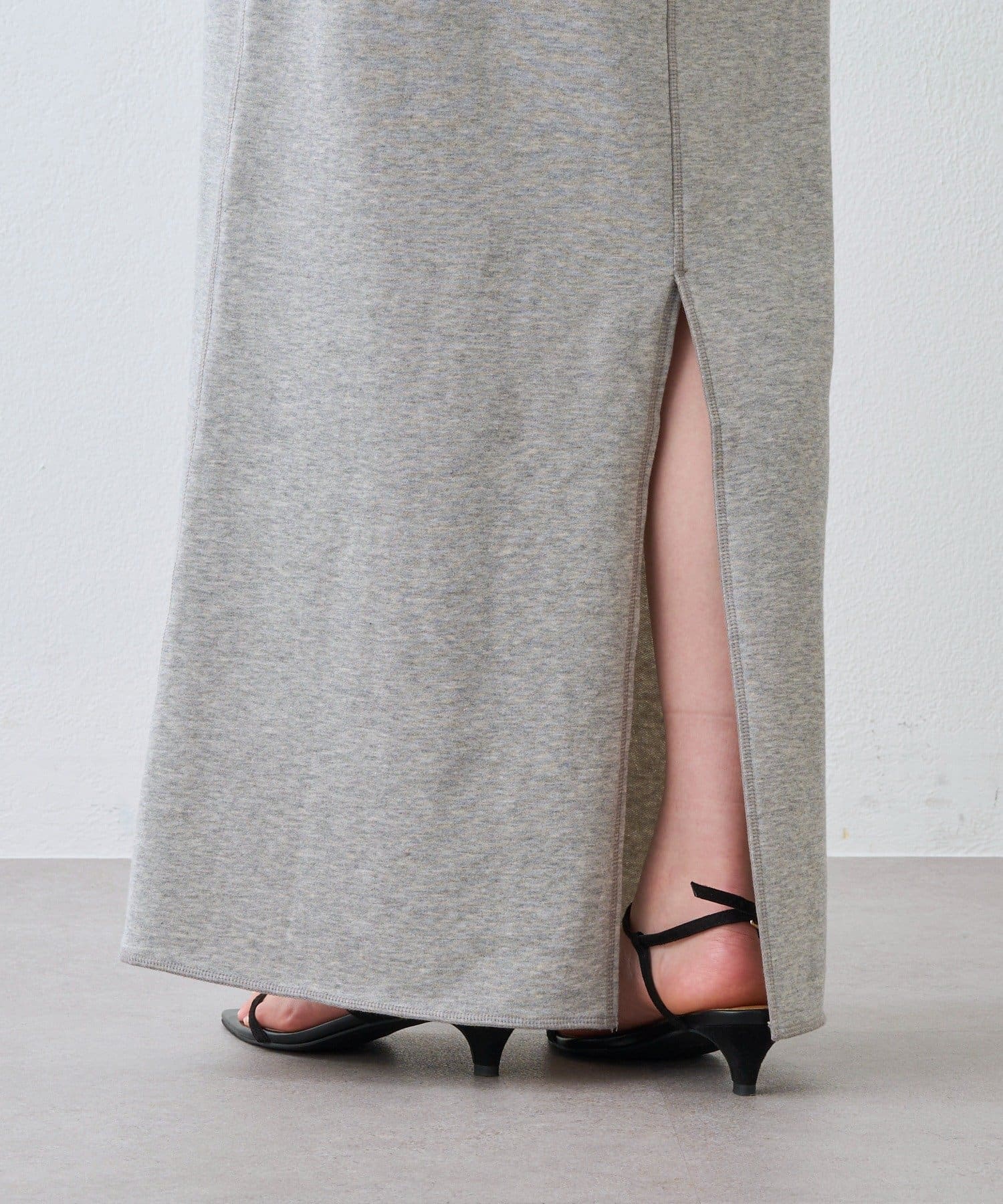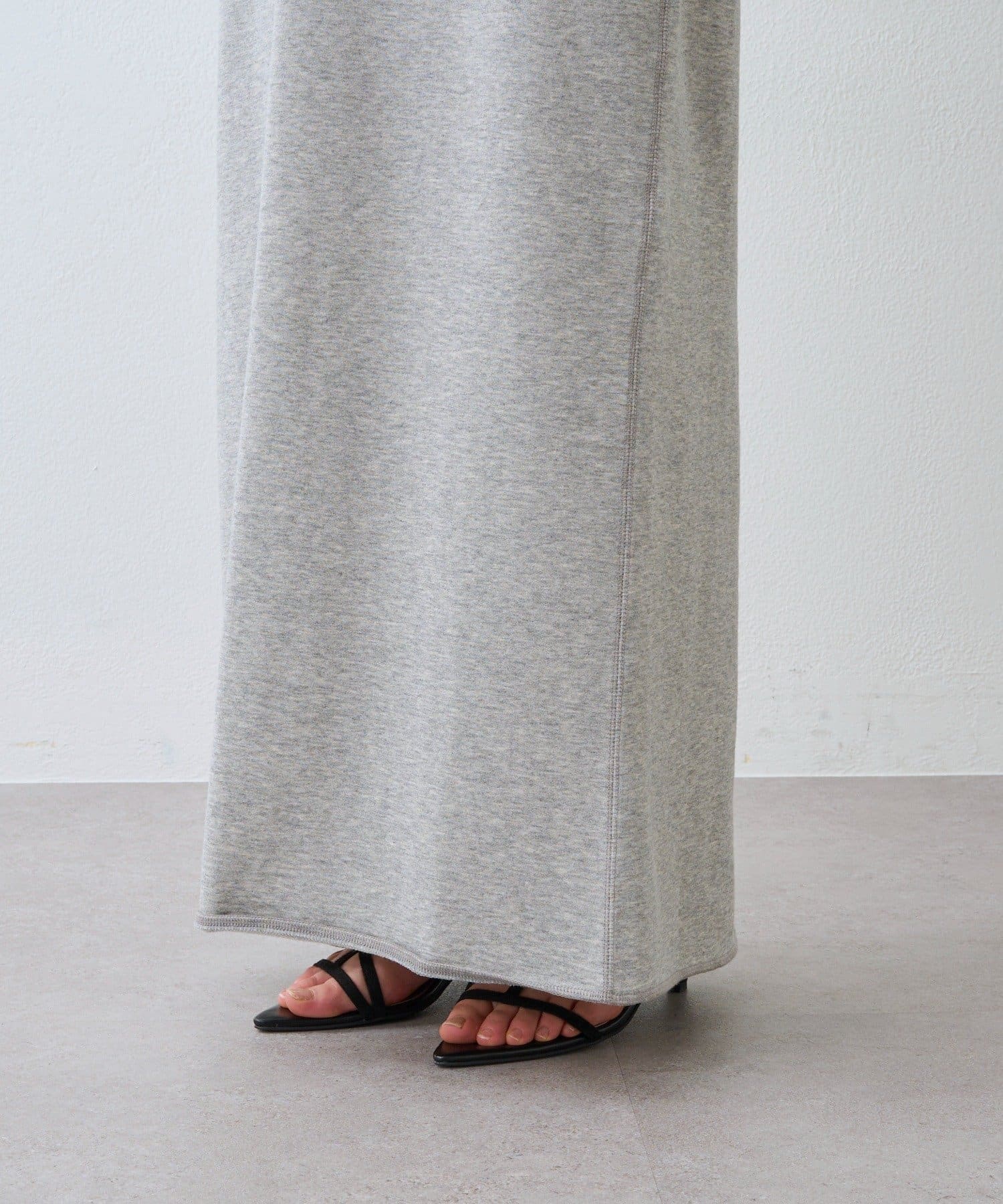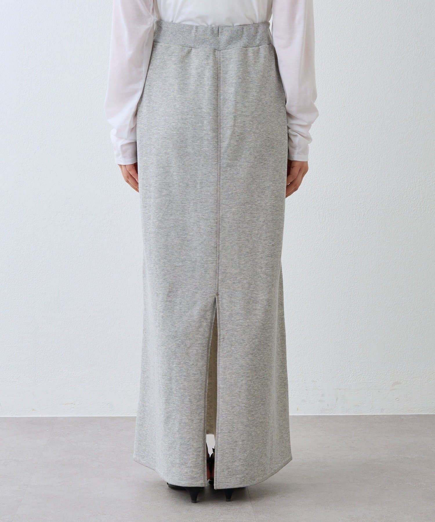 ・落ち感のある薄手裏毛を使用し、ストンとした台形シルエットを表現したスエットスカート。