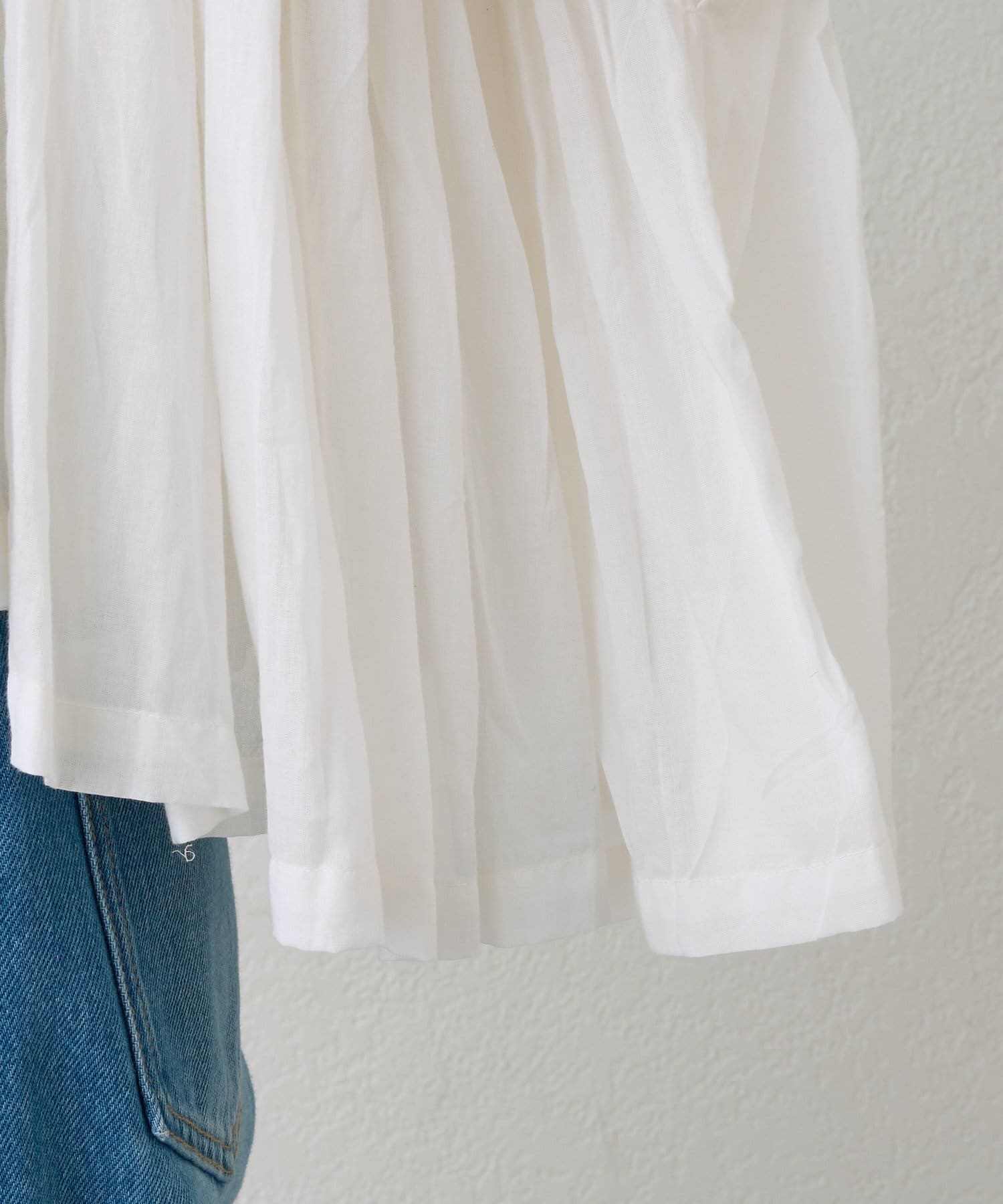 • 胸元の切り替え部分から袖下までギャザーが入ったデザイン