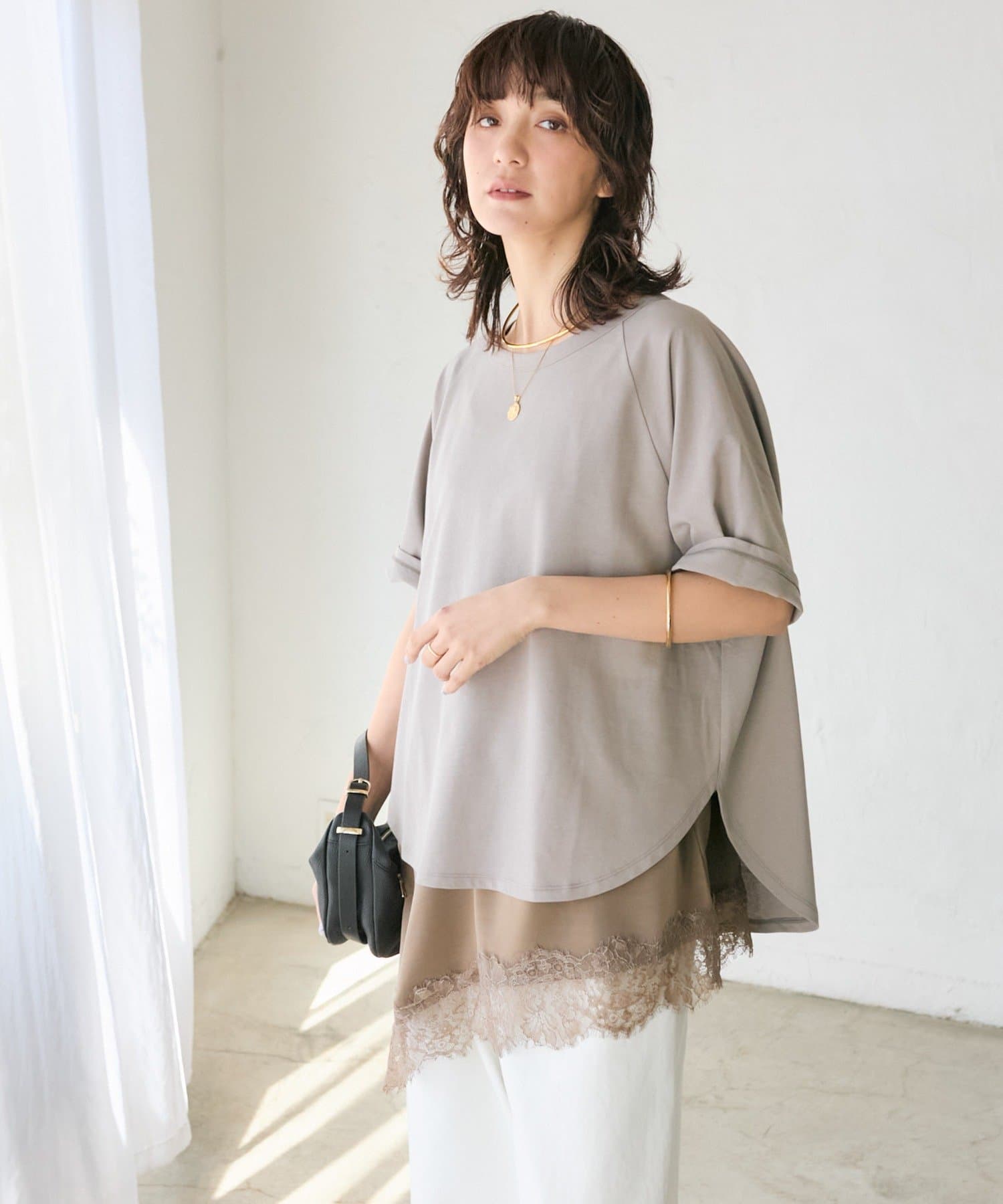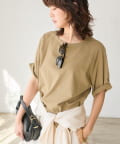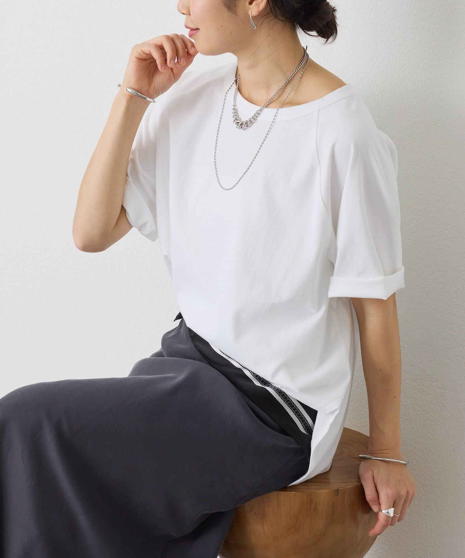 ・肘が隠れる5分袖、ヒップが隠せて抜け感も出せるラウンドヘムのデザインで大人の悩みをしっかりカバー。