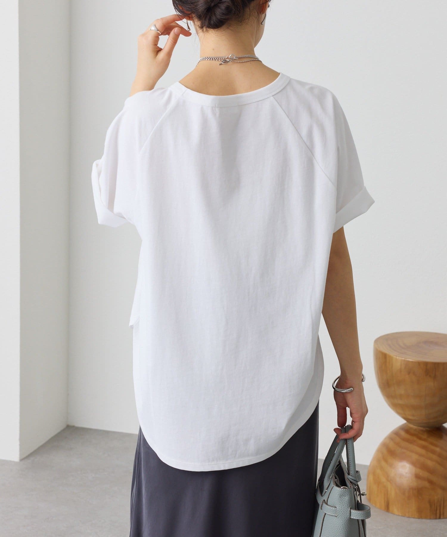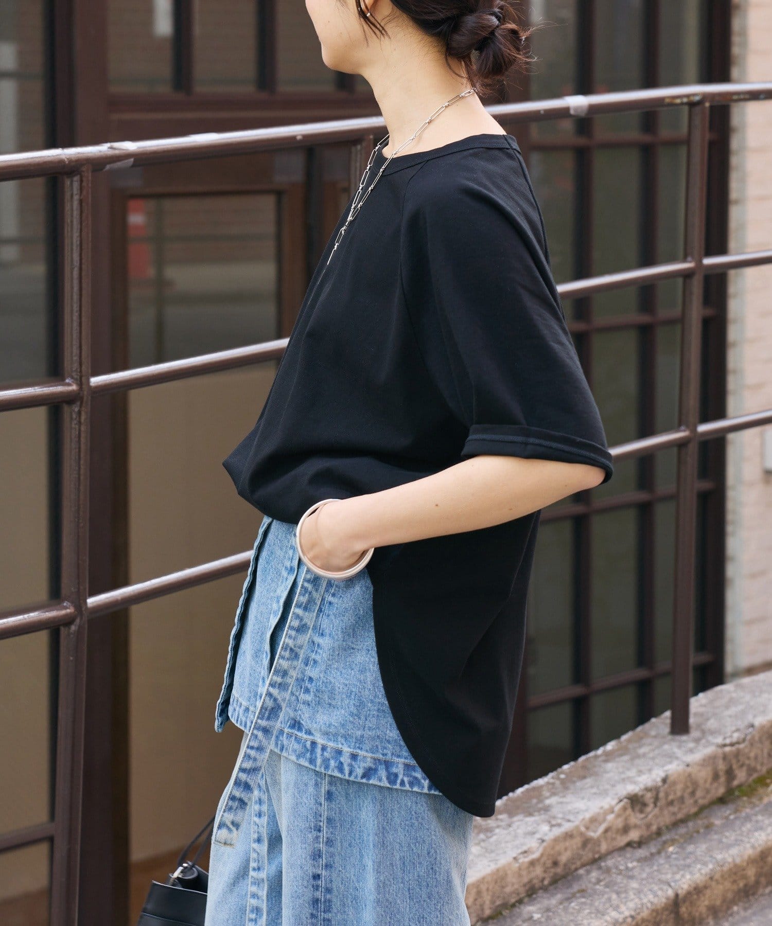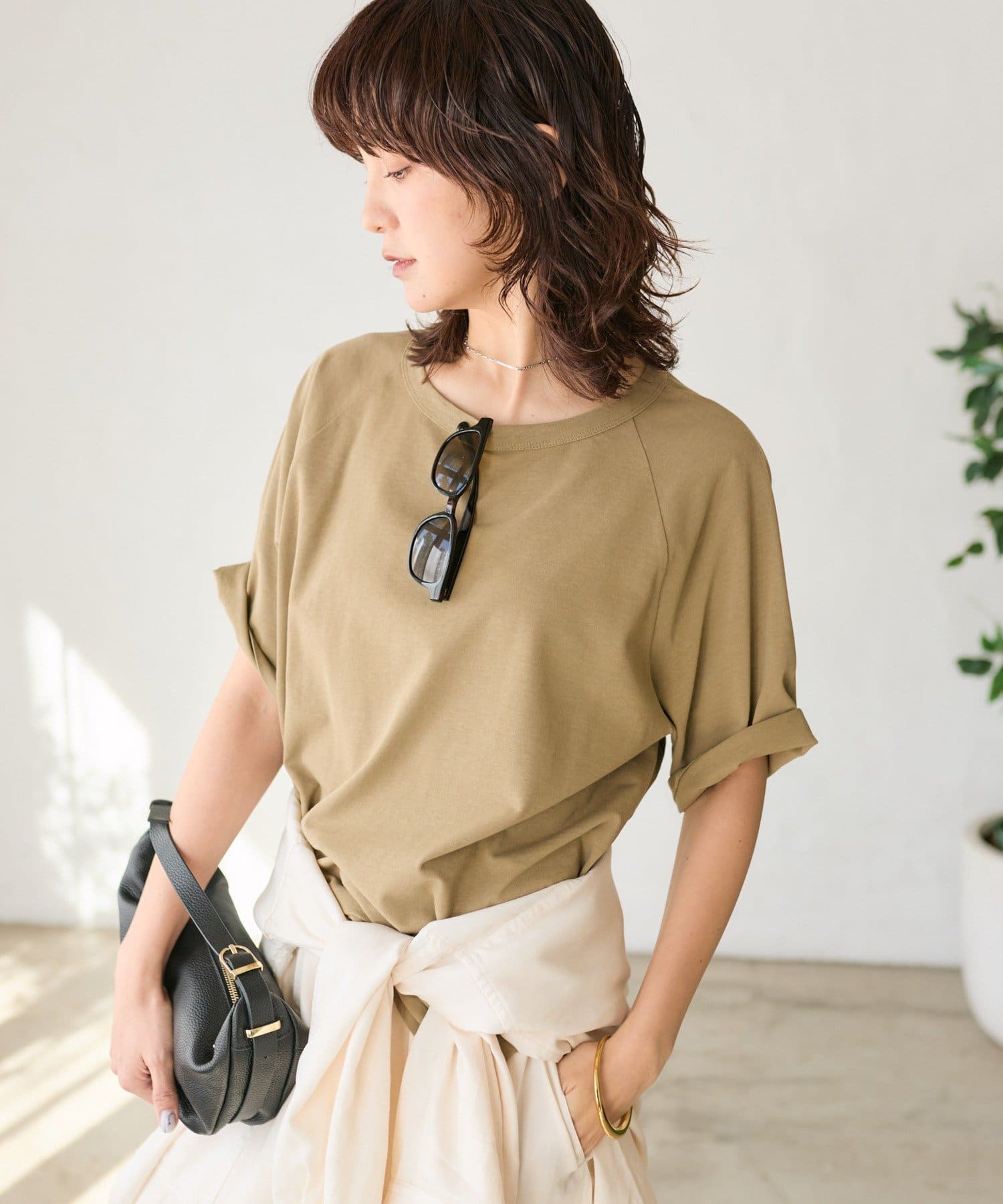・ラグランスリーブで肩まわりのなじみが良く、オーバーサイズなのにスッキリ見える大人の無地Teeです。