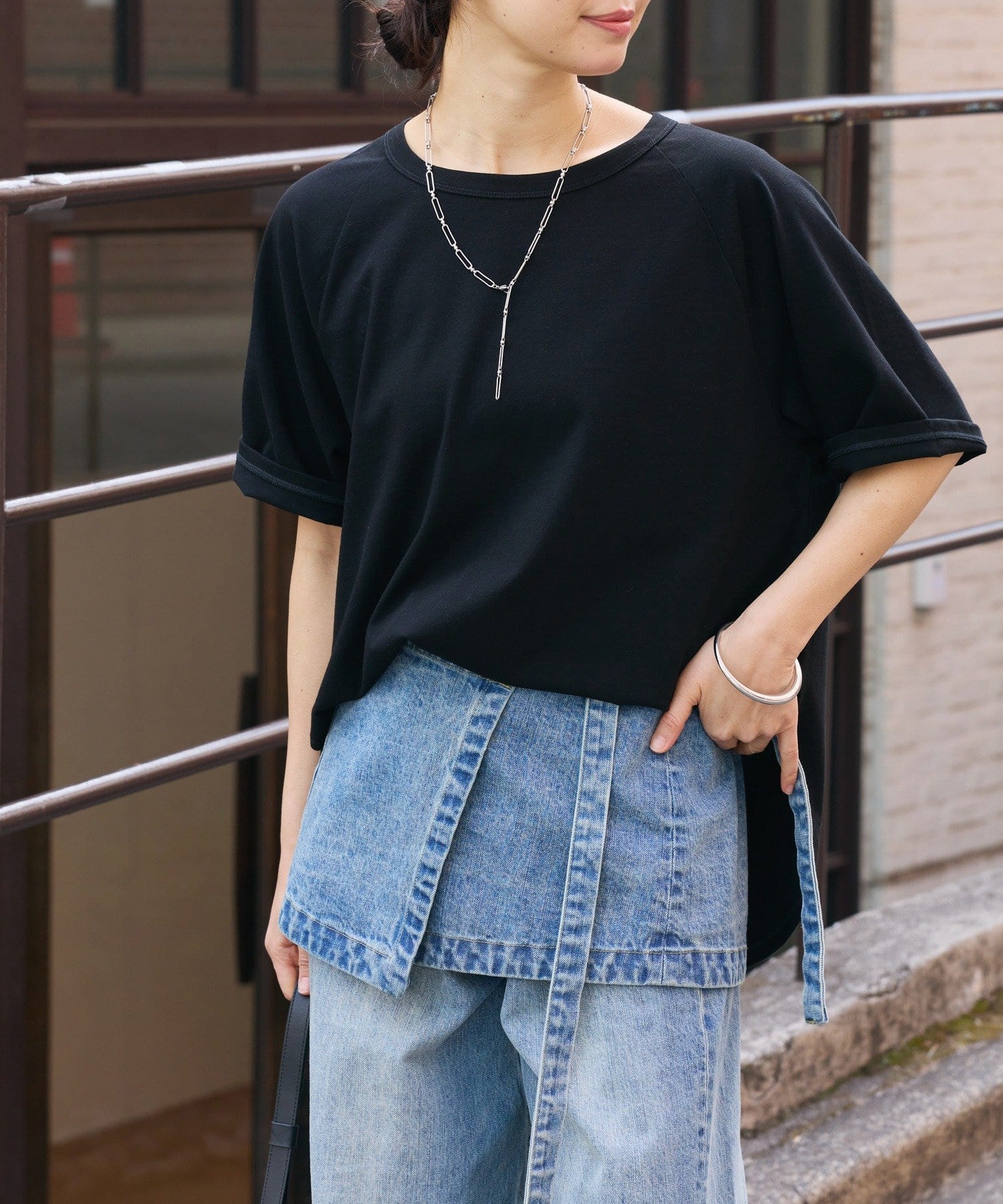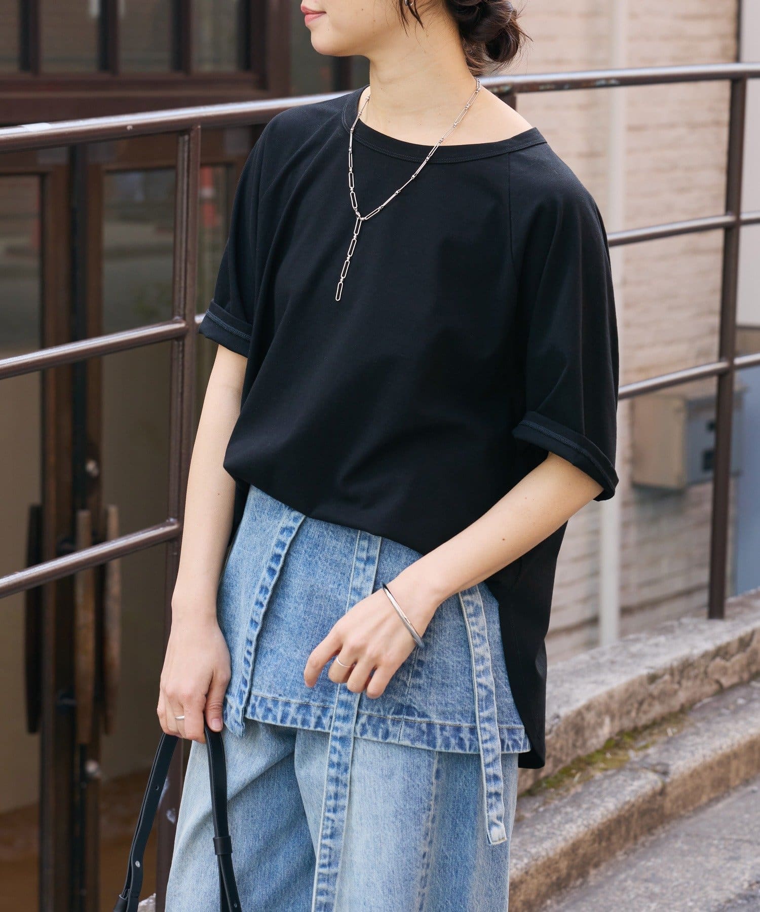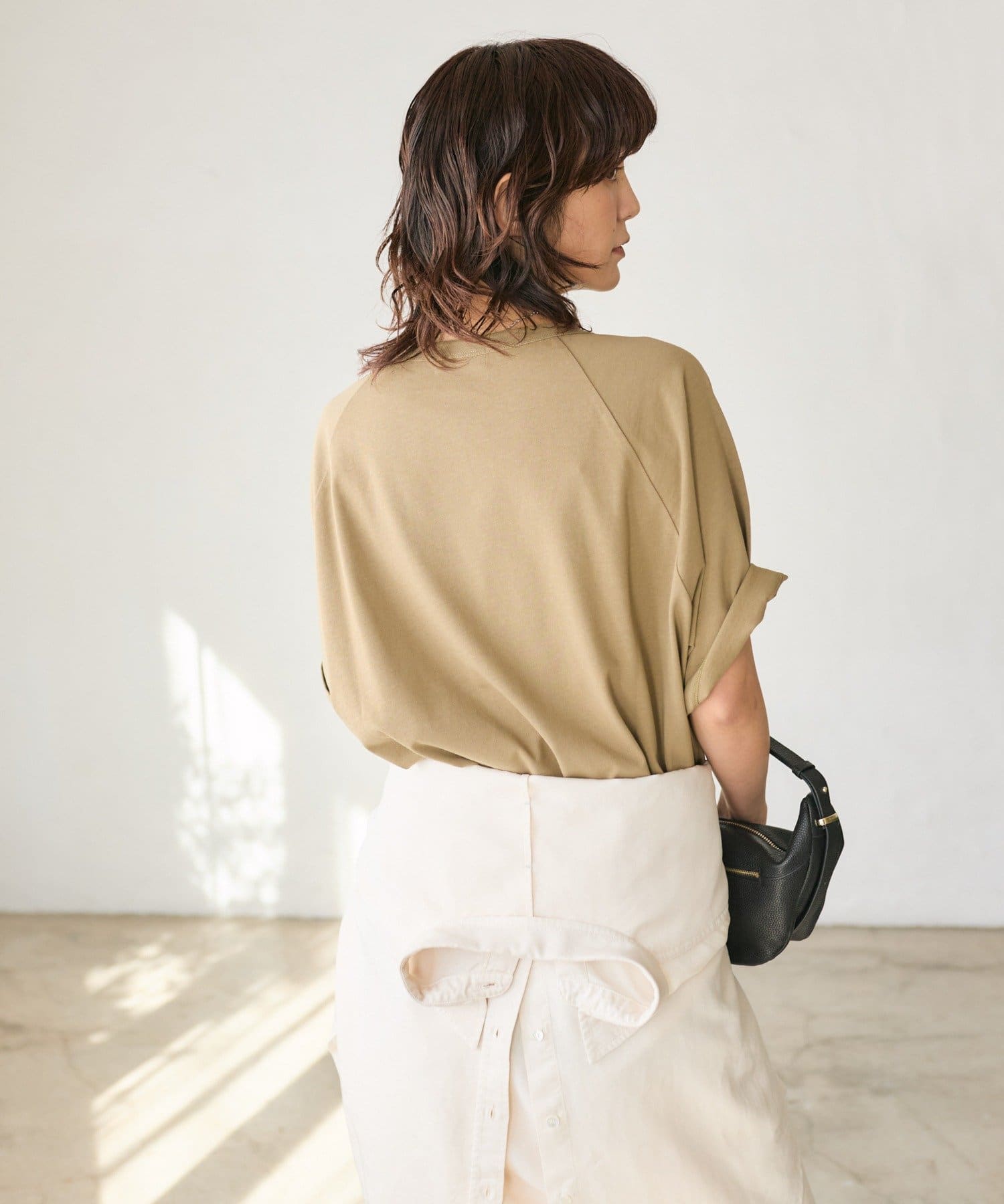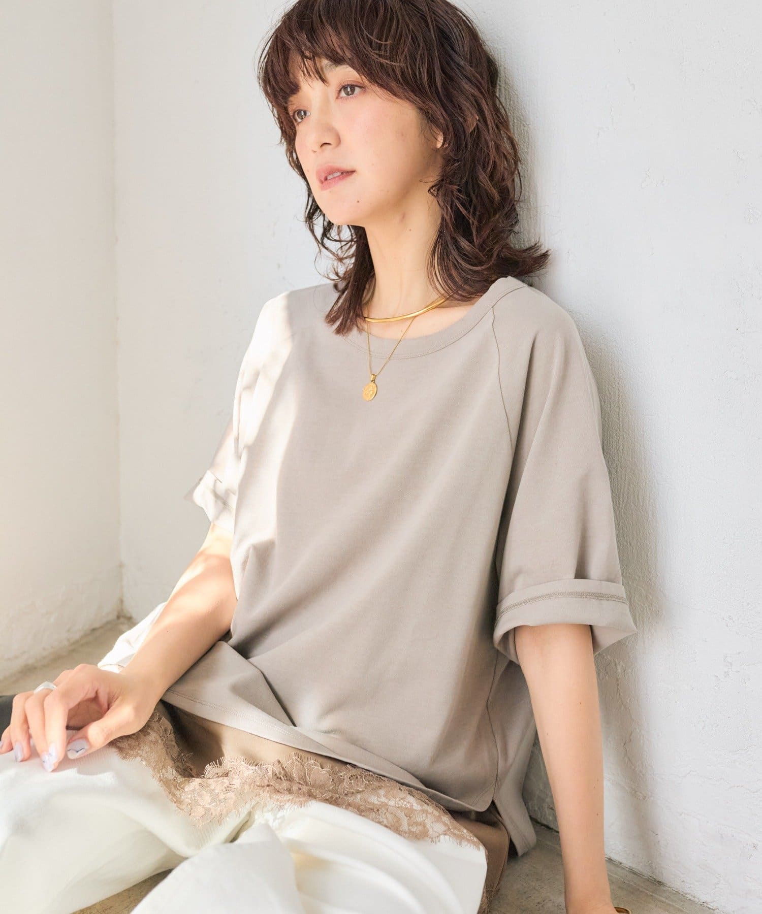 ・ラグランスリーブで肩まわりのなじみが良く、オーバーサイズなのにスッキリ見える大人の無地Teeです。