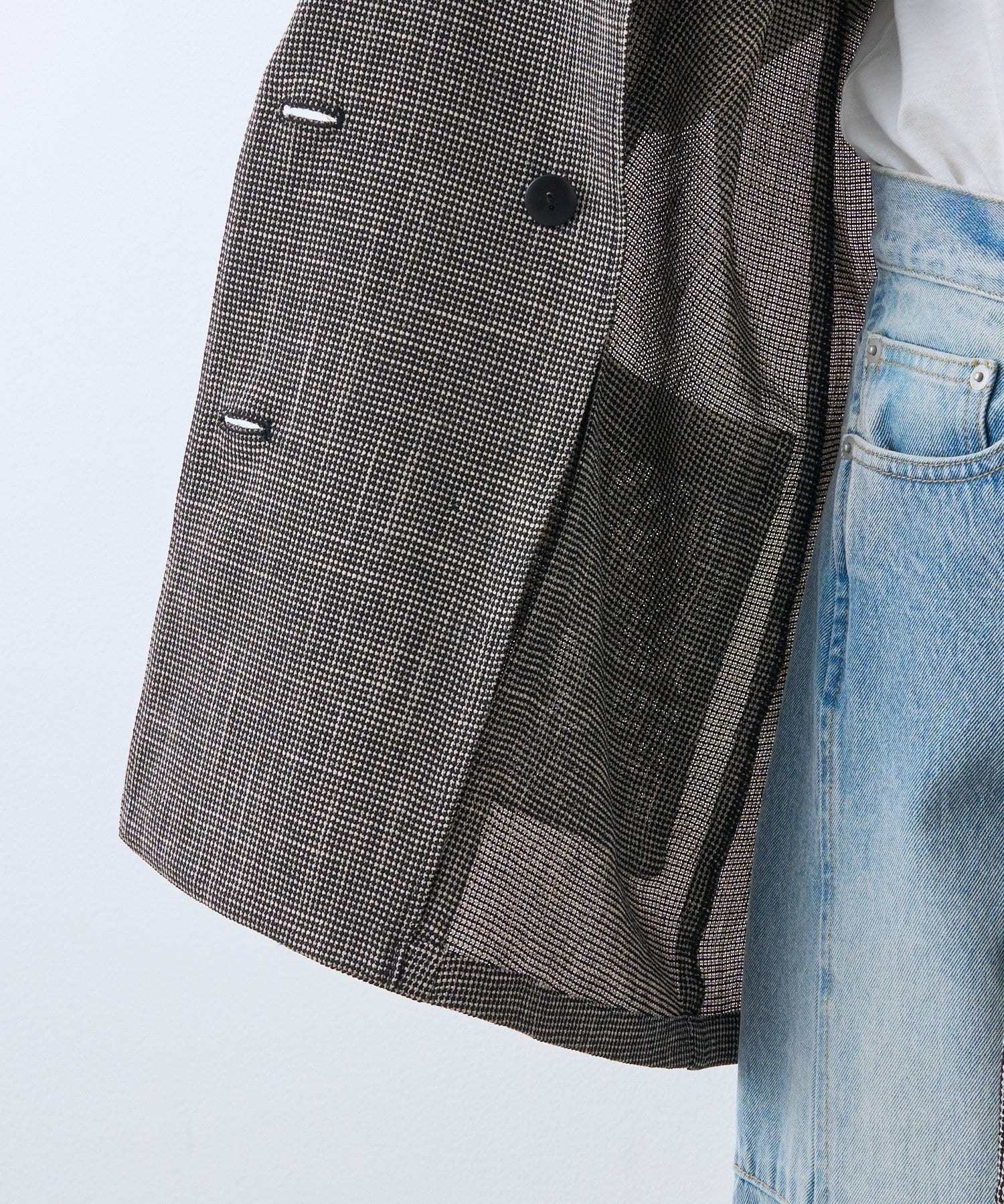 ・辛口な格子柄が洗練されたムードを演出してくれるメッシュ織りのサマージャケット。