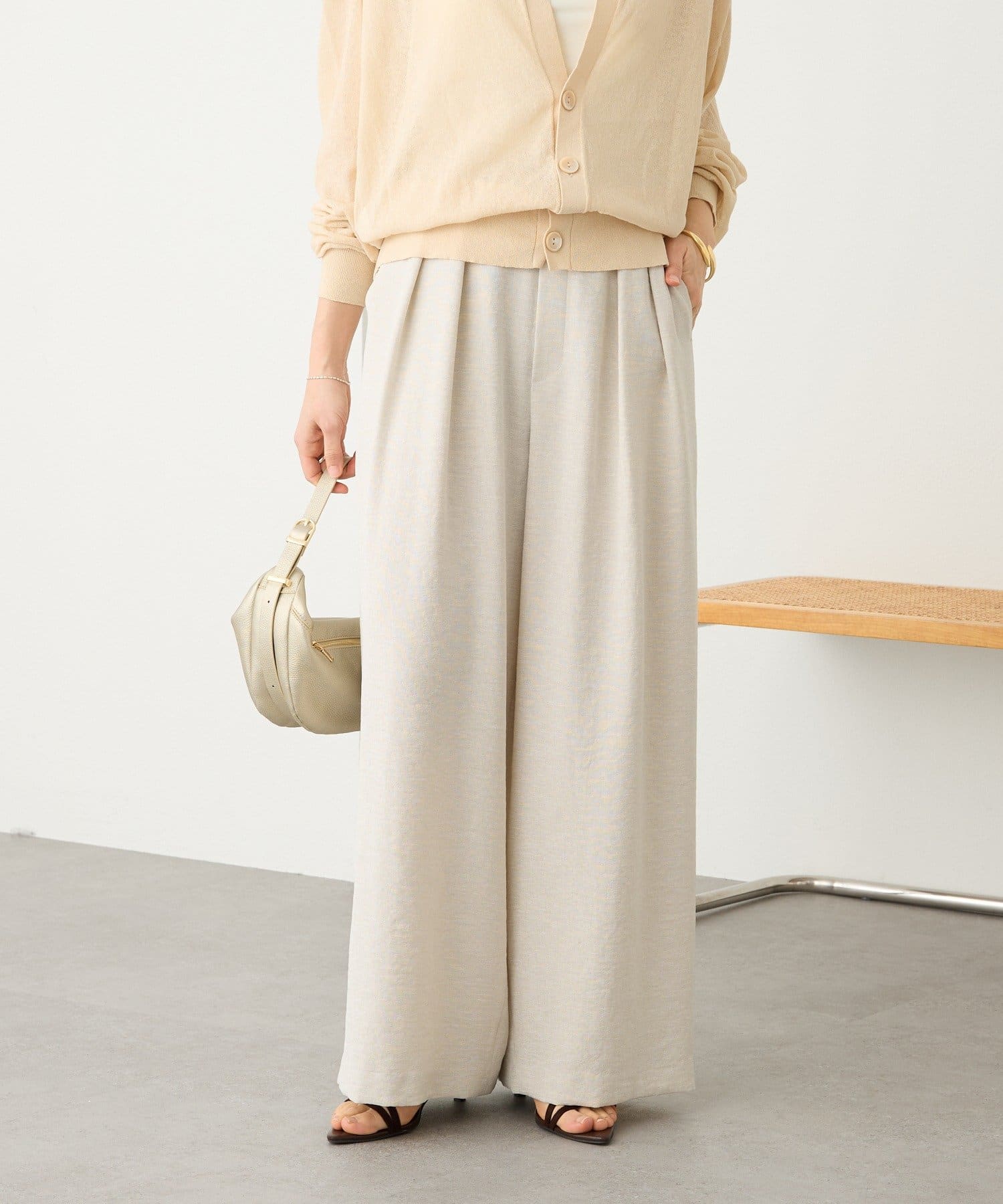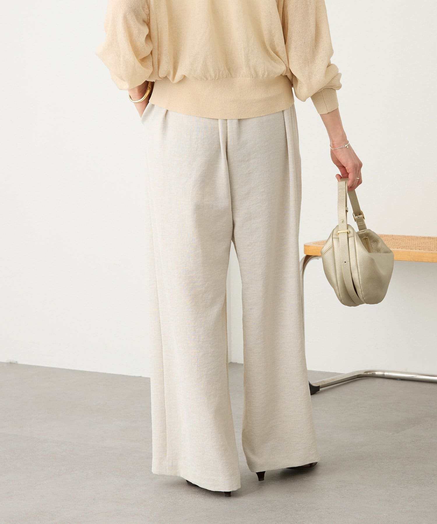 予約【防シワ性/紫外線防止】リネンライクタックワイドスラックス