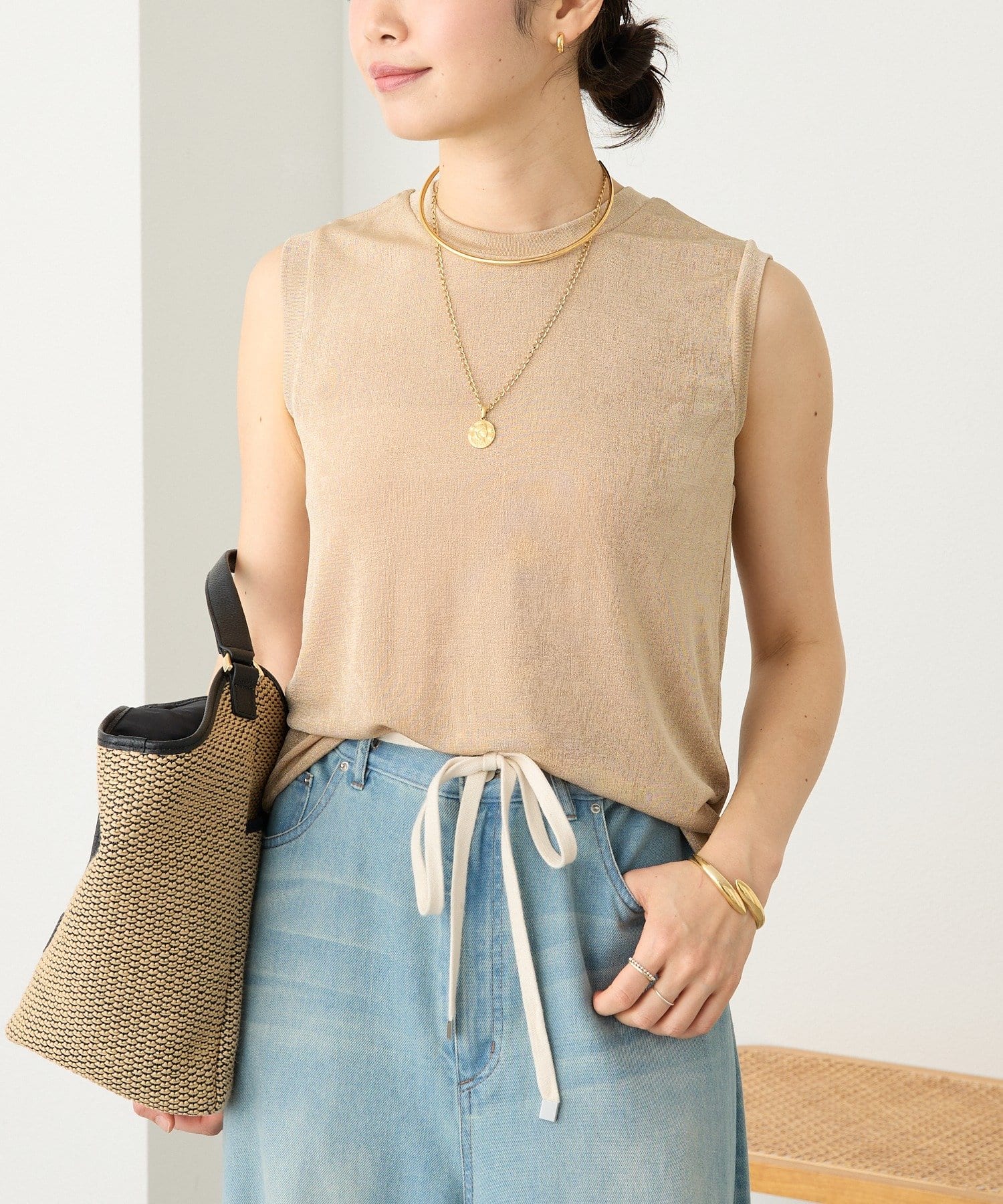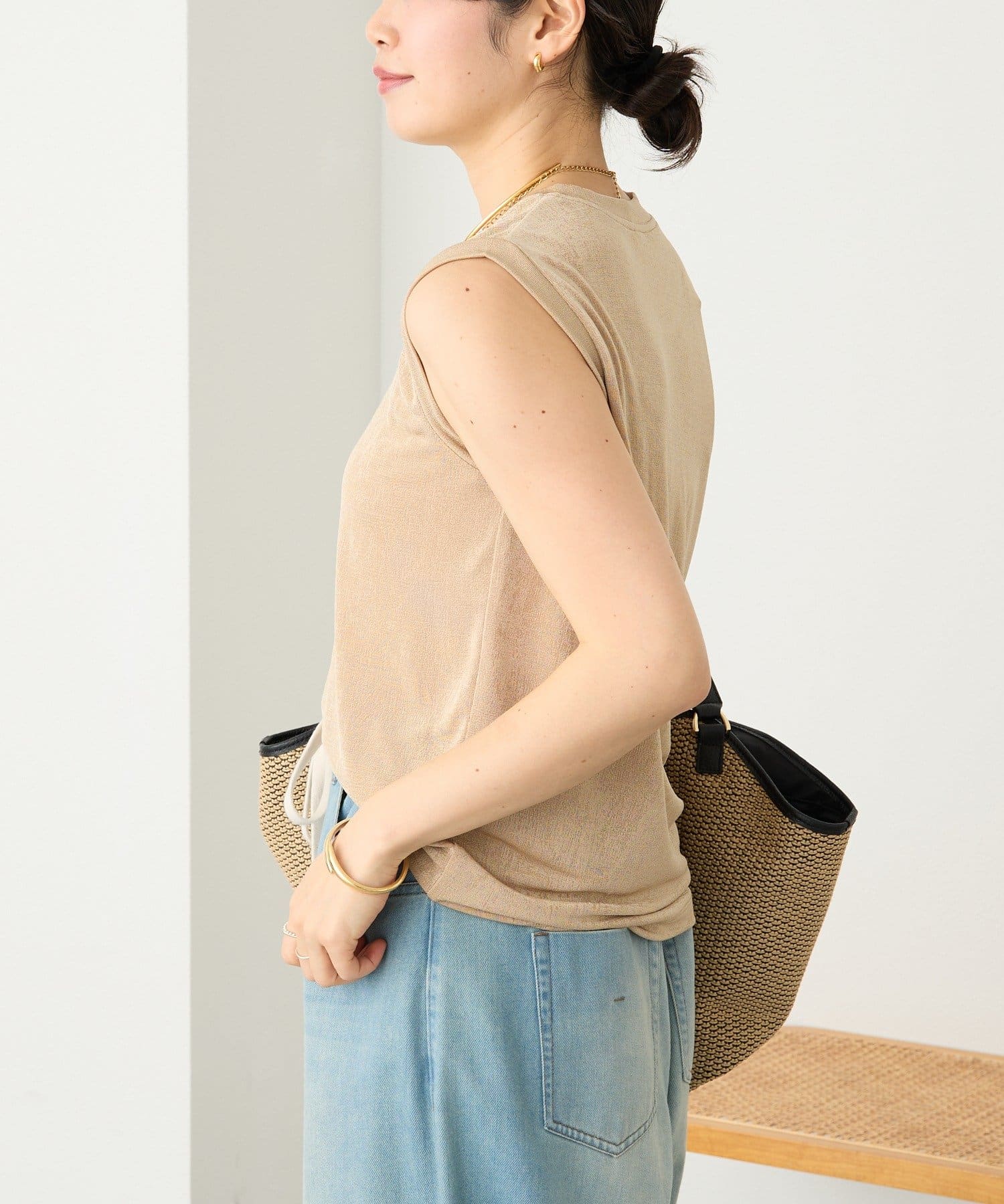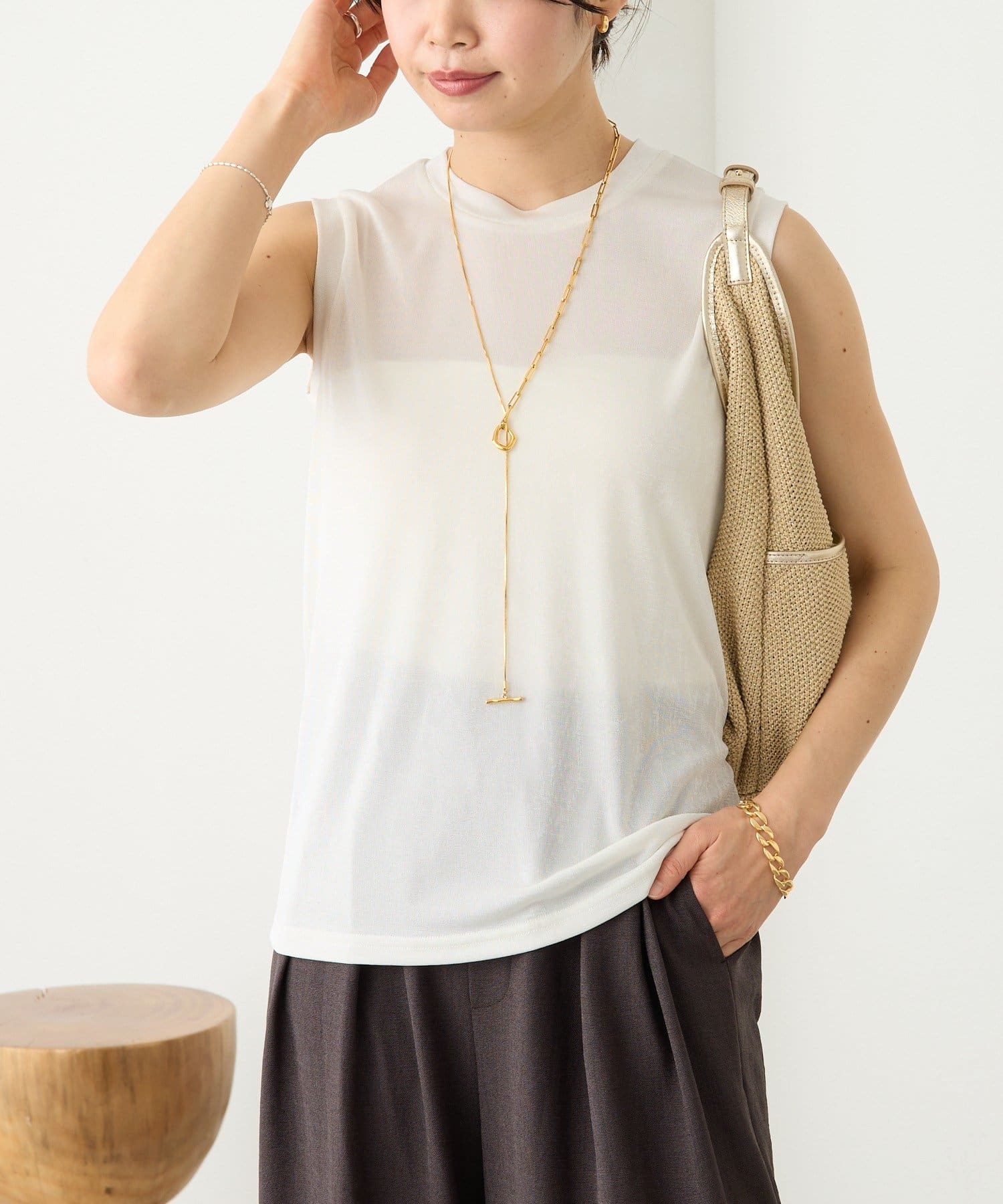 ・さりげない透け感でカジュアルにもきれいめにもマッチする素材感。