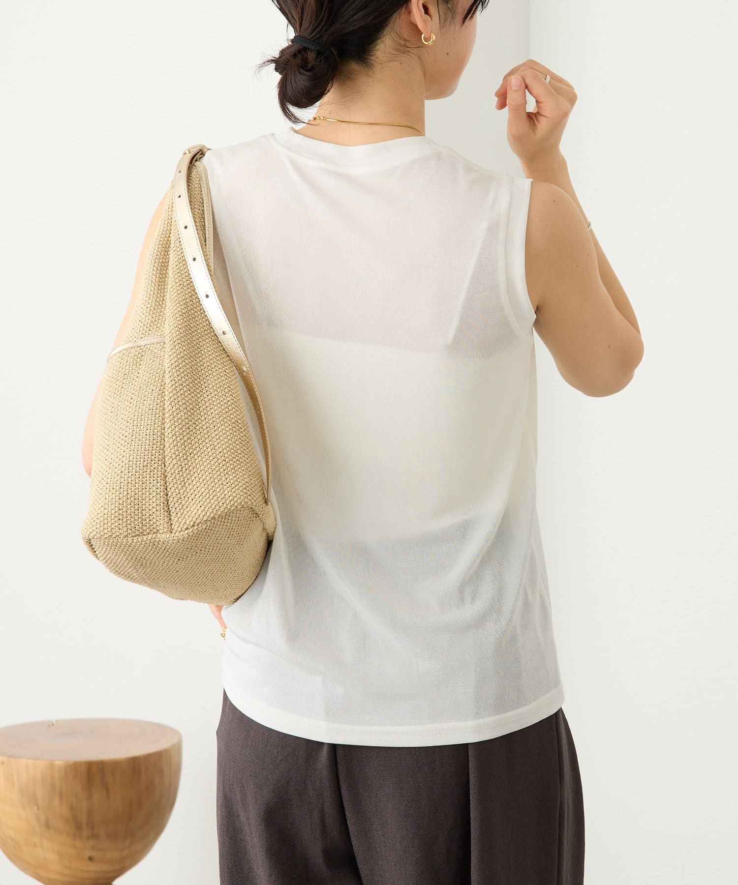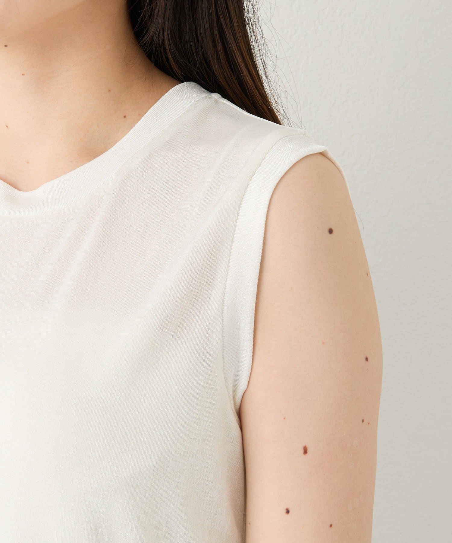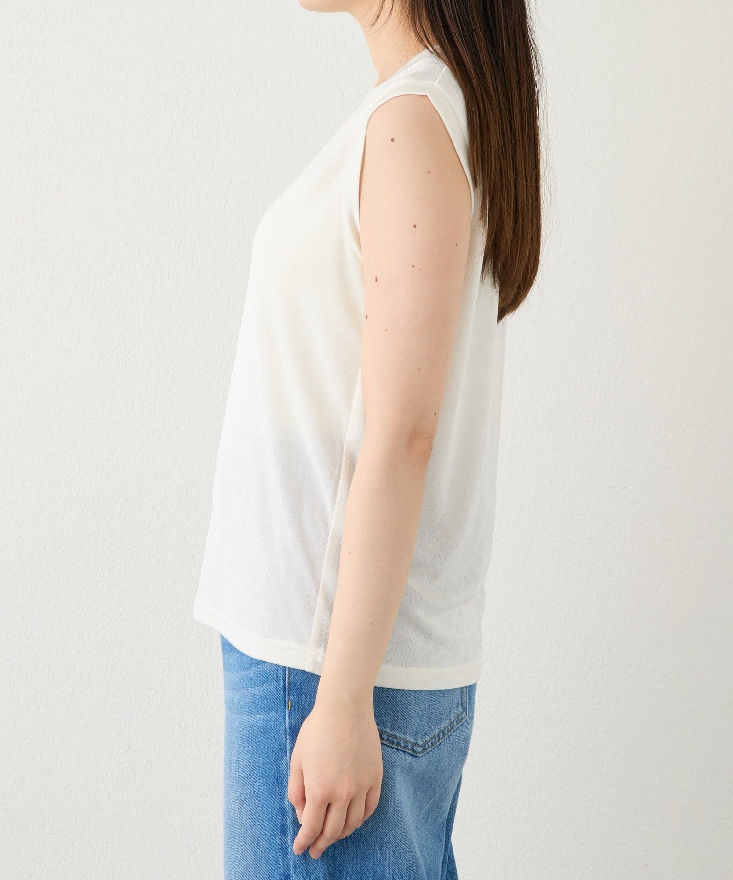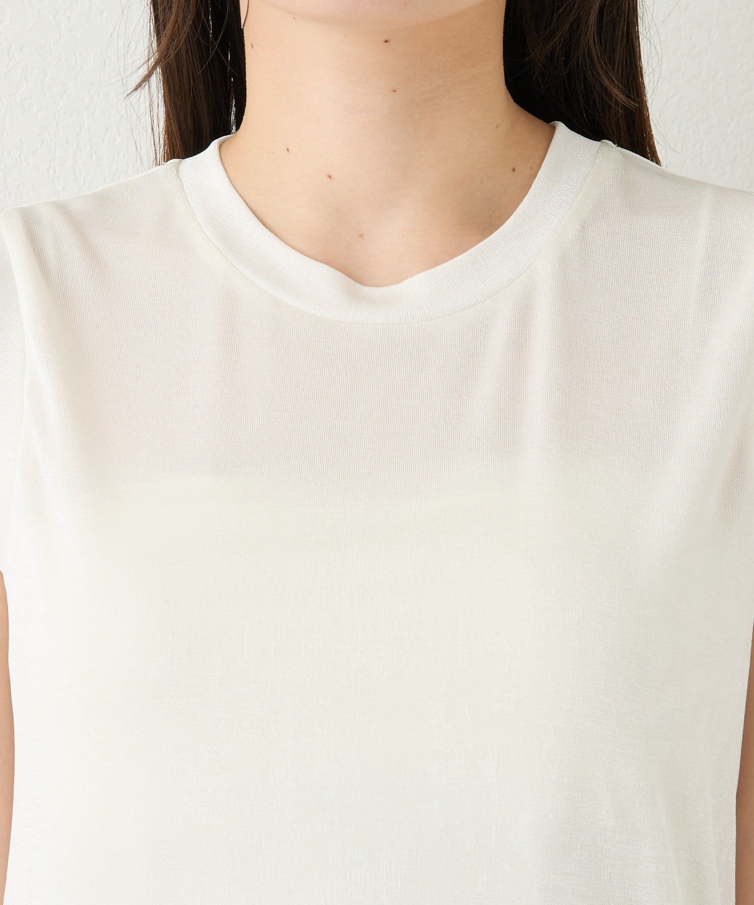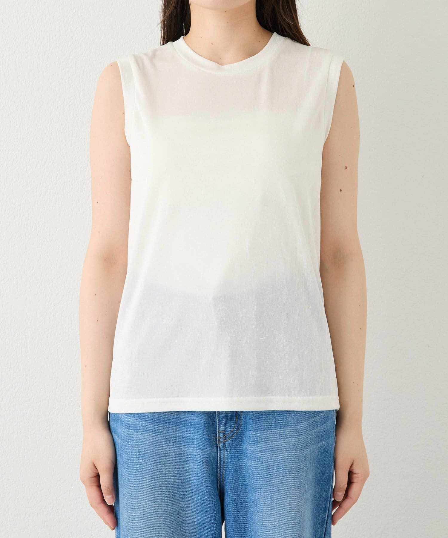 TOP > RIVE DROITE > レディース > トップス > タンクトップ > 予約【上品な光沢が目を引く】シャイニーノースリTee