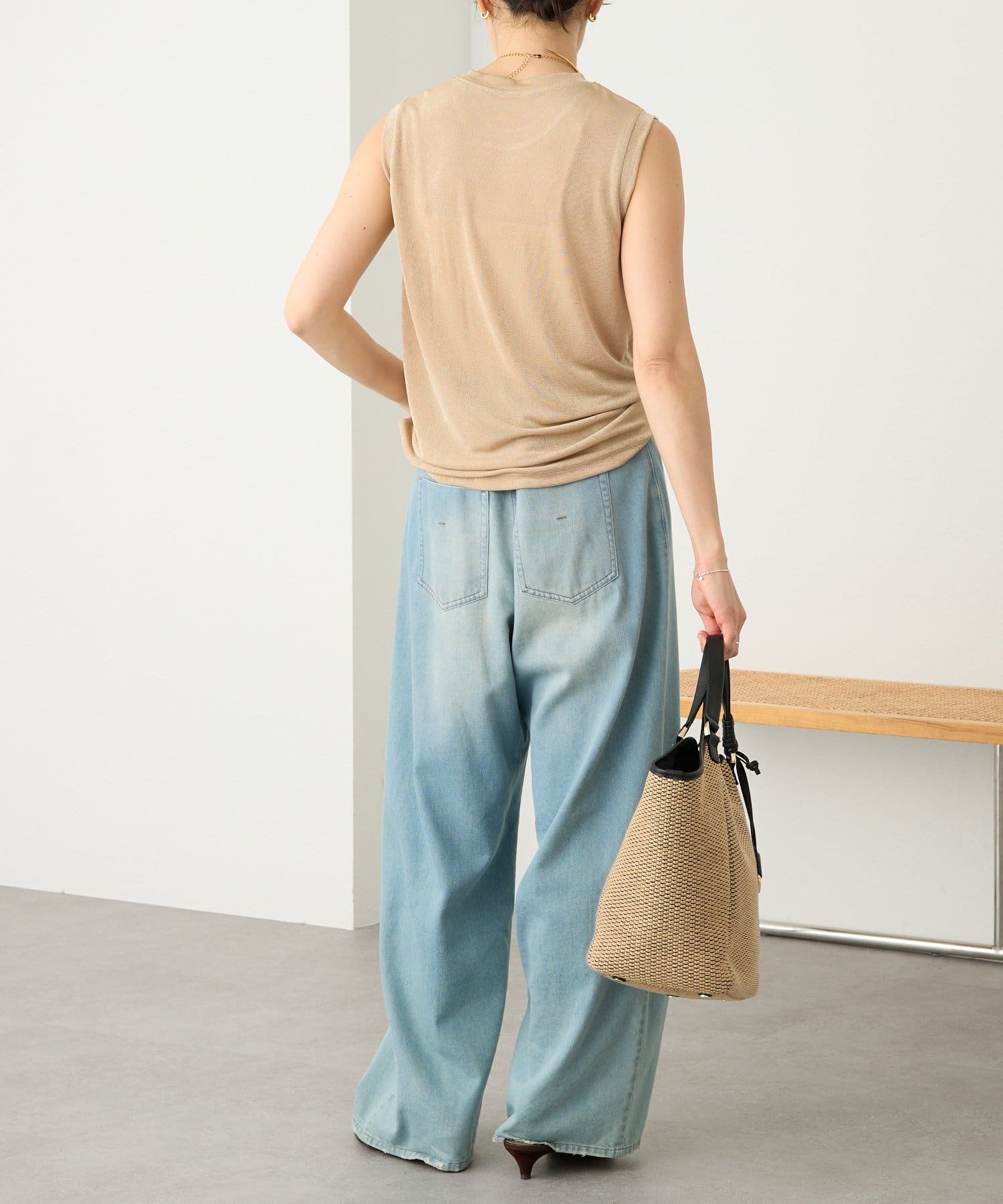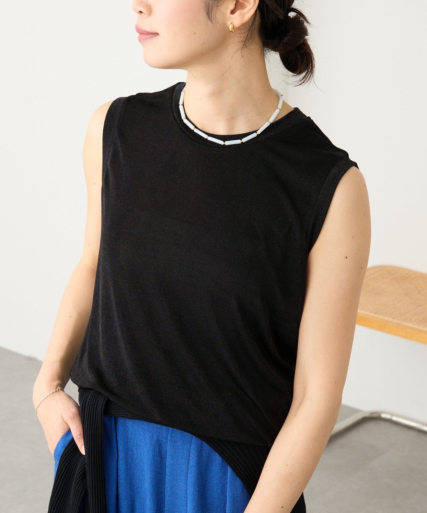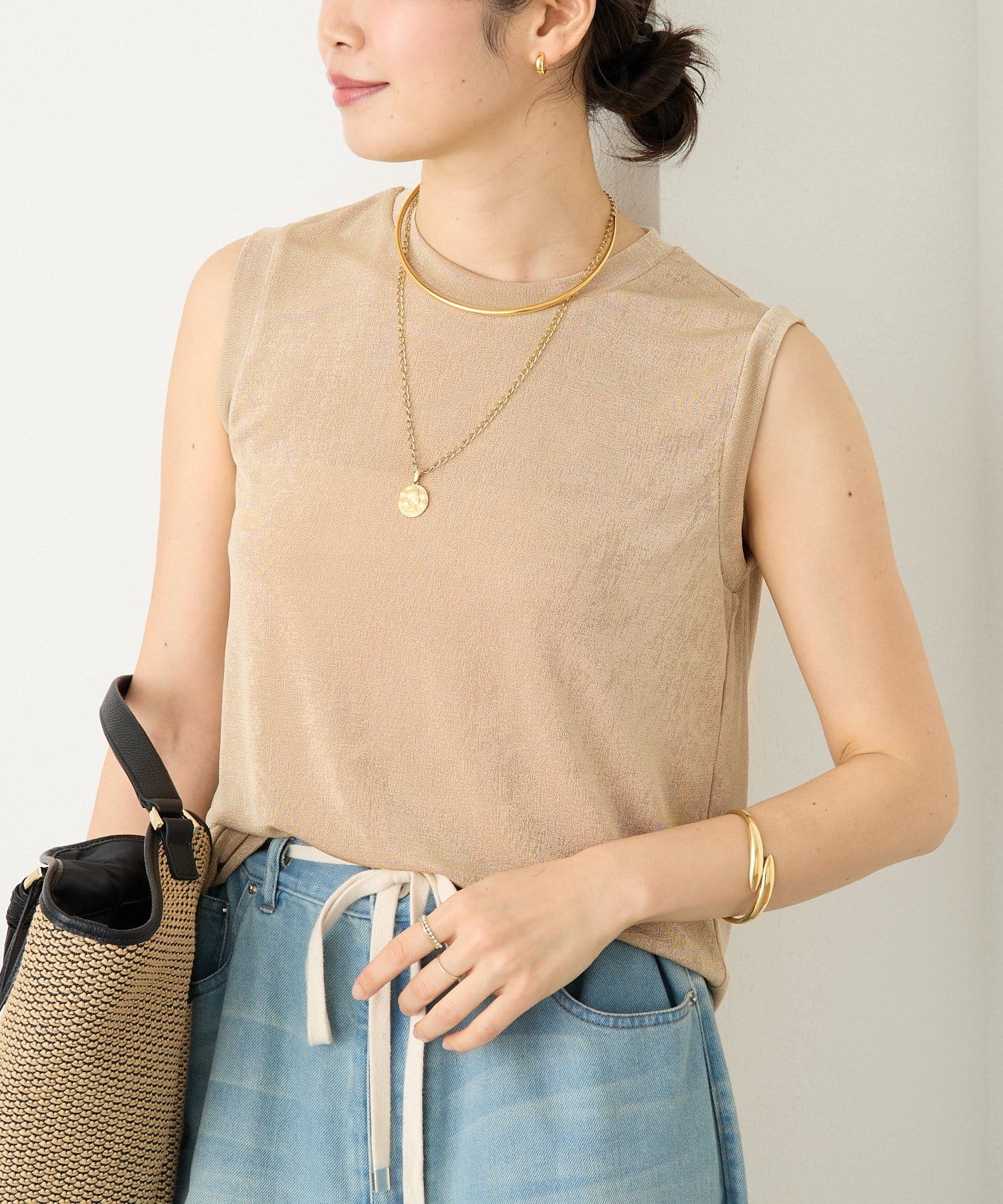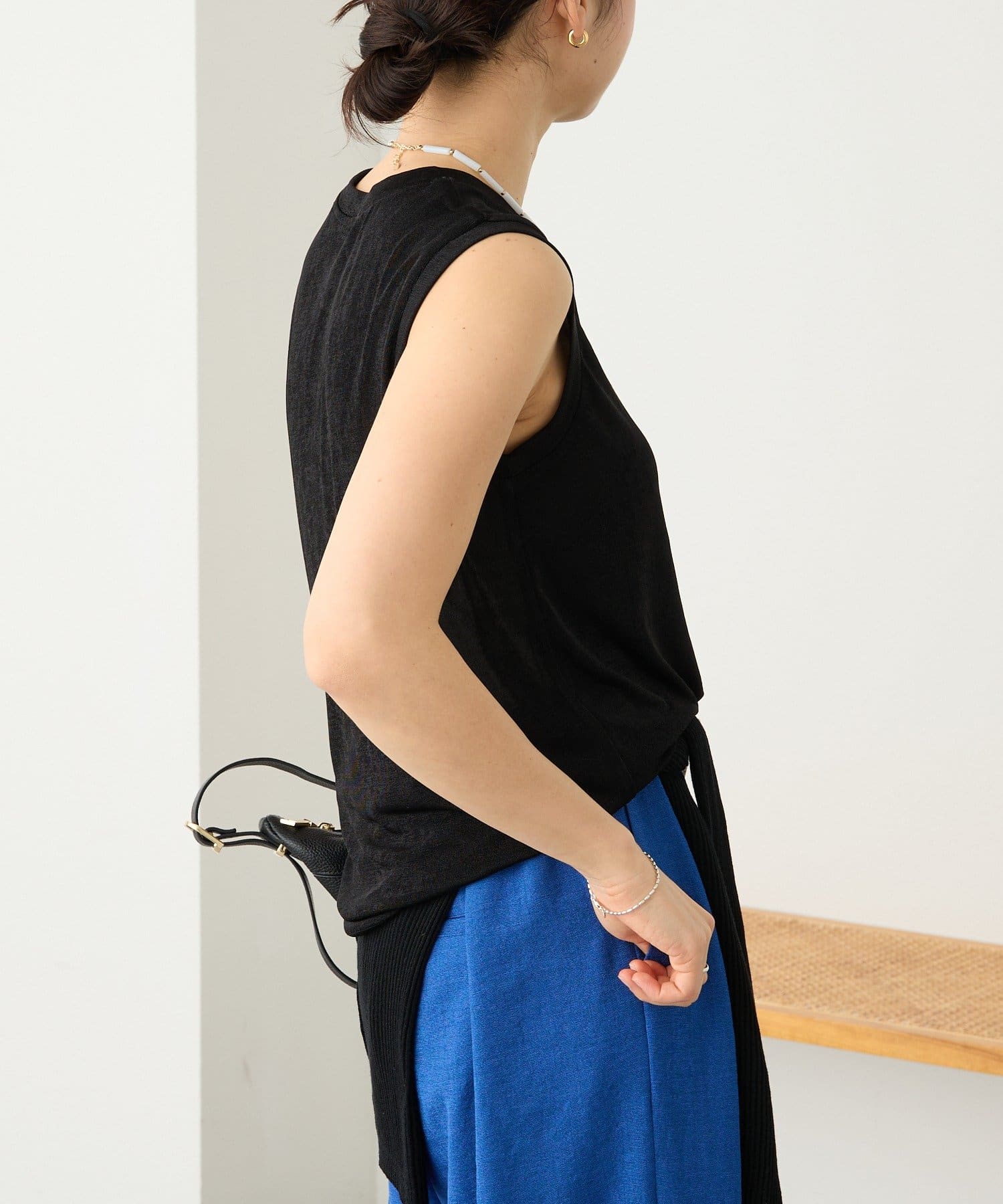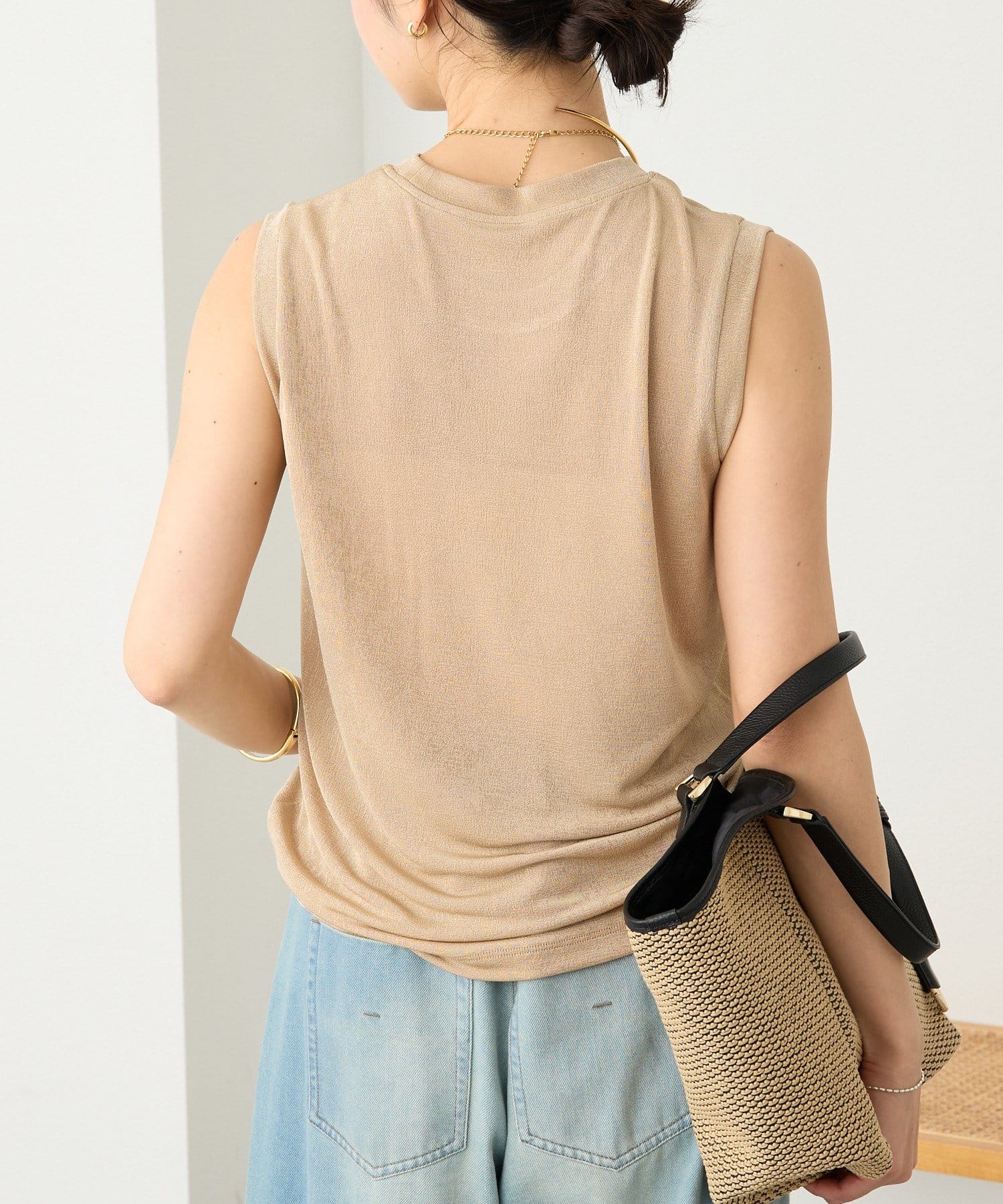 TOP > RIVE DROITE > レディース > トップス > タンクトップ > 予約【上品な光沢が目を引く】シャイニーノースリTee