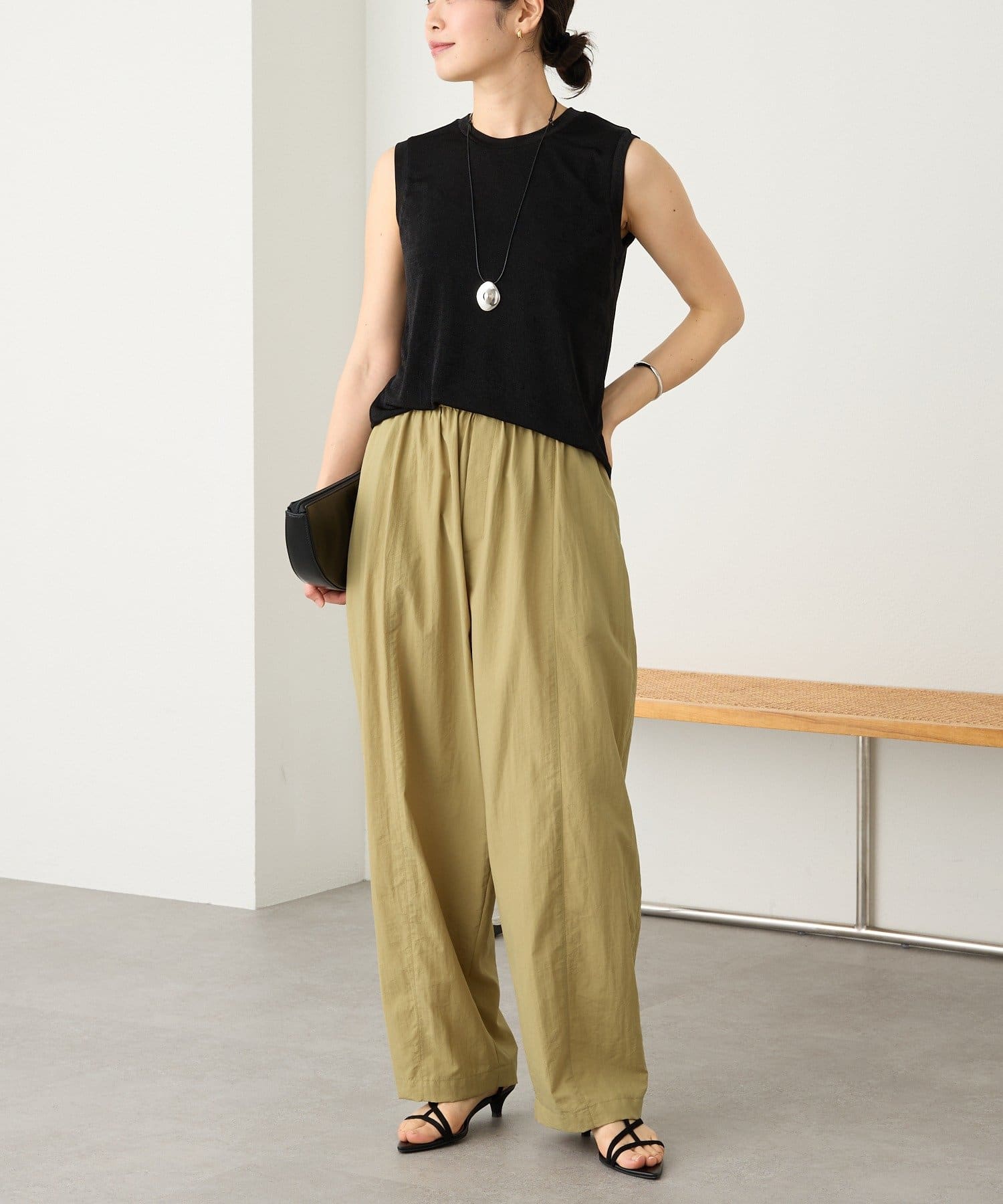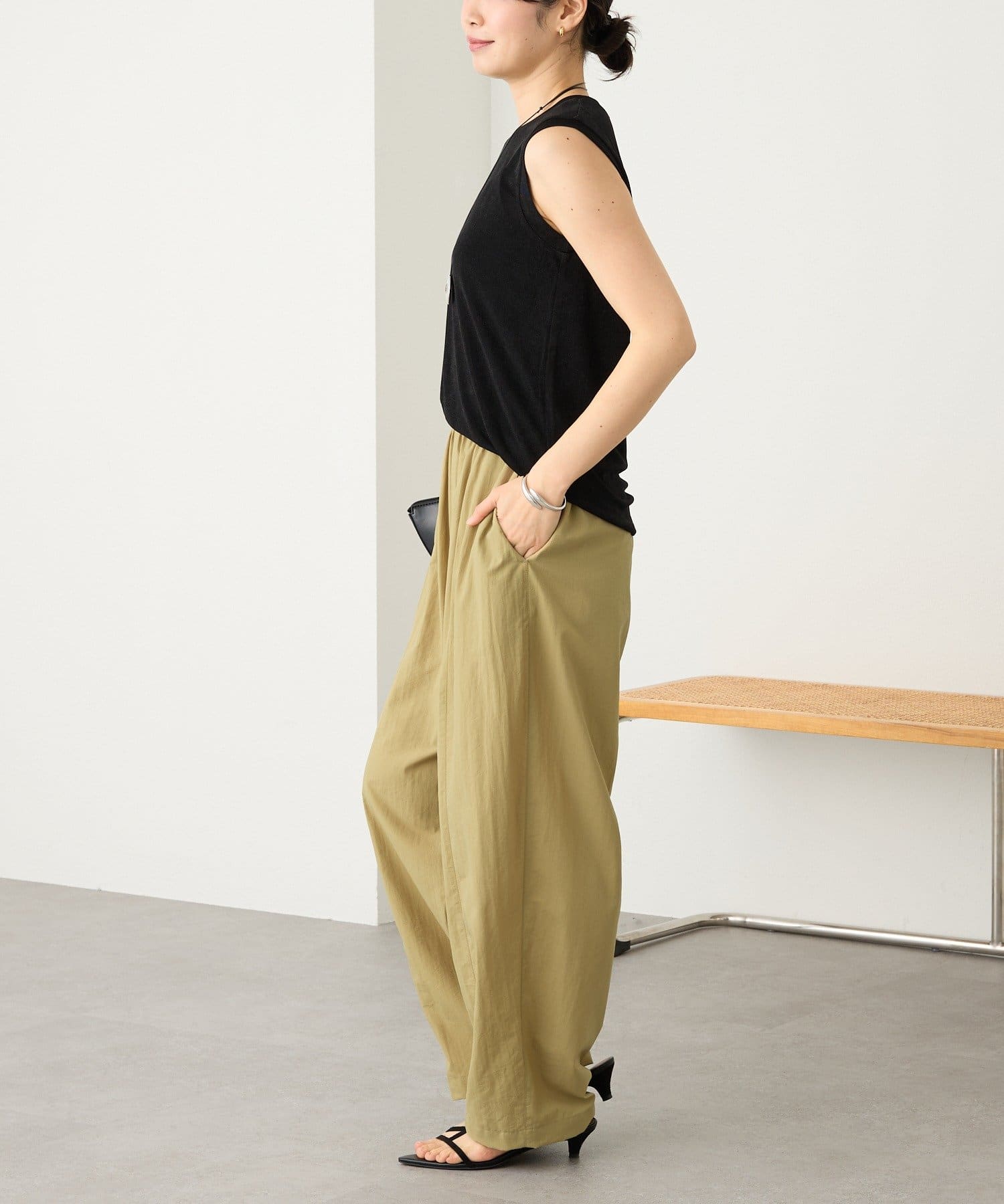 • 落ち感と伸縮性のある生地を使用