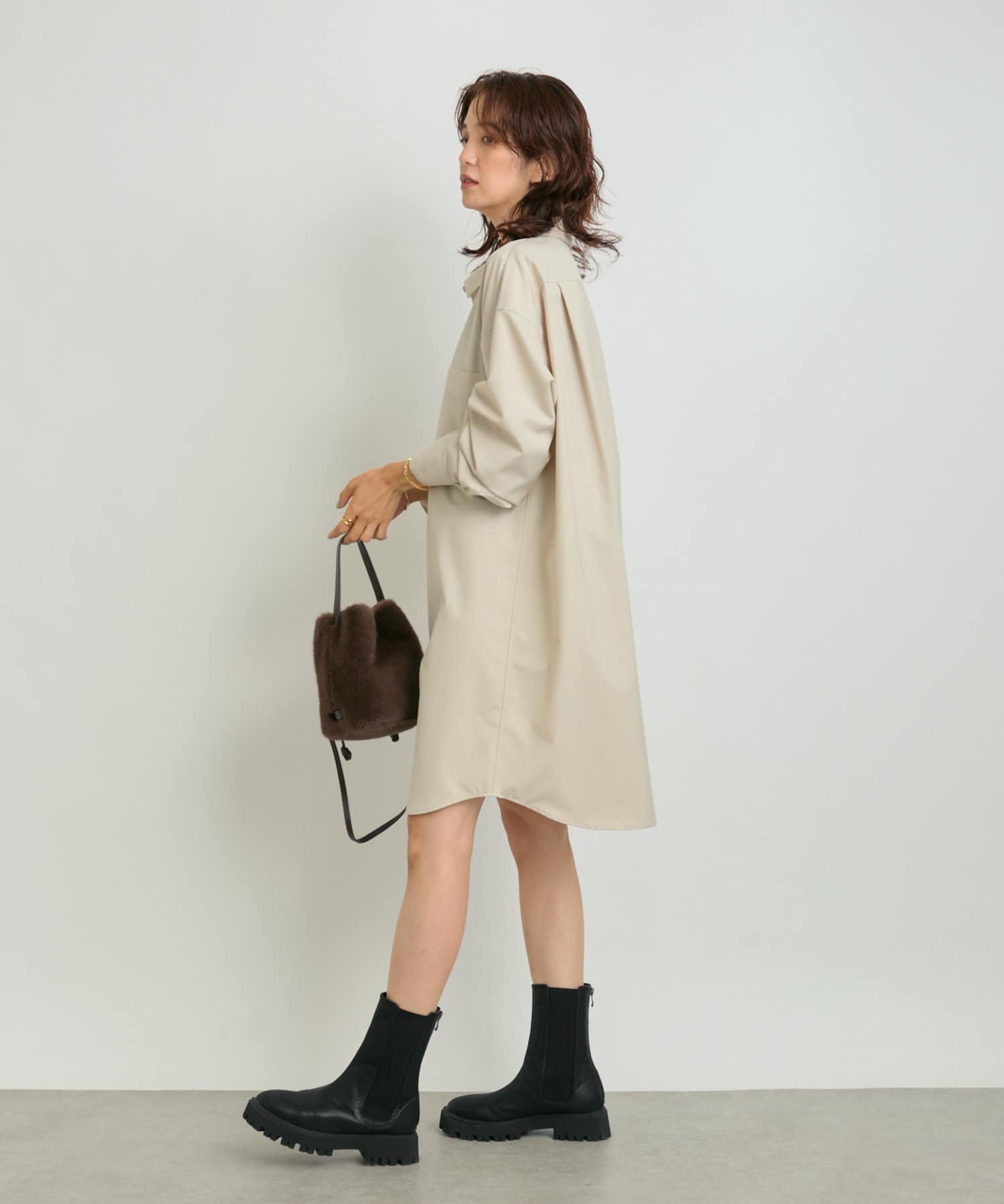 梳毛調に見える素材を使用したシャツワンピースになります。