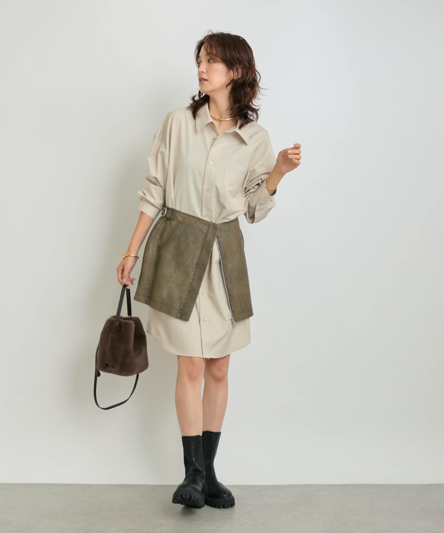 羽織としても着れるシャツワンピース