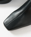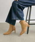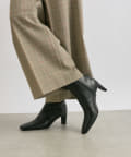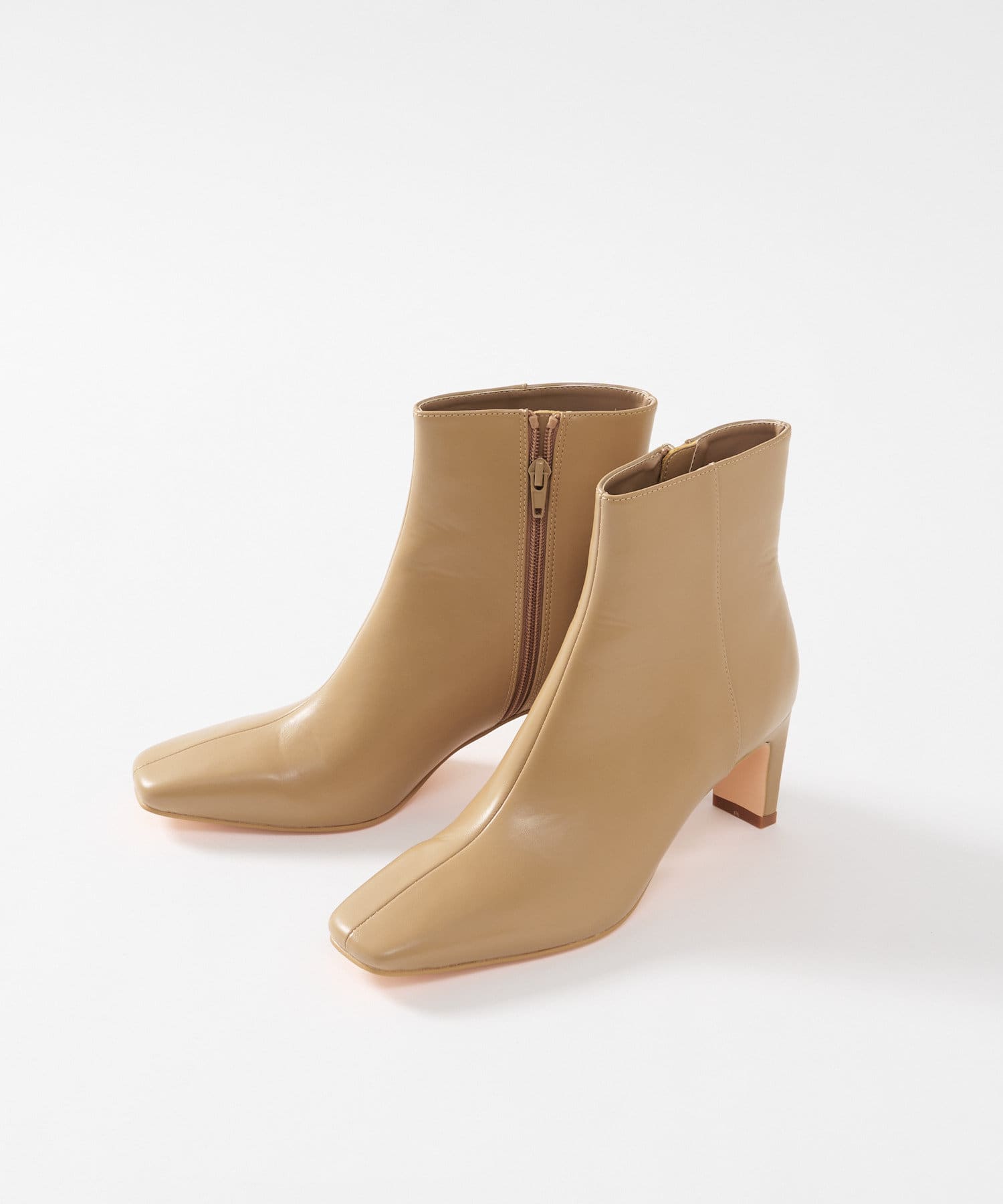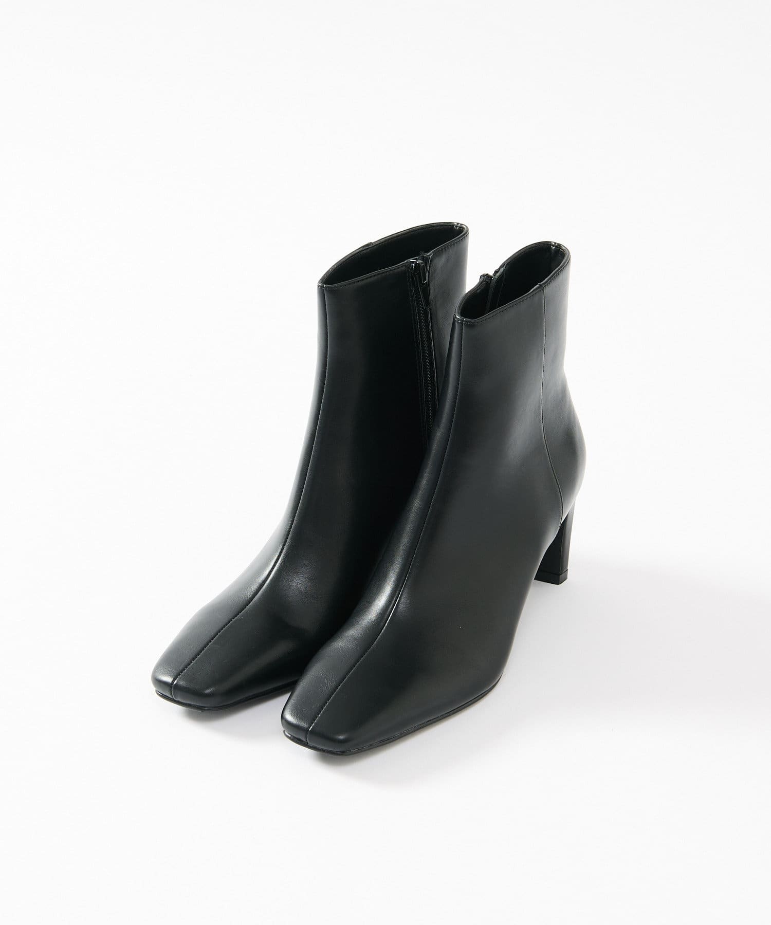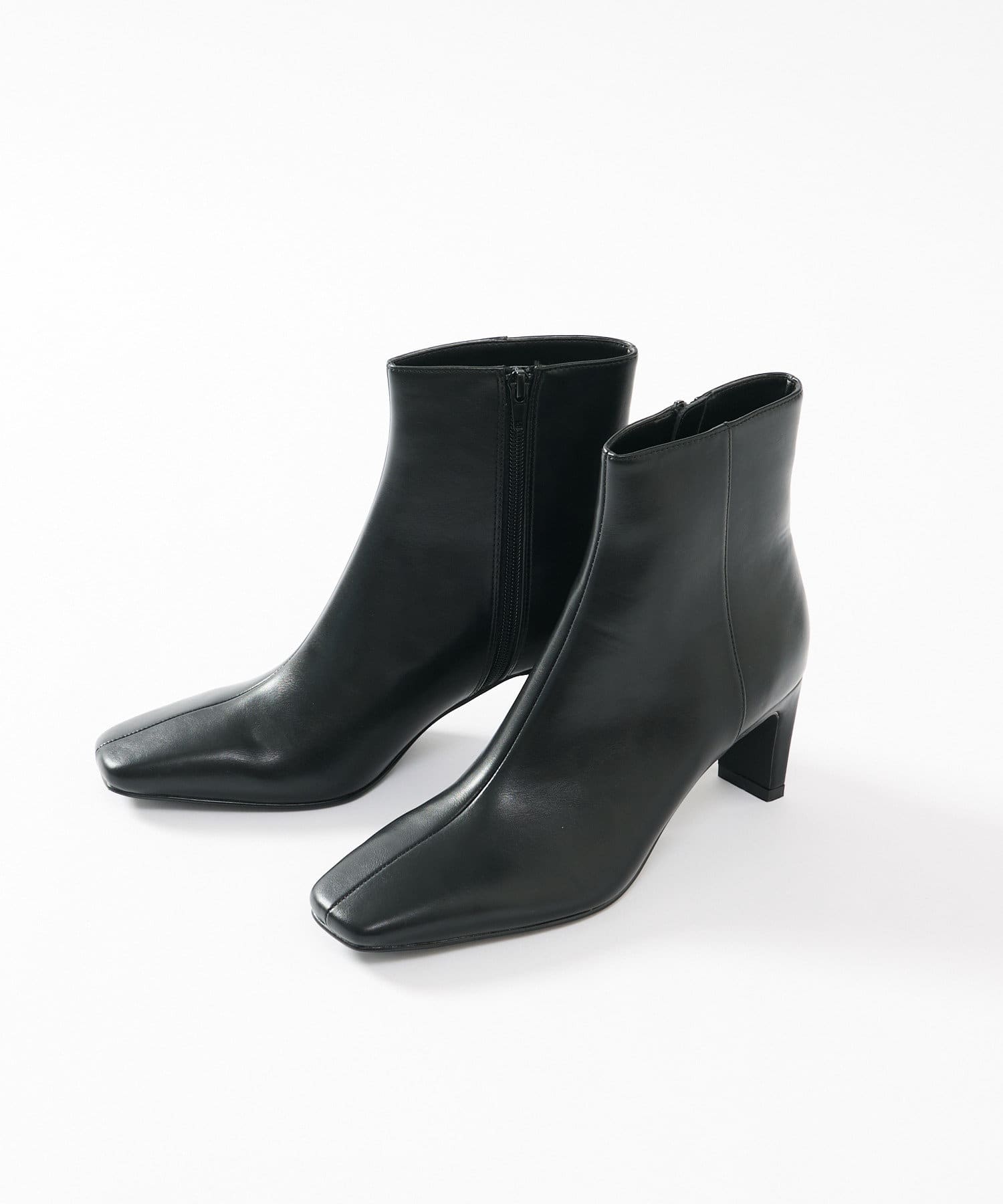 やや丸みのあるつま先のシルエットと、安定感はありつつすっきりと見えるヒールのシルエットがきれいなショートブーツ。