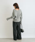 身幅はたっぷりしていますが、着丈、裾幅をコンパクトにすることでずるっとした印象になりすぎないようにし、袖口の長くとったリブやサムホールで袖口にニュアンスを出しています。