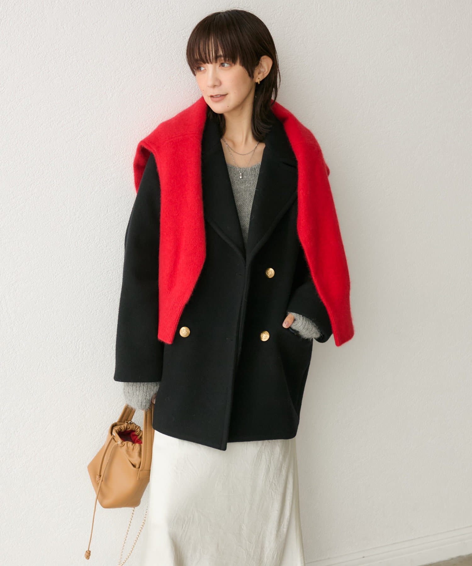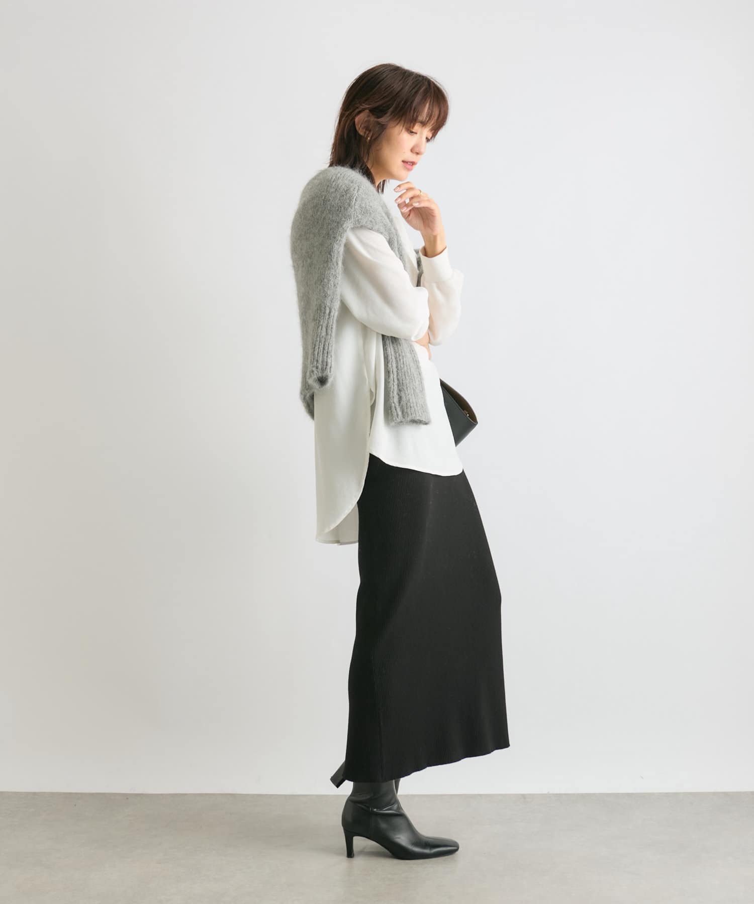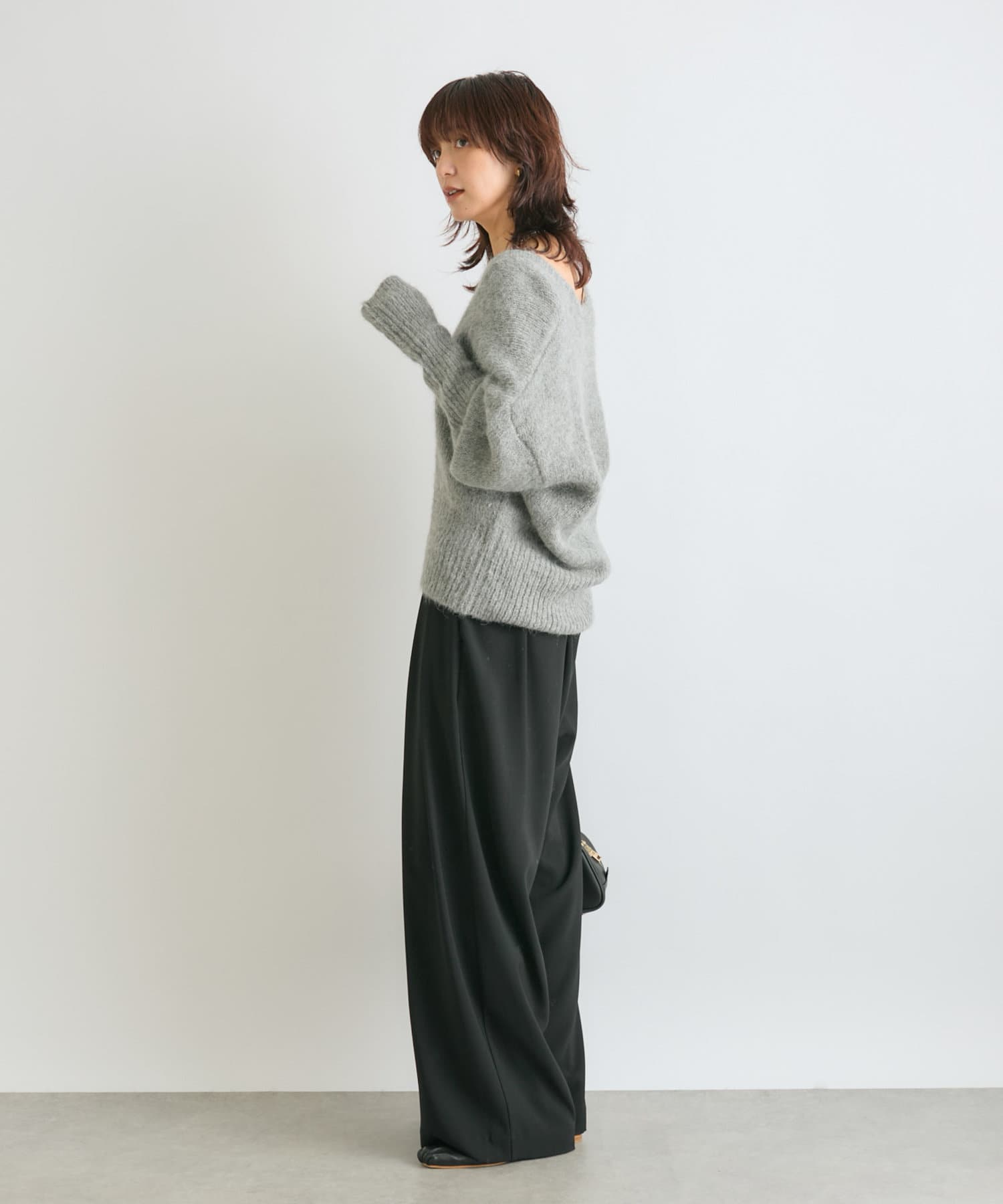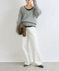 ルーズデニムや、タックワイドスラックスなど、ボトムにボリュームのあるものを持ってきていただくとバランスよく着こなしていただけておすすめです。