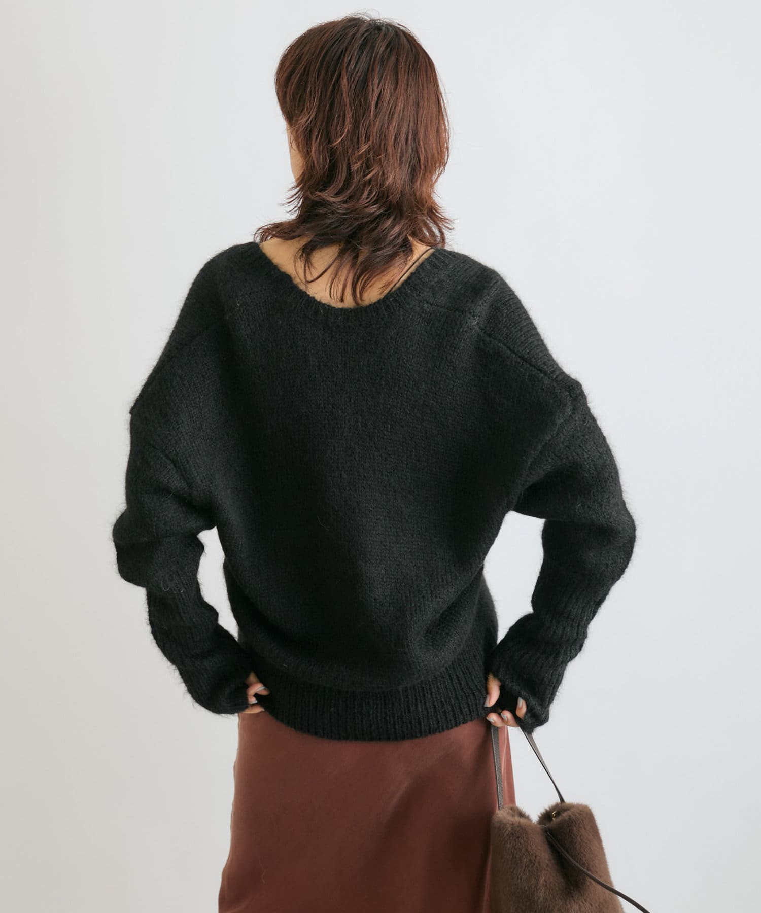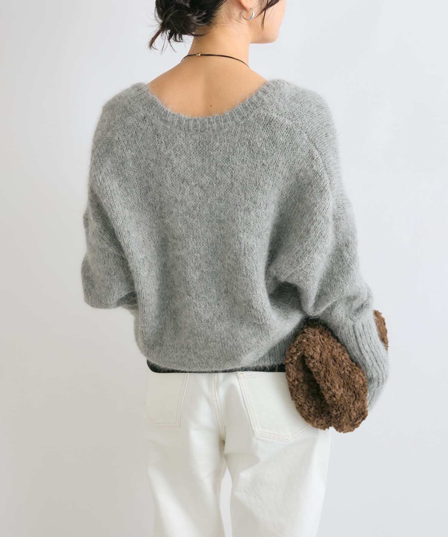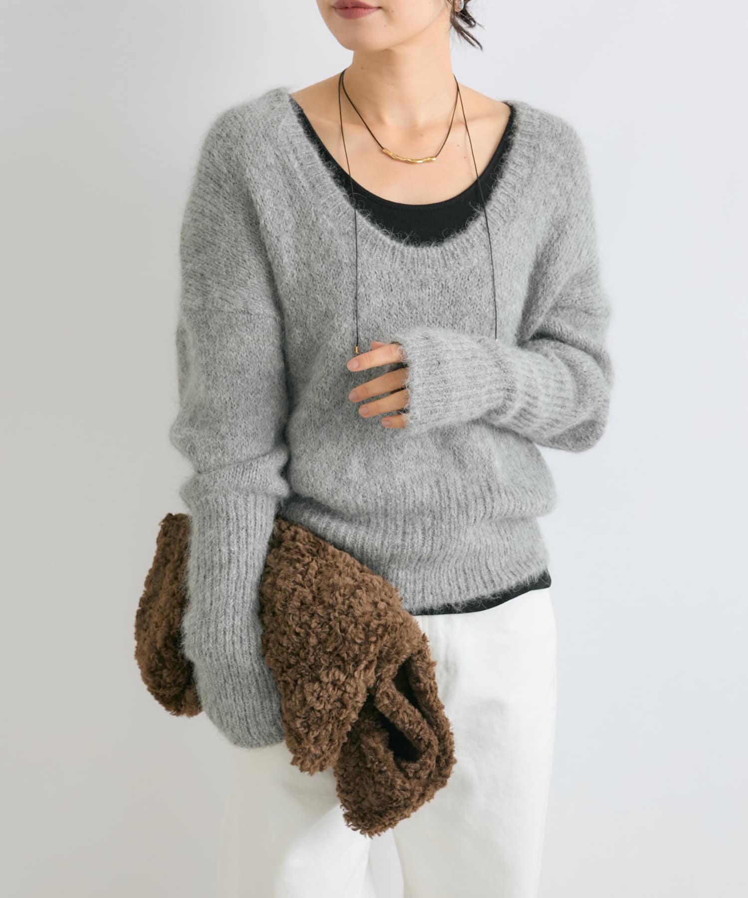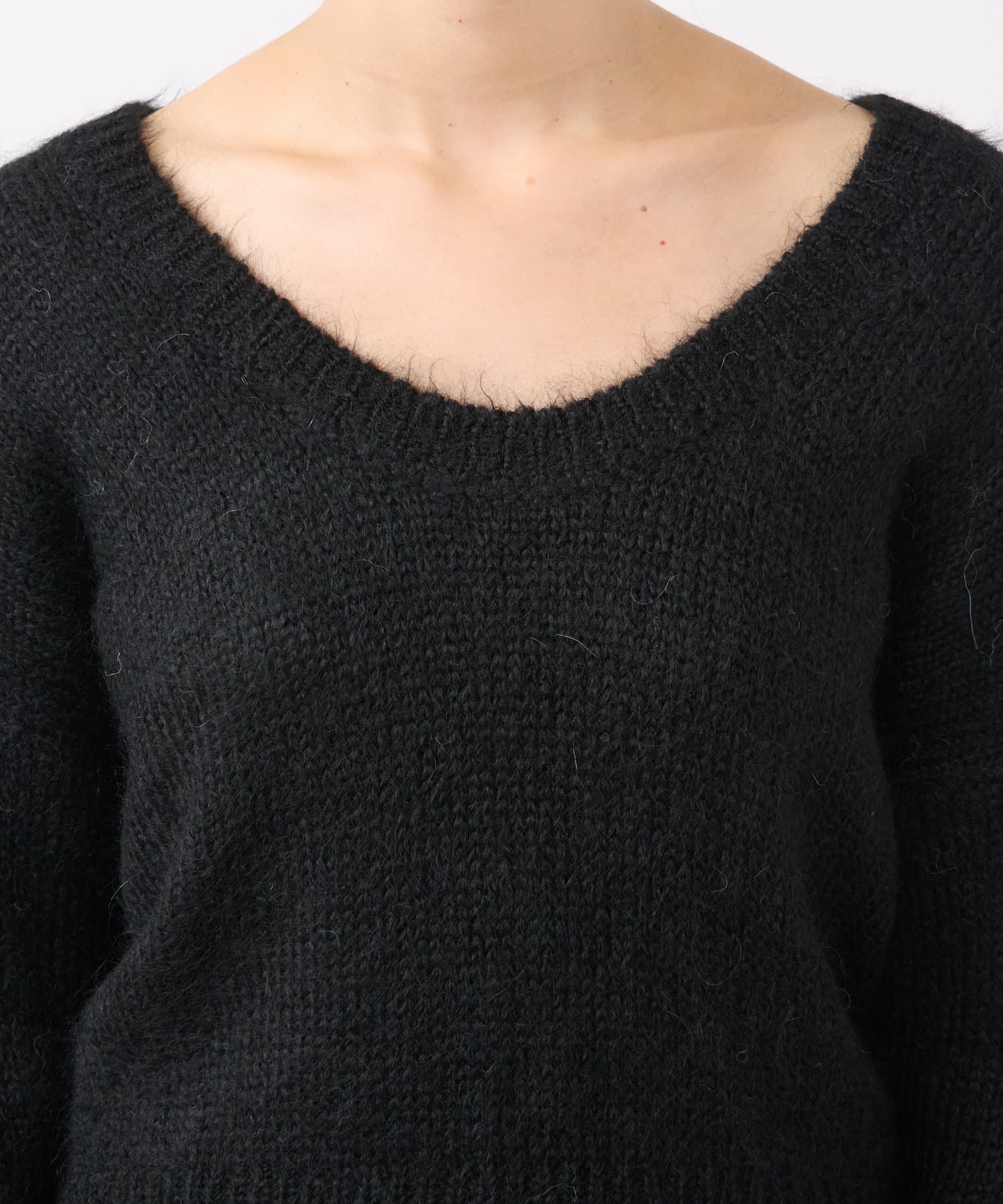 アルパカの中でも希少性の高いスーリーアルパカを高混率でブレンドした糸を使用したUネックニット。