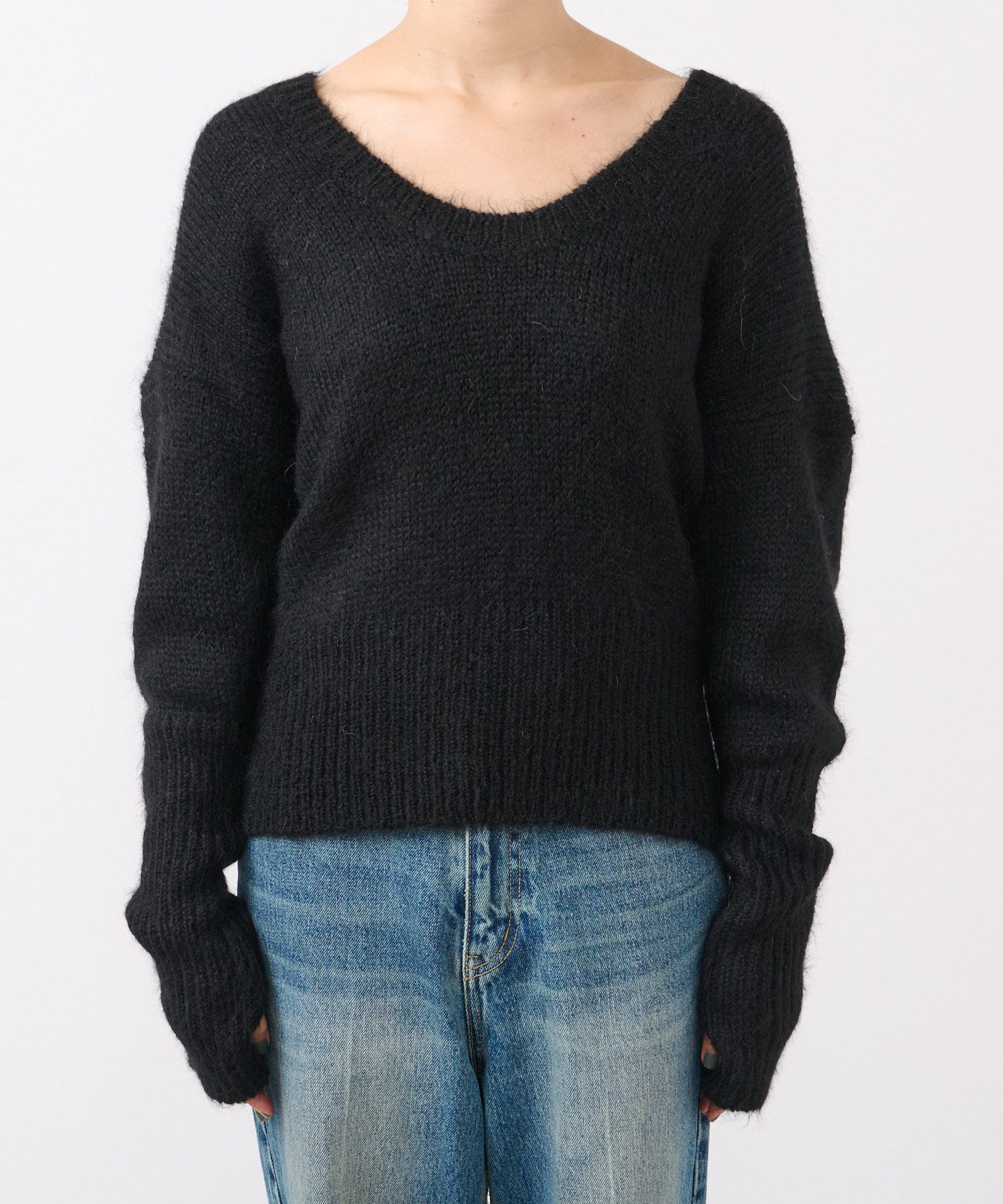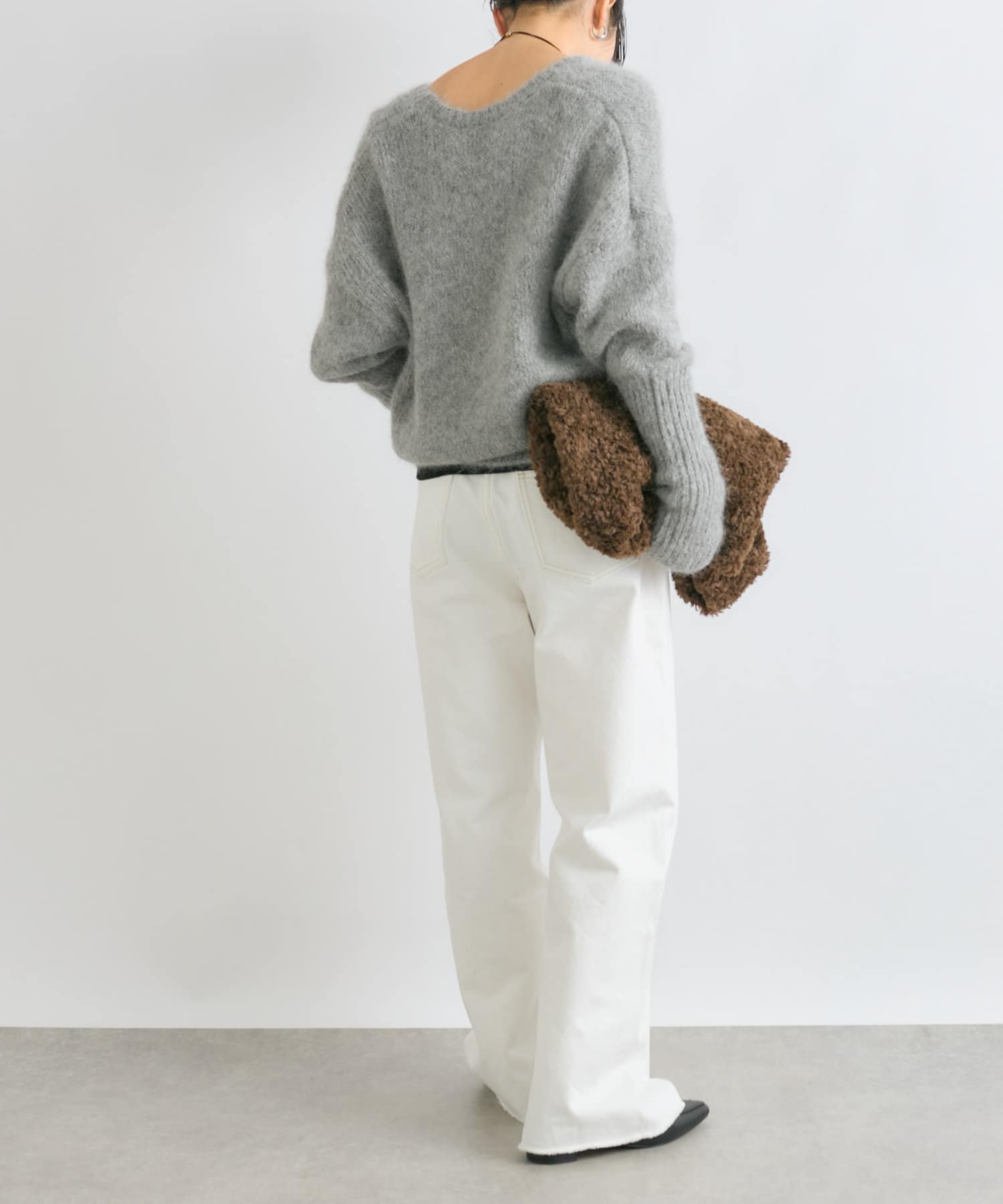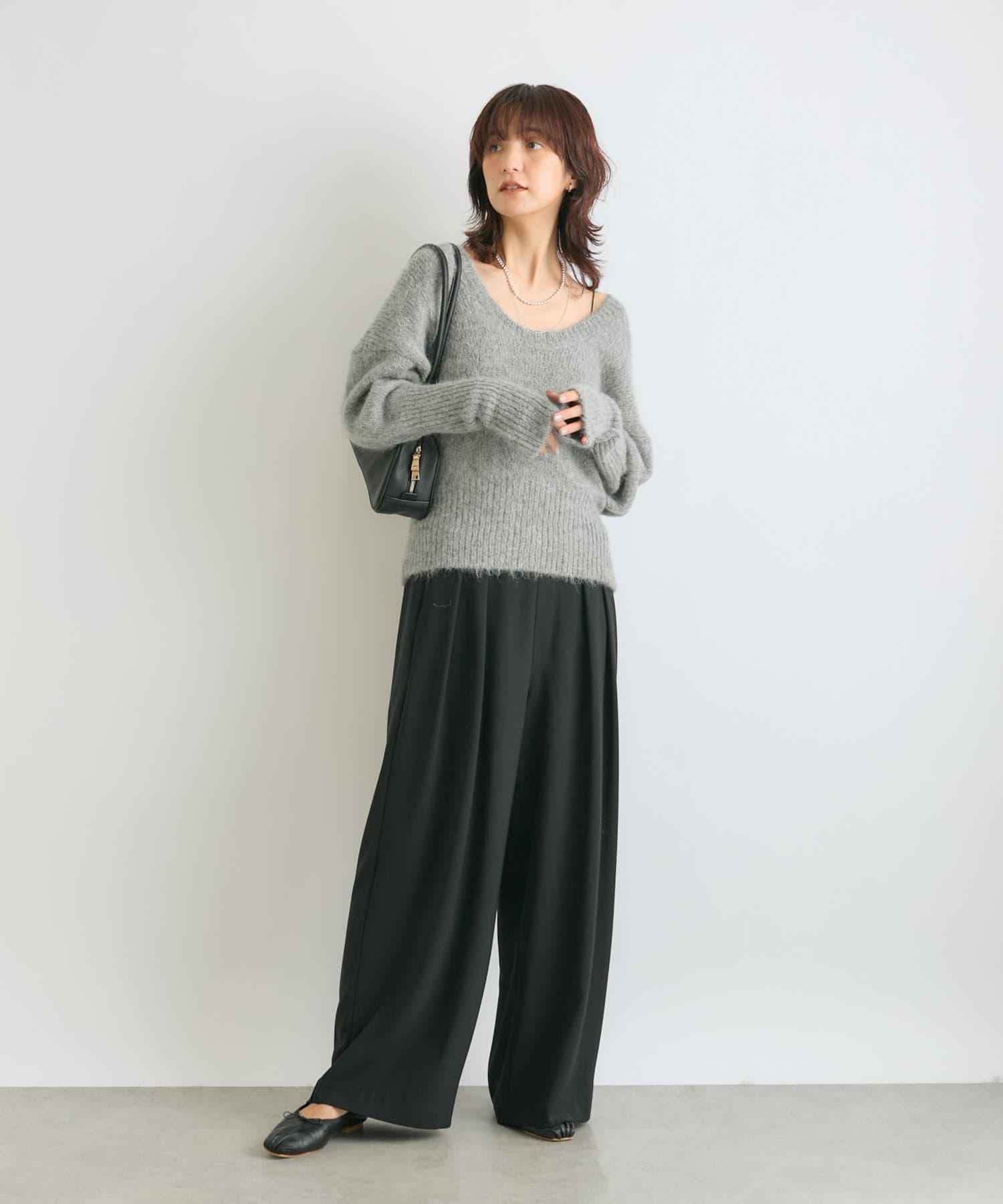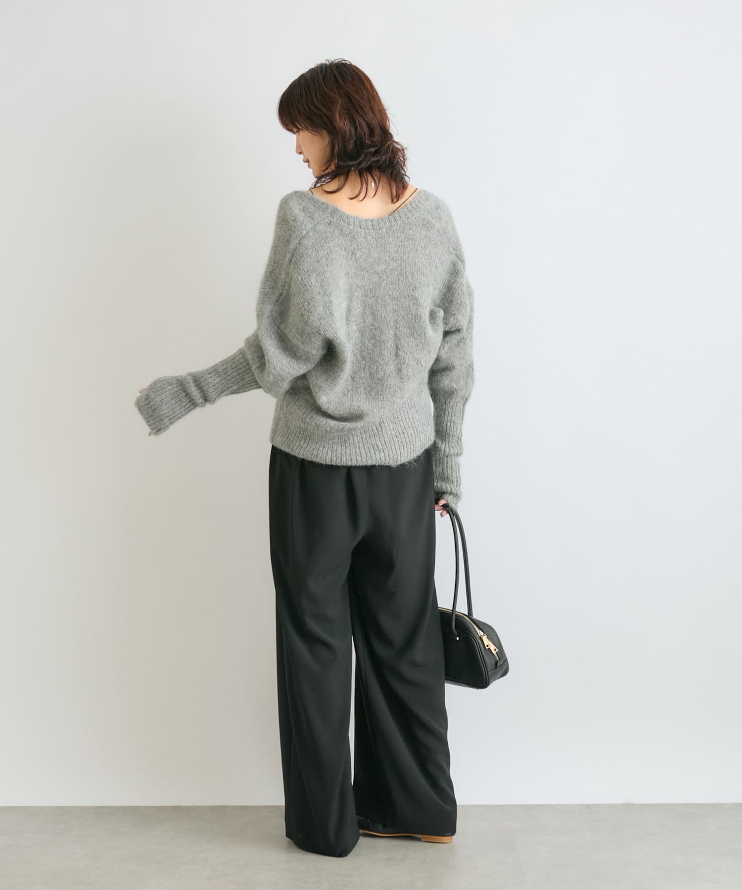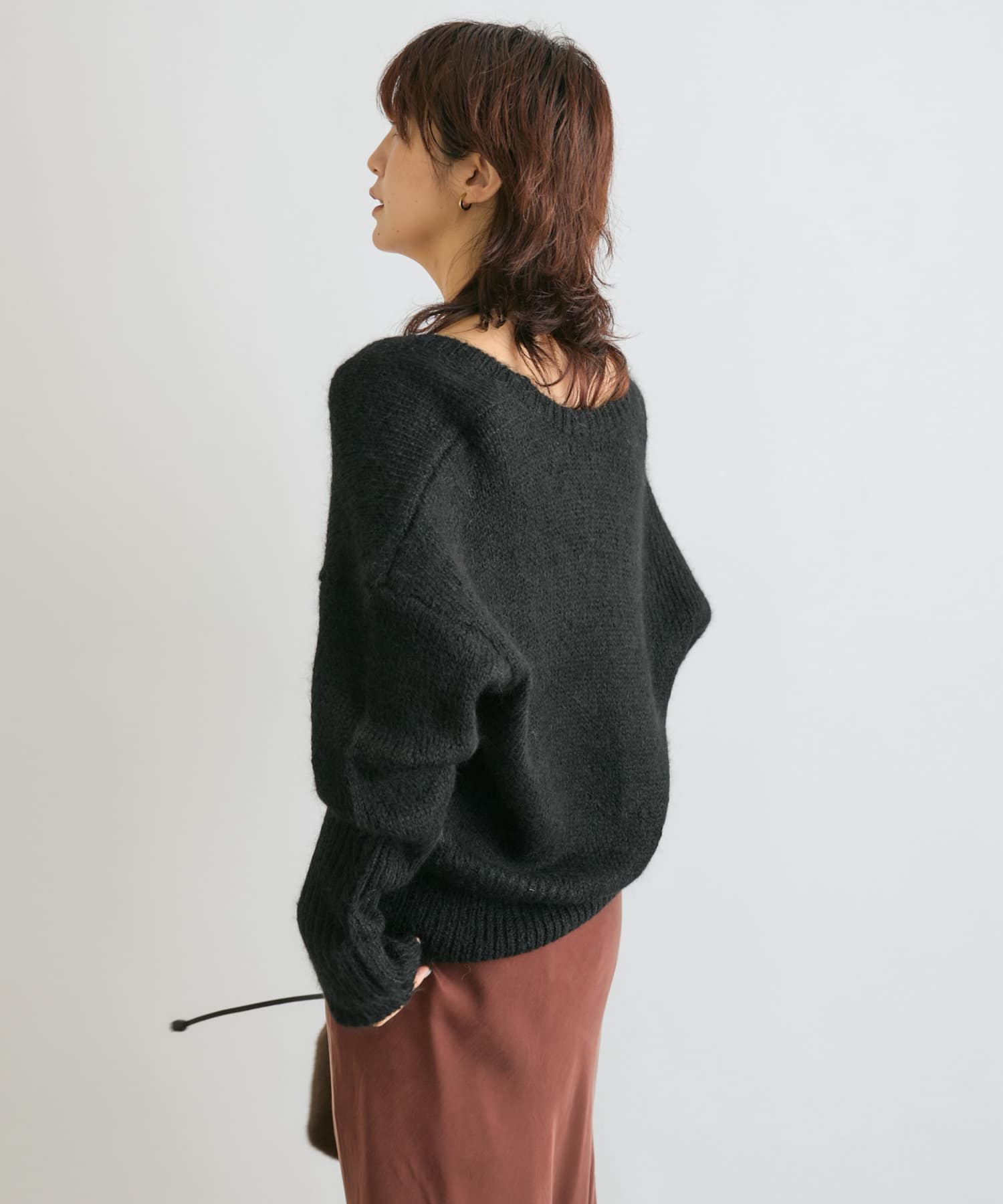 アルパカの中でも希少性の高いスーリーアルパカを高混率でブレンドした糸を使用したUネックニット。