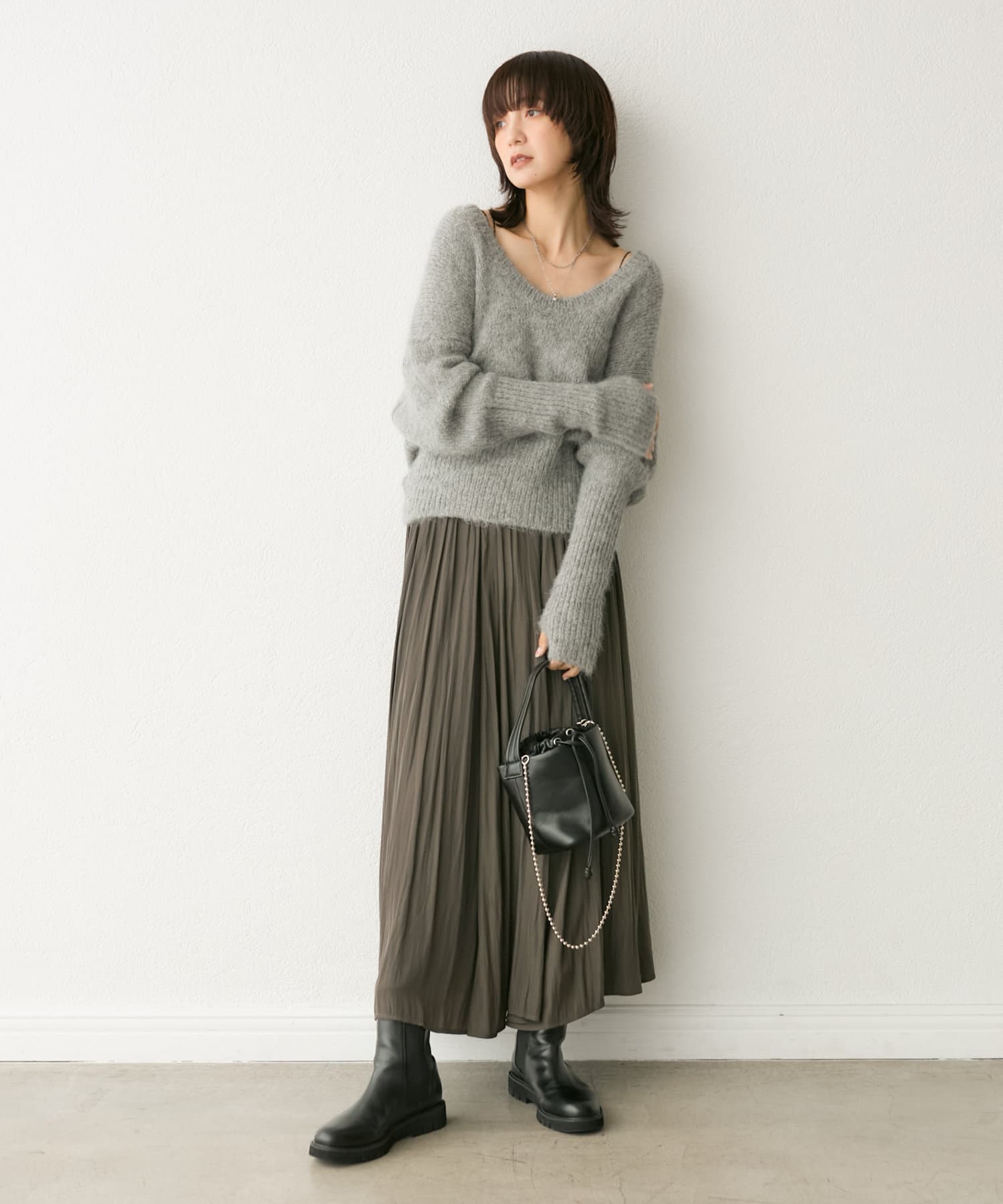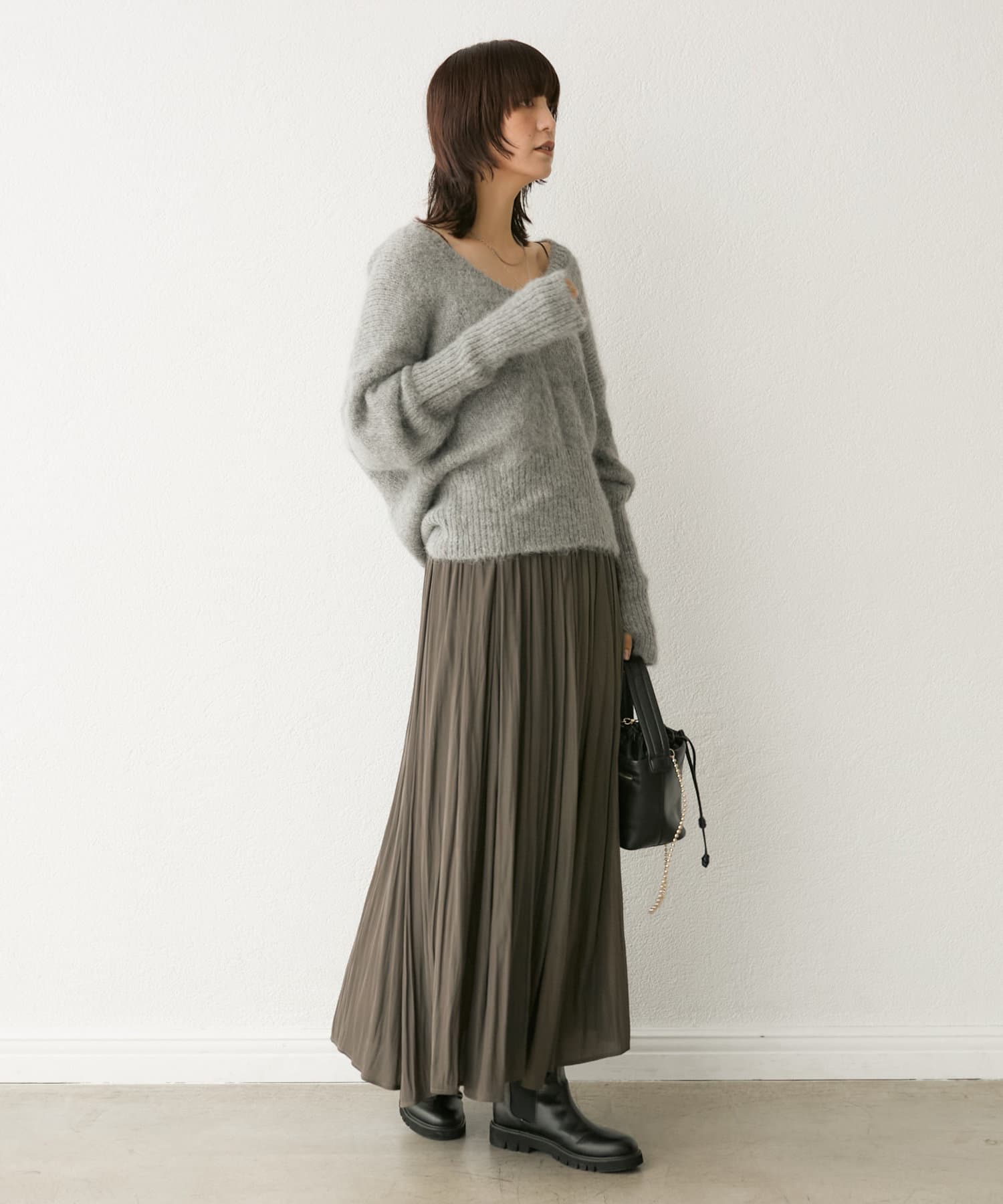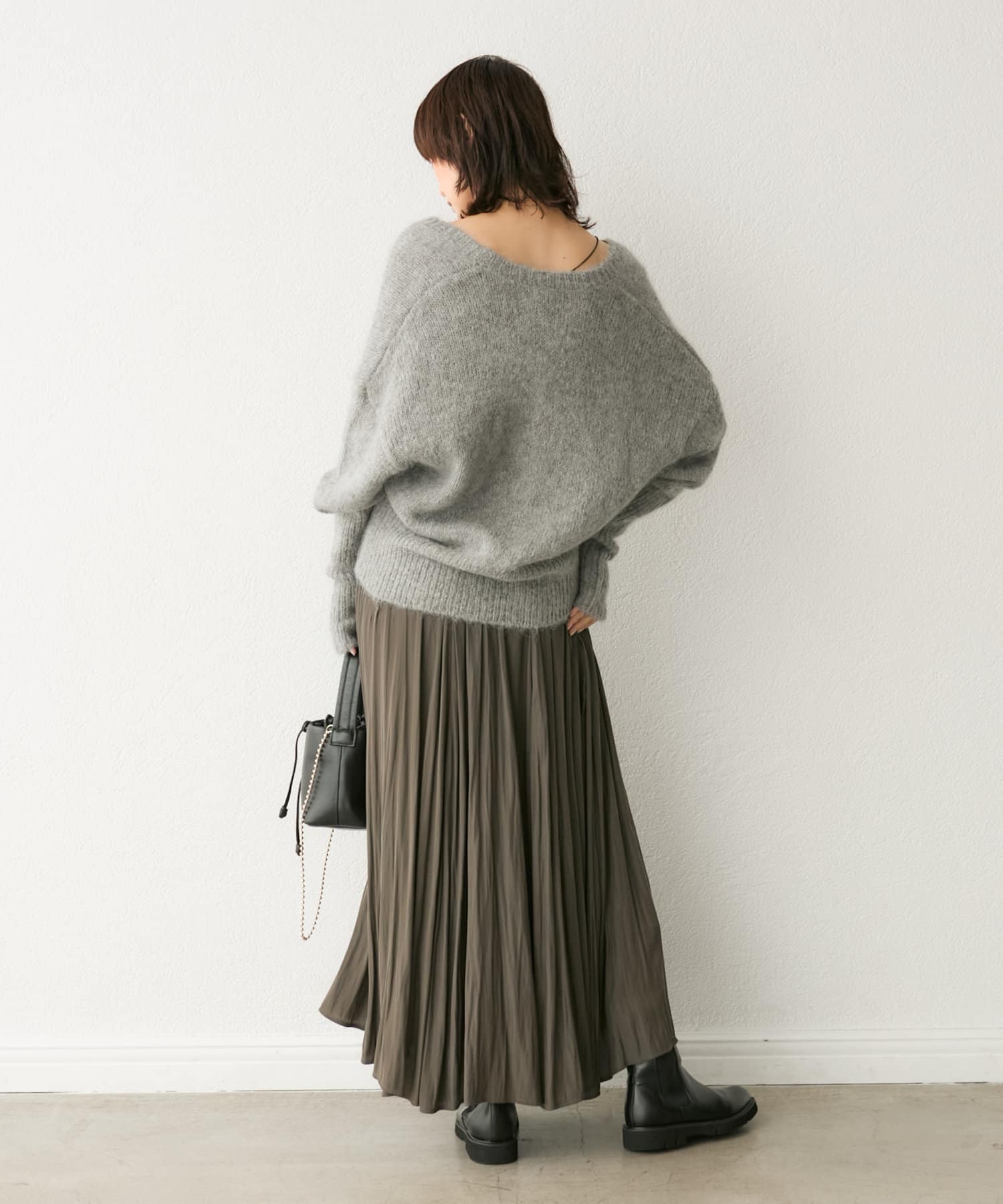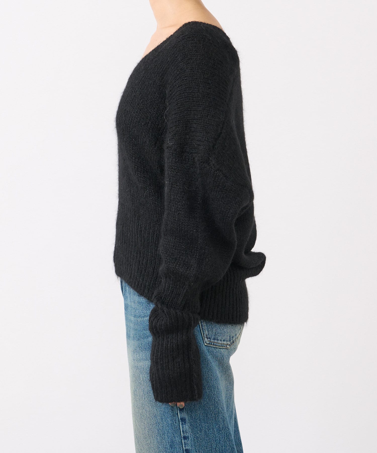 アルパカの中でも希少性の高いスーリーアルパカを高混率でブレンドした糸を使用したUネックニット。