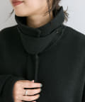 衿裏に収納できるチンストラップ付きでスタンドカラーにも。