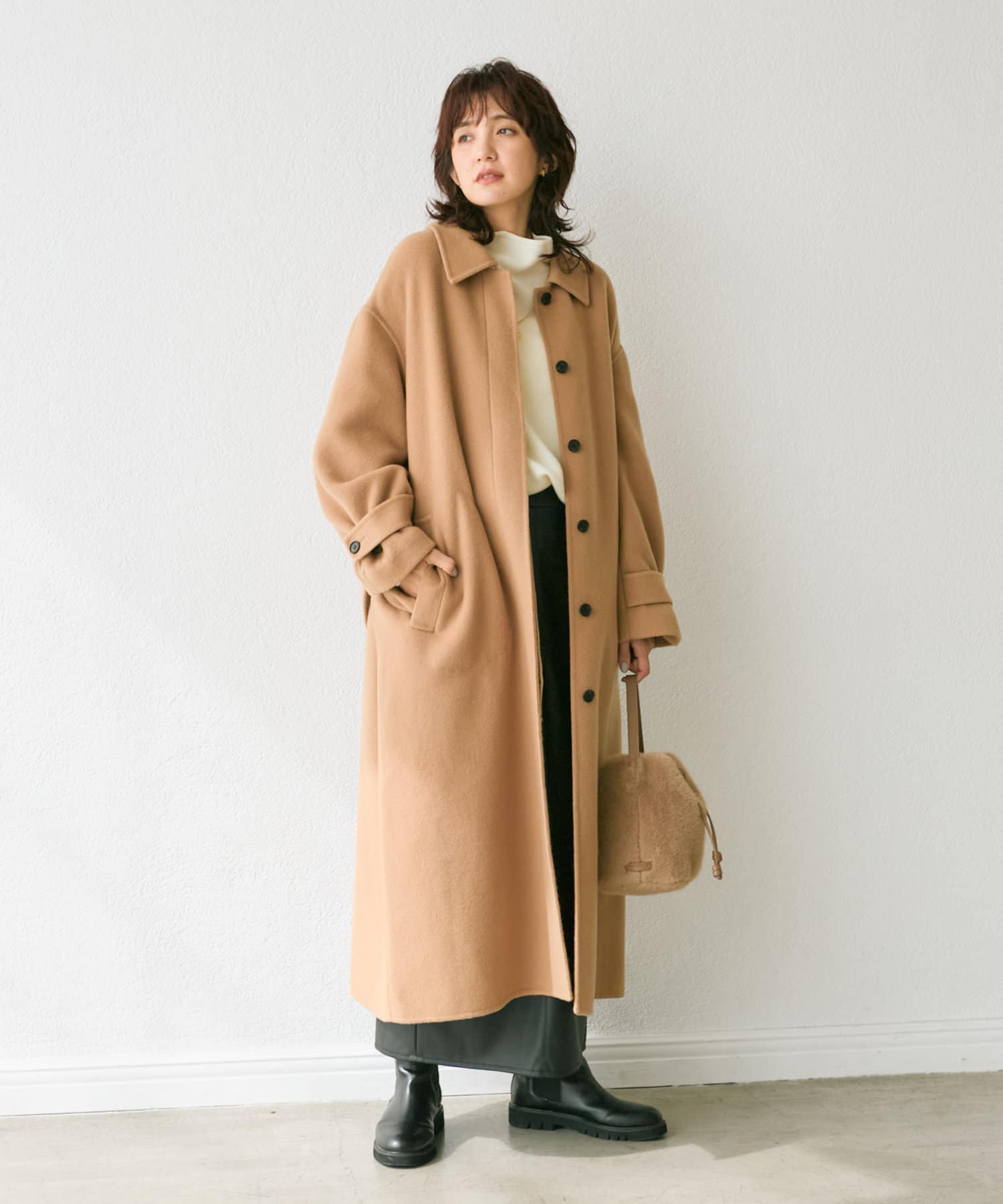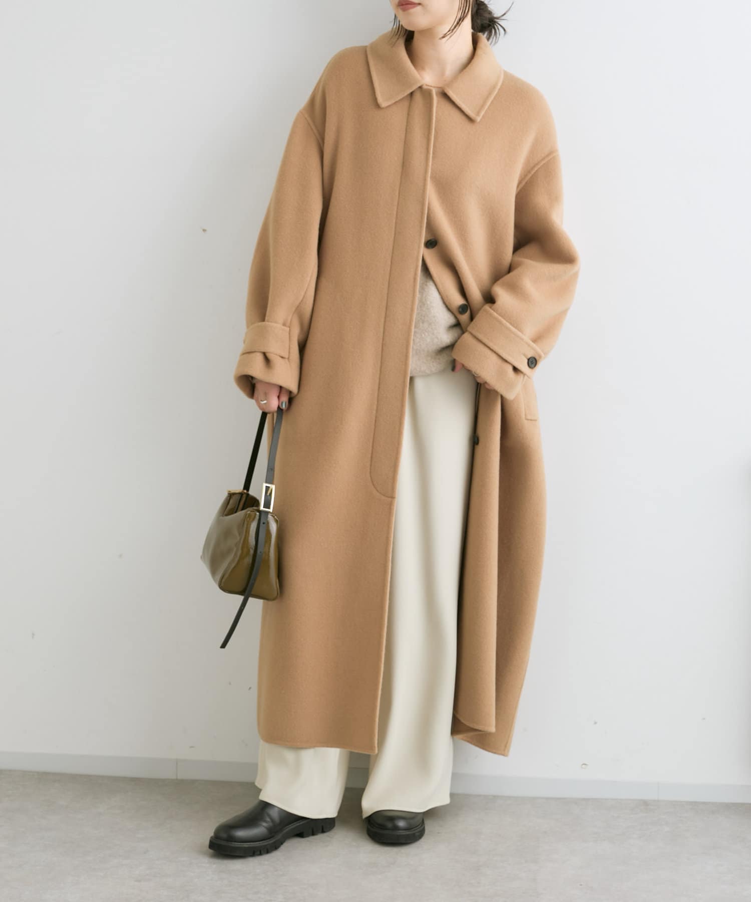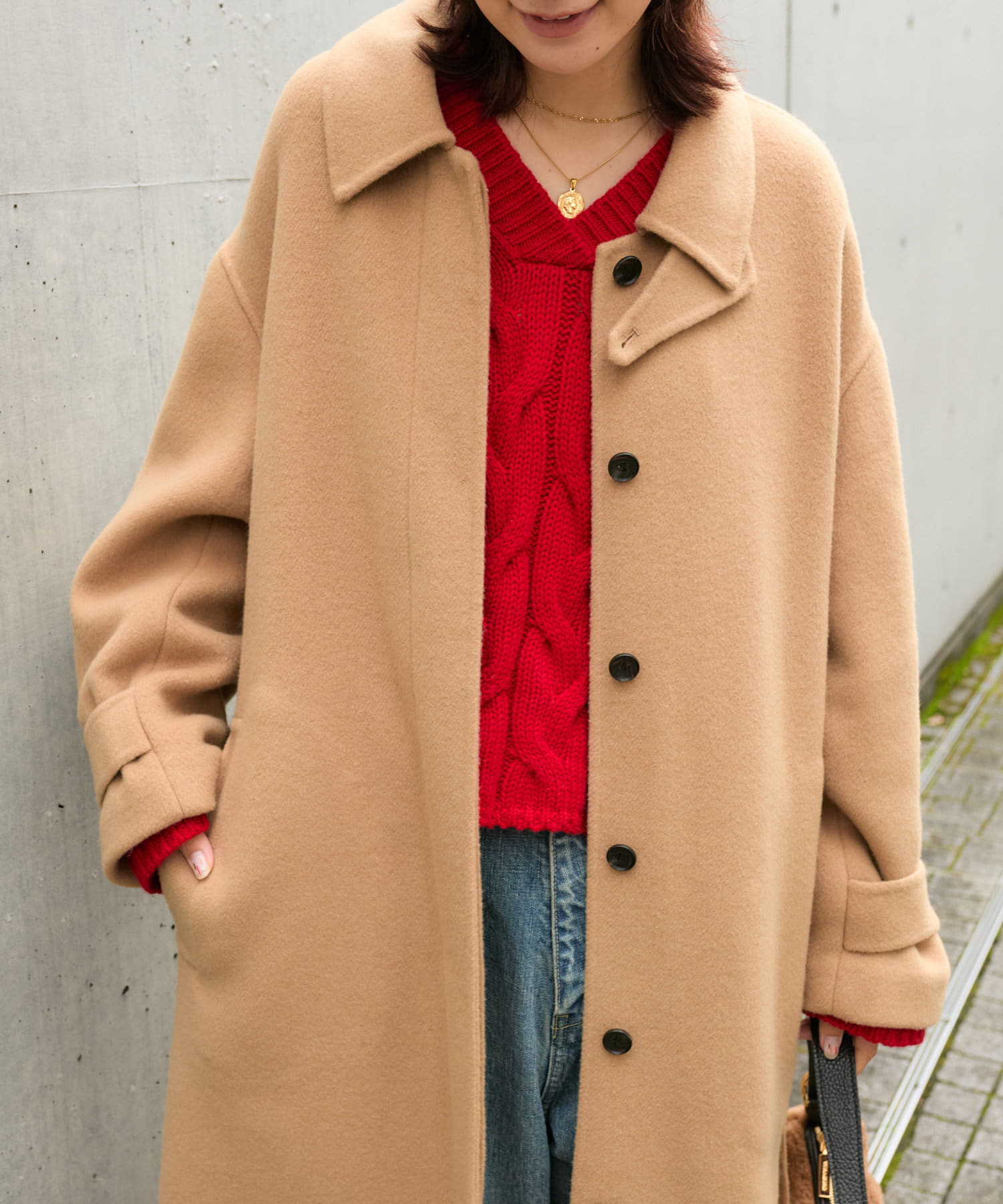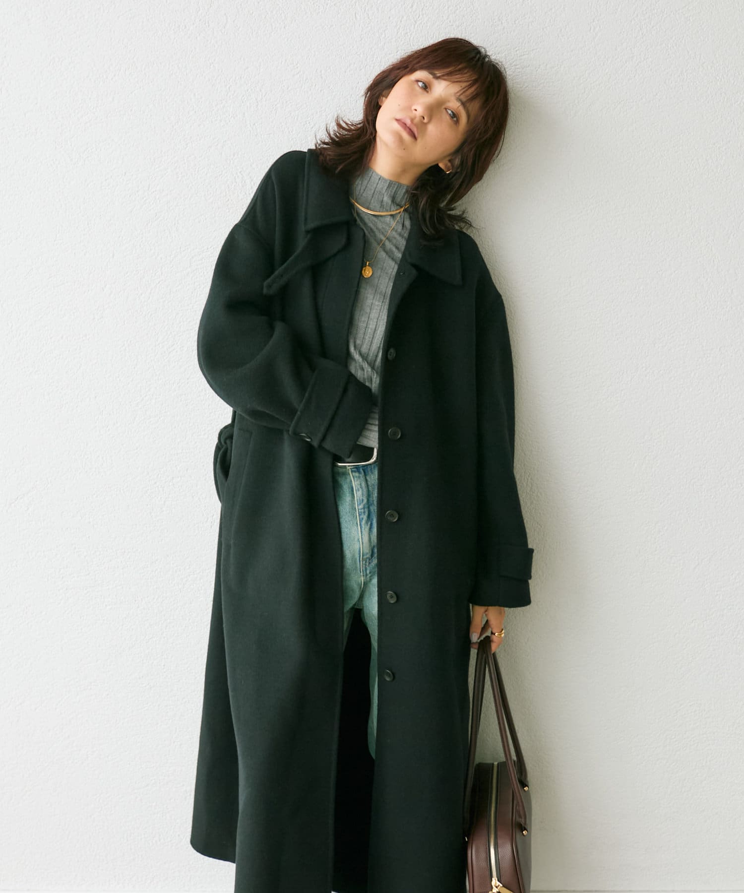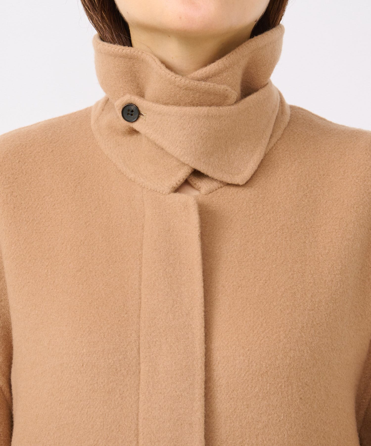 SUPER100という高品質なウール原料を使用したビーバー素材のステンカラーコート。