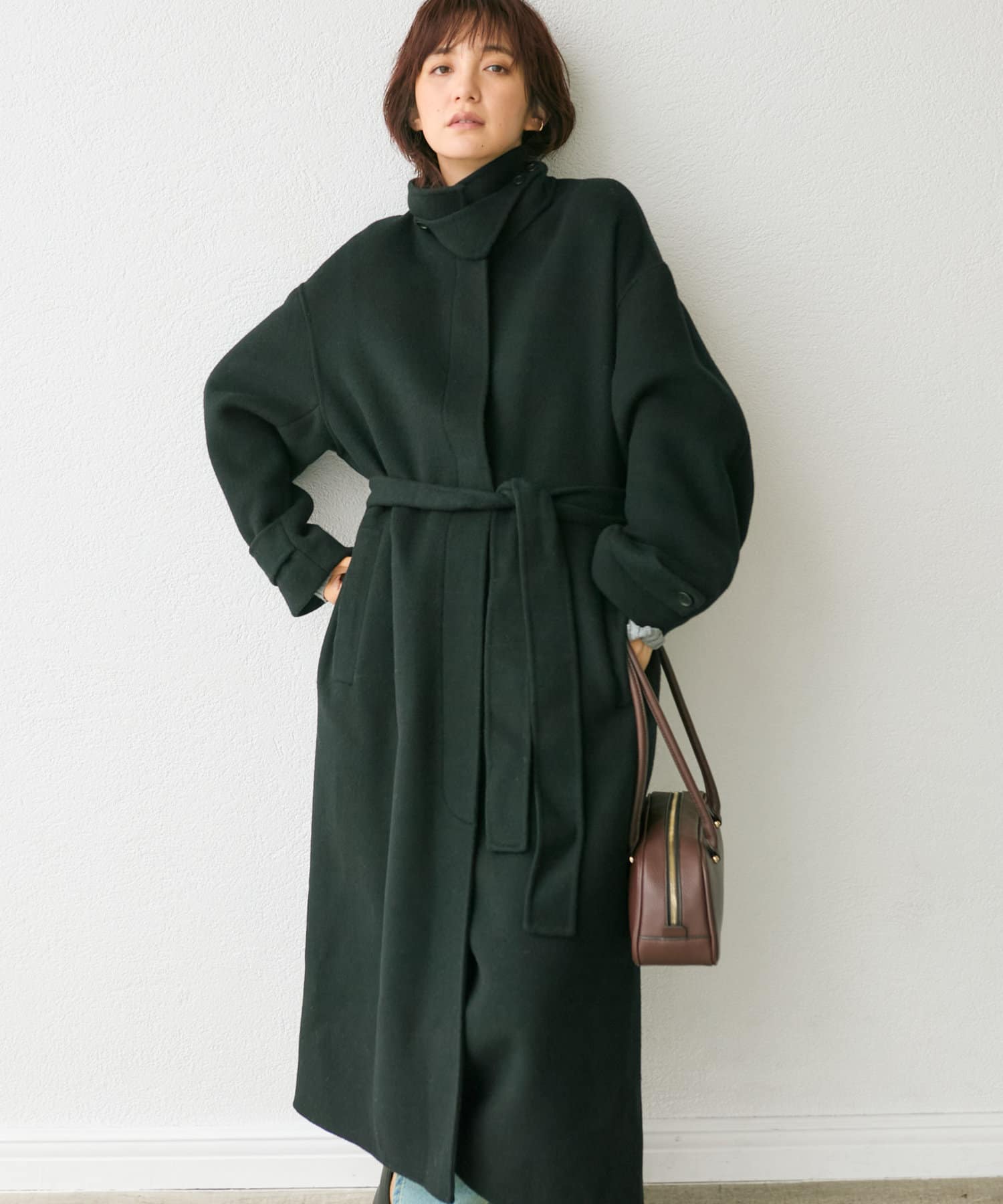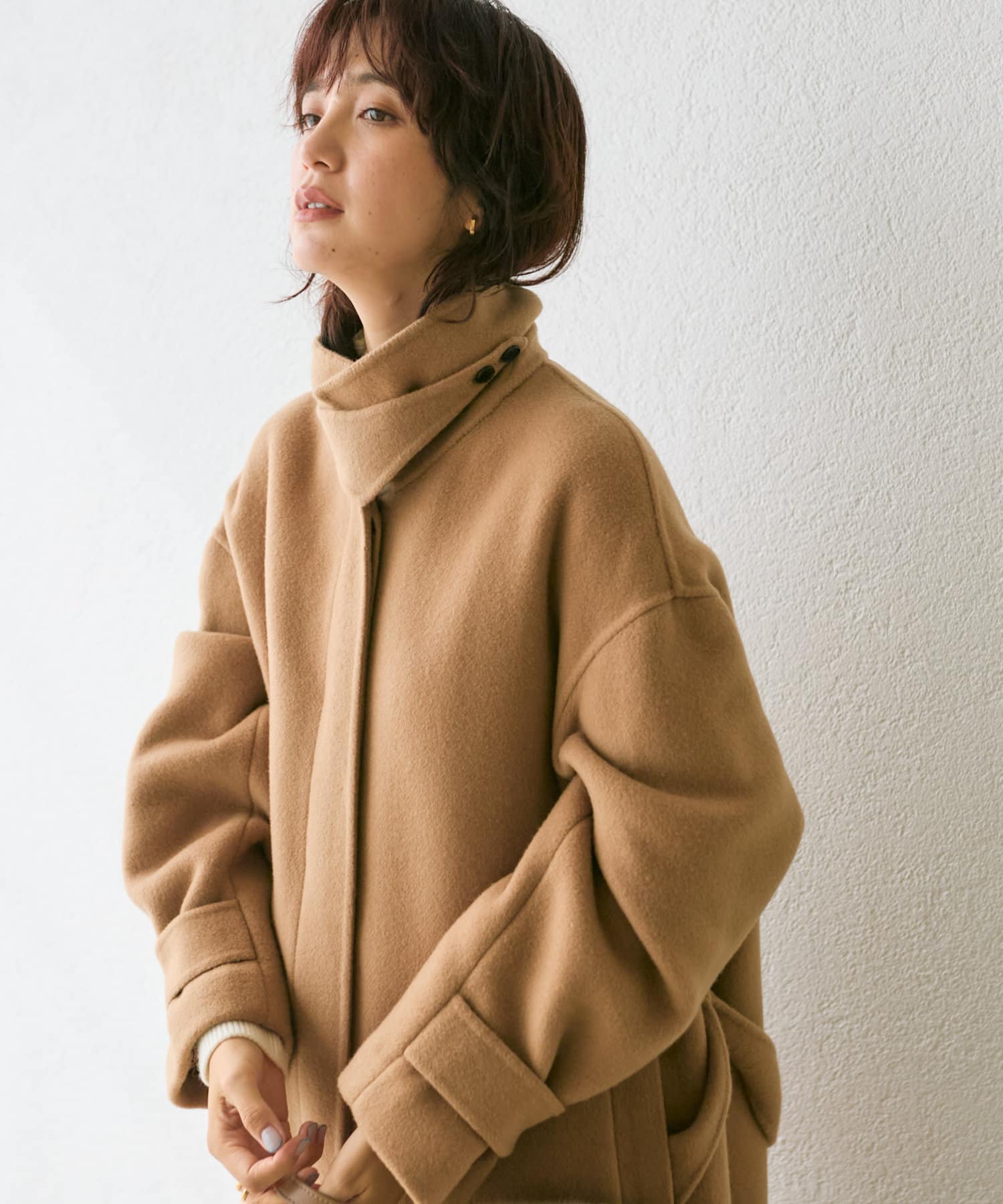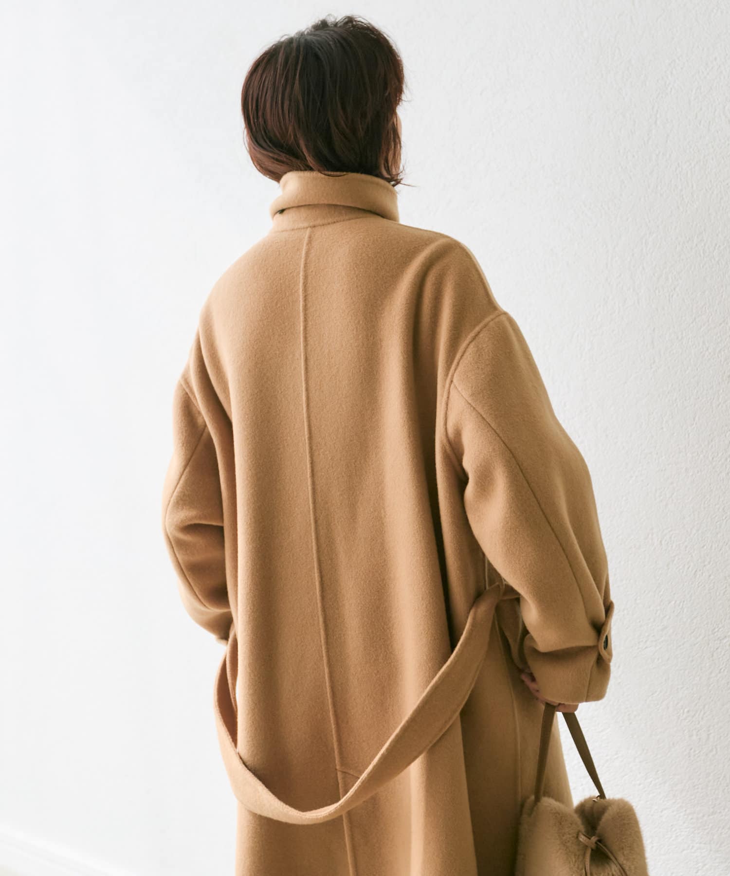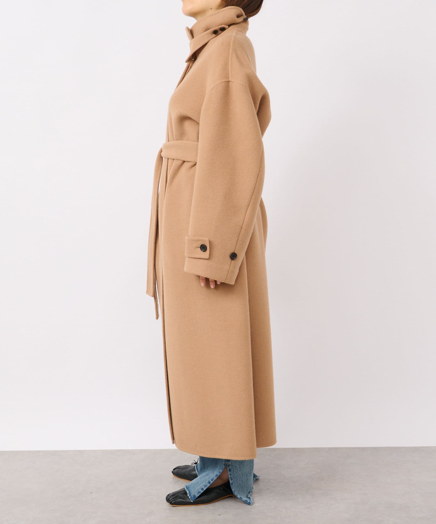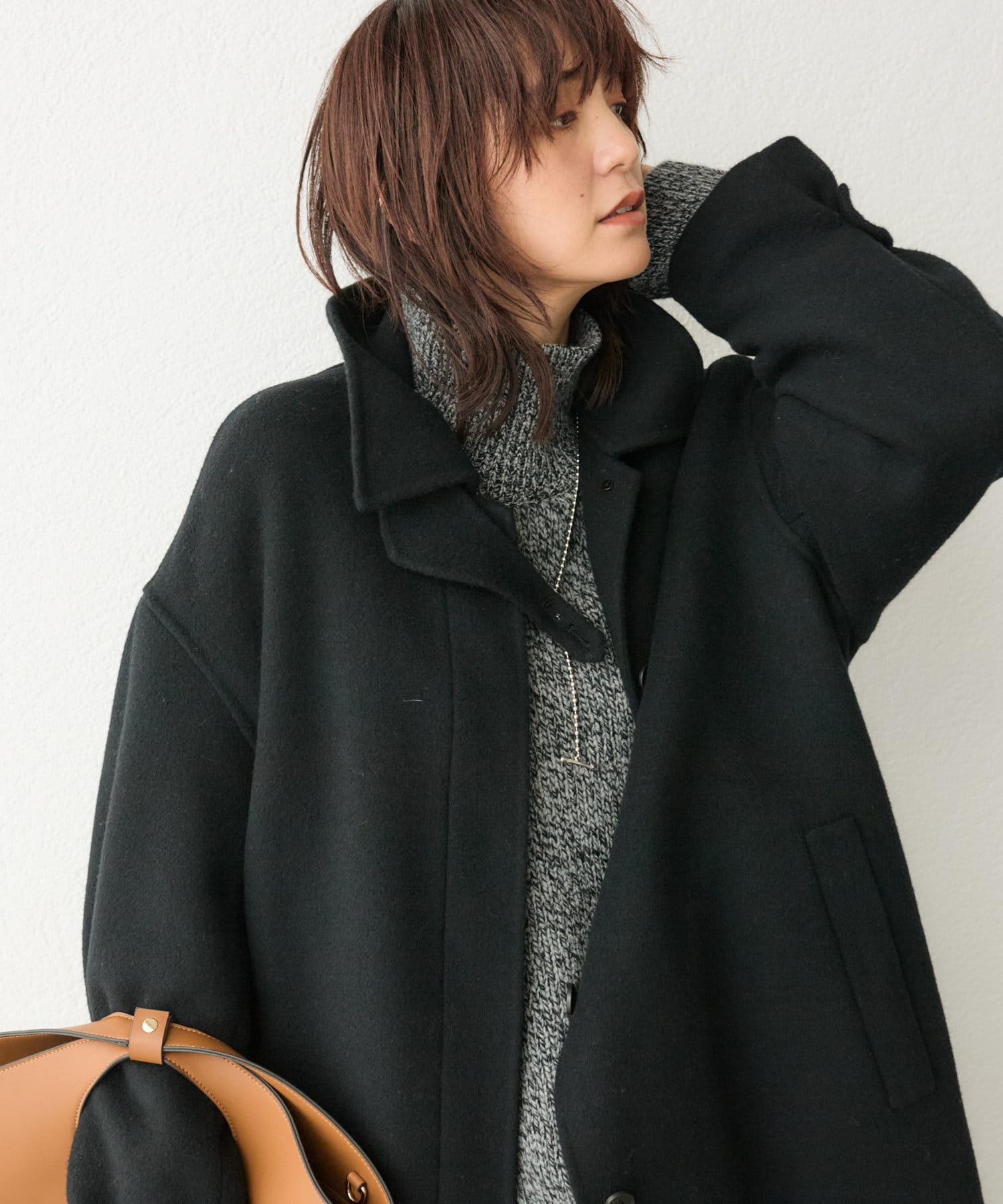 SUPER100という高品質なウール原料を使用したビーバー素材のステンカラーコート。